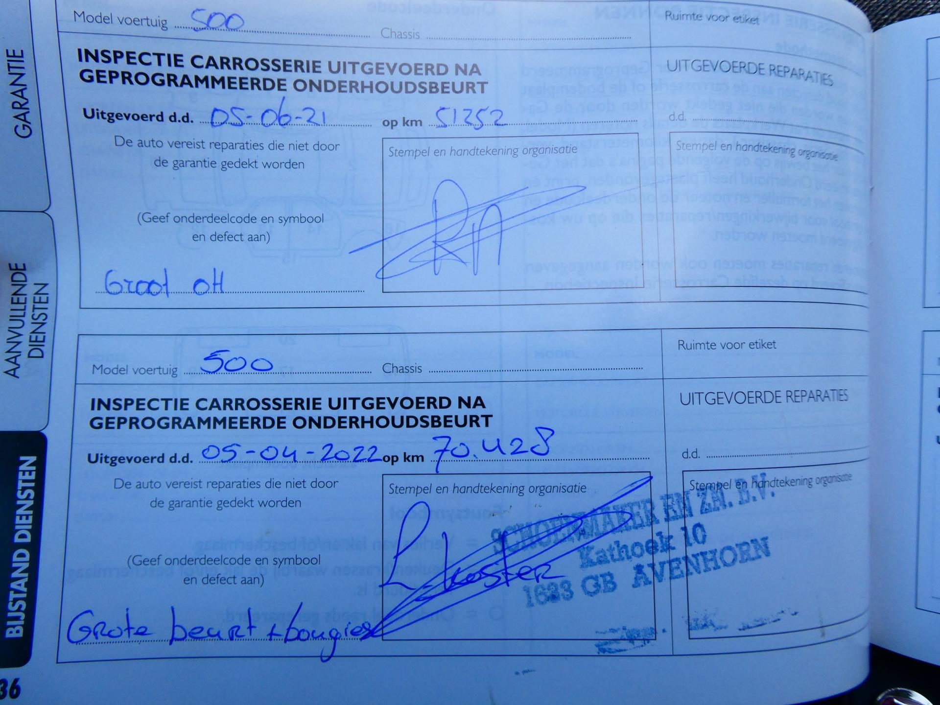 | Type | Fiat 500 1.2i 4-Cilinder 1e eig. RIVA Clima Cruise Leder Navi Schuifdak |