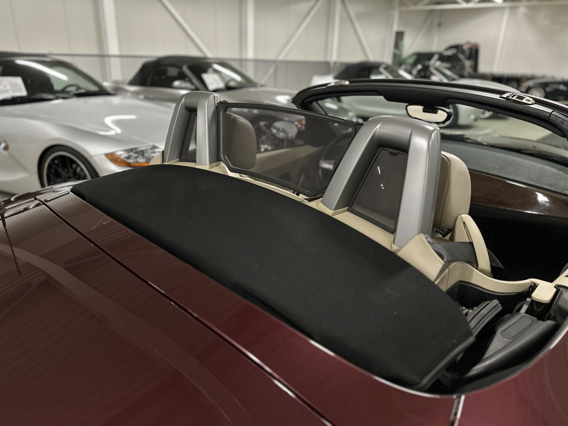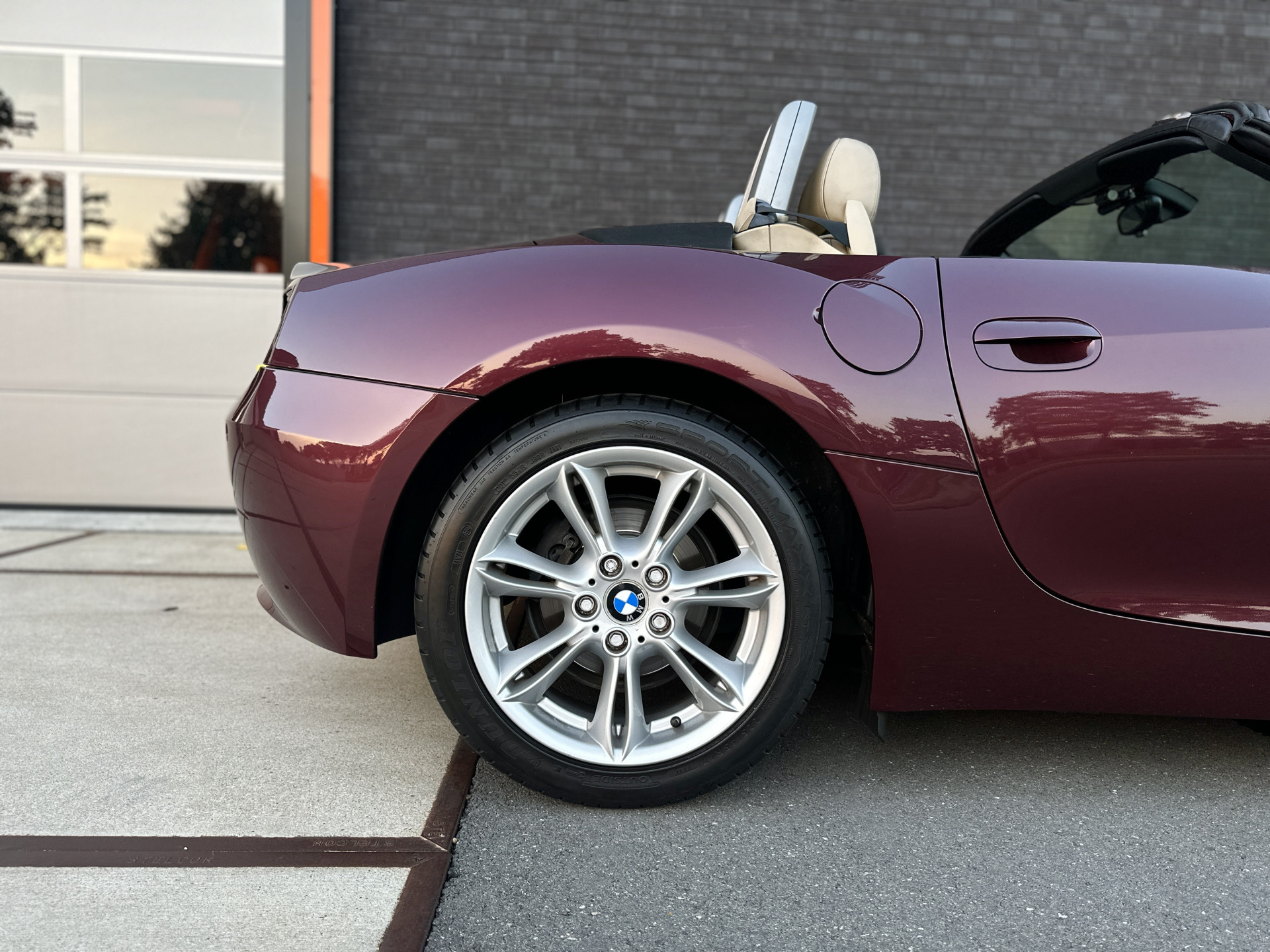 De tijdloze signatuur komt uitermate krachtig tot zijn recht met de Merlotrode metallic-lak, oranje knipperlichten en de zilveren 17" Styling 103-velgen. Na binnenkomst hebben wij de wielnaven, -bouten en remklauwen gespoten, zodat het geheel fris oogt. In het interieur is gekozen voor beige Oregon leder, fijnhouten dashboard-inleg en een lederen sportstuurwiel. De velours tapijten zijn eveneens beige, maar nu voorzien van originele zwarte matten. Alle relevante opties voor een ontspannen cabrio-rit zijn aanwezig, daarover leest u hieronder meer. Er is duidelijk te zien dat deze Z4 bij de -in totaal- vier eigenaren altijd binnen is gestald, met mooi weer is bereden én 's winters werd geschorst. Het verleden is ongevalsvrij en alle lakwaardes zijn nog origineel.