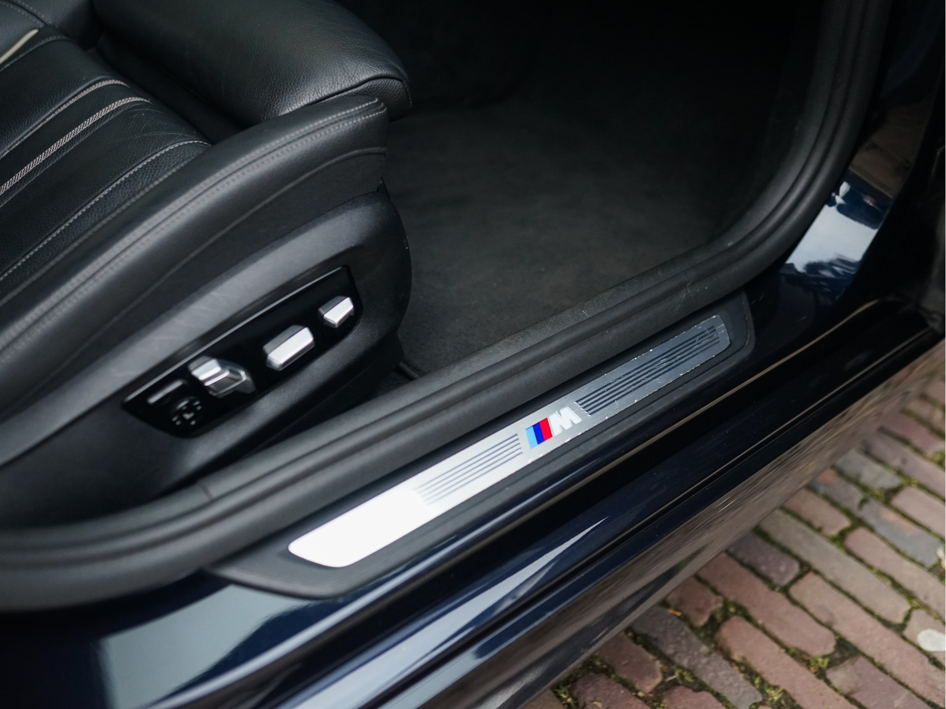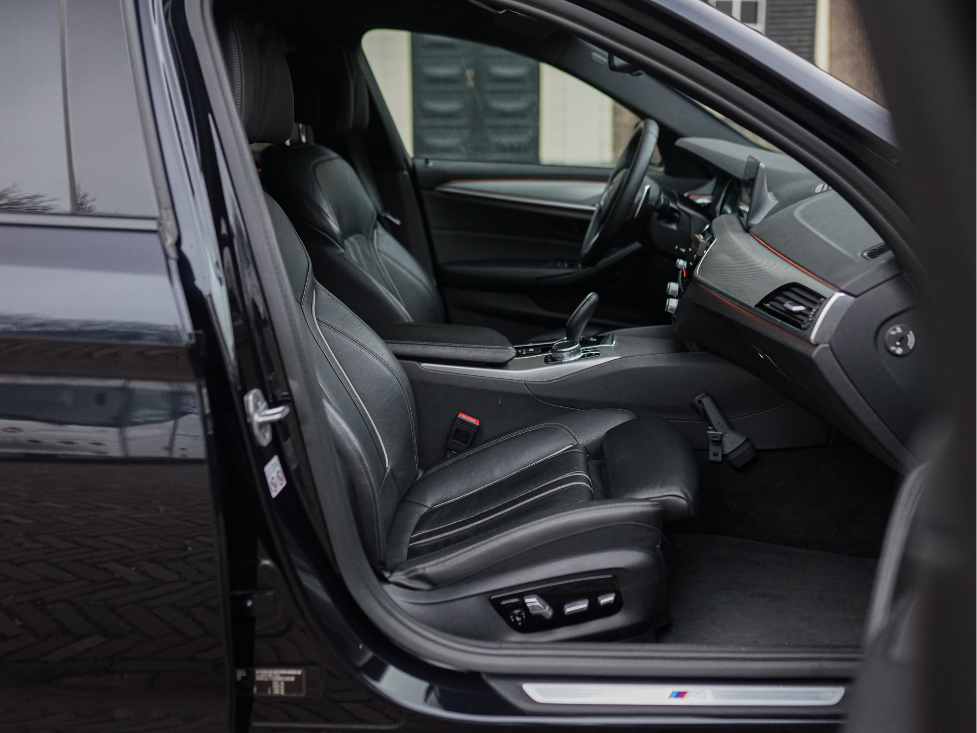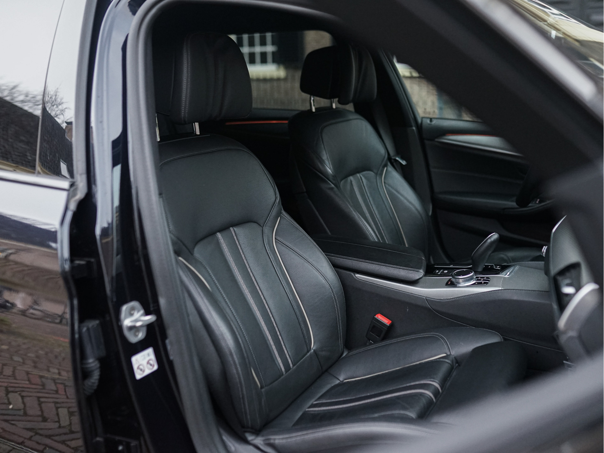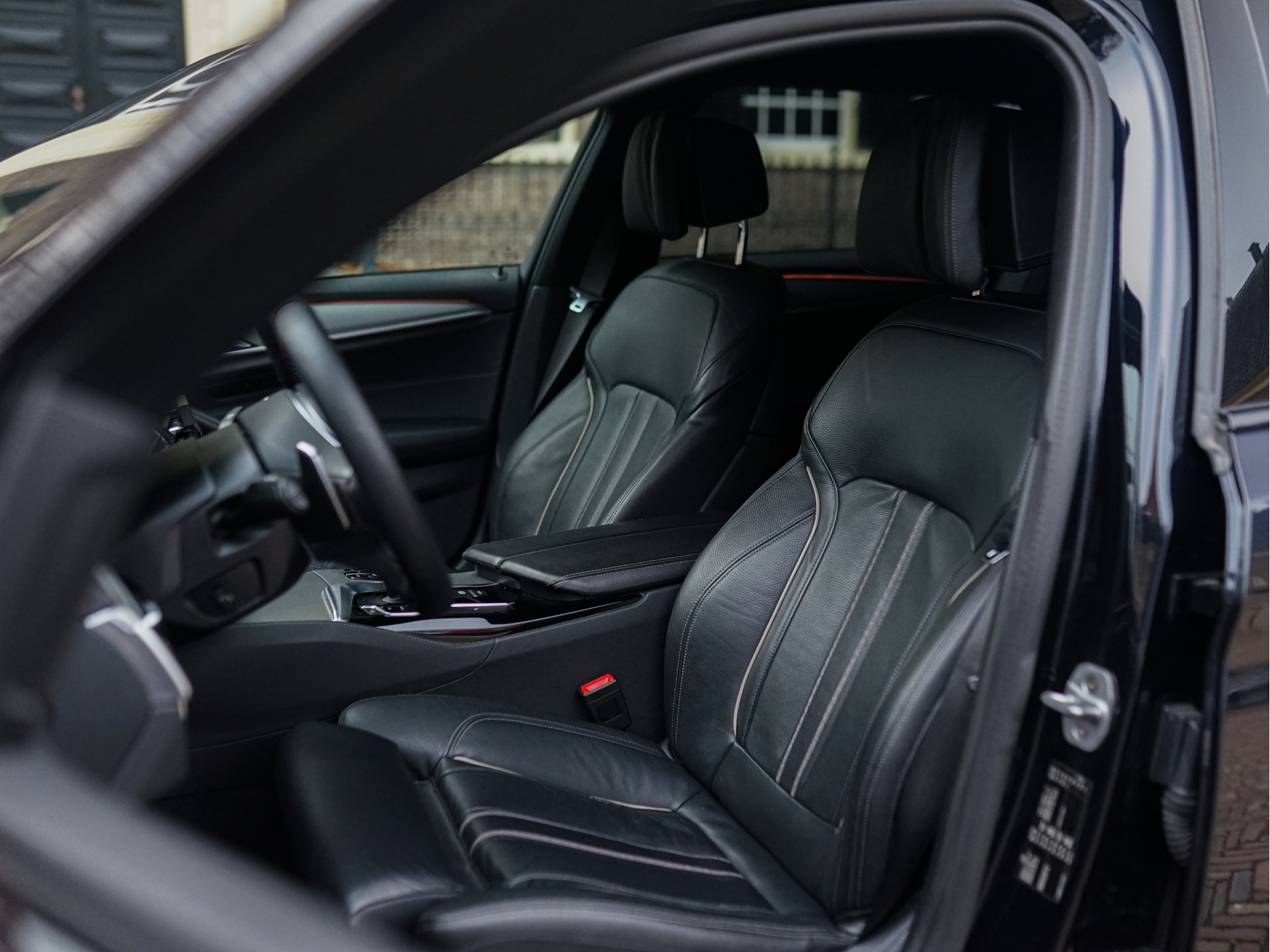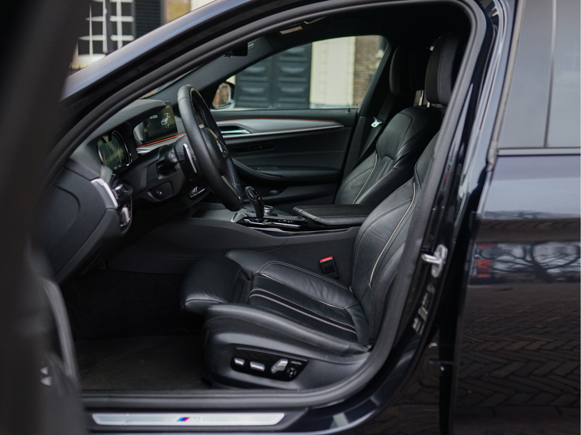 Het samenspel van kleuren en materialen is met veel zorg samengesteld. De kraakheldere Carbon zwart metallic lak laat details als de breedset 20" BMW Individual Styling 719-velgen, getinte achterruiten, zwarte nieren, -raamlijsten en -dakrails uit de hoogglans Shadow Line perfect tot uitdrukking komen. De deurklinken en uitlaat-eindstukken zijn verchroomd. De adaptieve LED-koplampen, -mistlampen en achterlichten creëren veel licht in de duisternis. Het M-Aerodynamica pakket oogt sportief en agressief, maar blijft toch ingetogen en chique. Eenmaal ingestapt geeft het hoogwaardige, zwarte Dakota-leder met contrasterende bies en zachte structuur een warm gevoel; dat wordt versterkt door elektrisch verstelbare M-Sportstoelen met geheugen, het 3-spaaks M-stuurwiel met aluminium flippers, Virtual Cockpit, zwarte hemelbekleding en ambiance binnenverlichting. De nieuwprijs van € 74.469,- laat al doorschemeren dat deze BMW niets te wensen over laat en u zal verrassen door zijn veelzijdigheid en optische conditie.