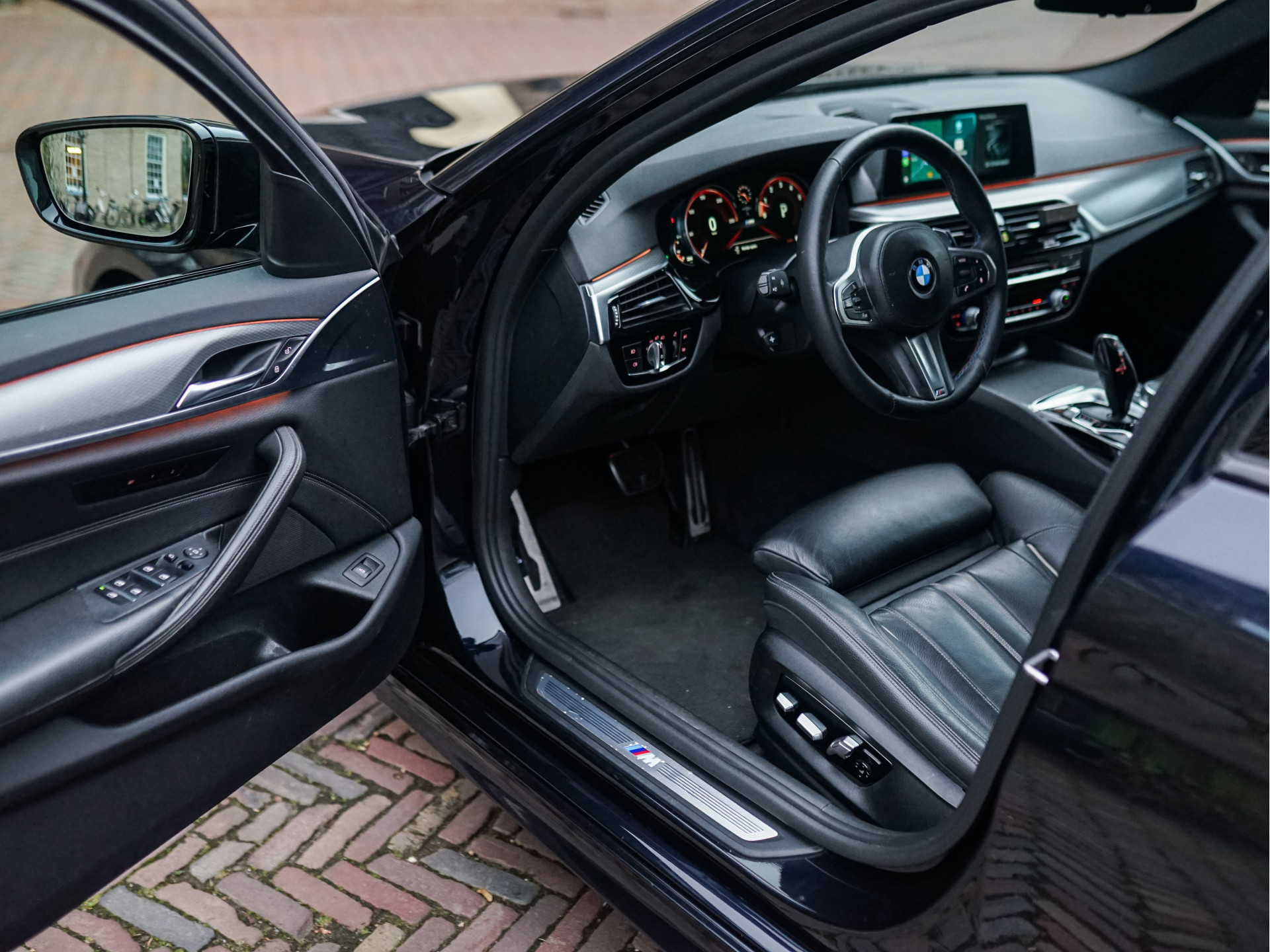 Er zijn duidelijk veel lange afstanden met deze 5-Serie afgelegd en hij is daarbij zorgvuldig behandeld. Behalve steenslag en enkele stoeprandschades zijn zowel de lak als het interieur vrij van noemenswaardige gebruikerssporen. Het stuurwiel is opnieuw bekleed met Nappa-leder en M-stiksels. De airco wordt binnen snel koud en er zijn geen vreemde rijgeluiden, geurtjes of lekkages. Alles functioneert naar behoren. Beide sleutels [incl. één werkende Display Key] en de volledige documentatie zijn aanwezig. De APK geldt tot 4 december 2026. De laatste onderhoudsbeurt in januari 2026 betrof een grote, inclusief bougies, filters en remvloeistof, dus de komende 27.000km of 2 jaar is de auto vrij van regulier onderhoud. Het gemiddelde brandstofverbruik bedraagt 7,5L/100km. Er zitten inmiddels ook kentekenplaten zonder '1'tje op; door recente ontwikkelingen bij de RDW is een duplicaatcode bij re-import niet meer nodig en kunnen de platen worden omgewisseld. Wees welkom om de BMW eens te komen ervaren!