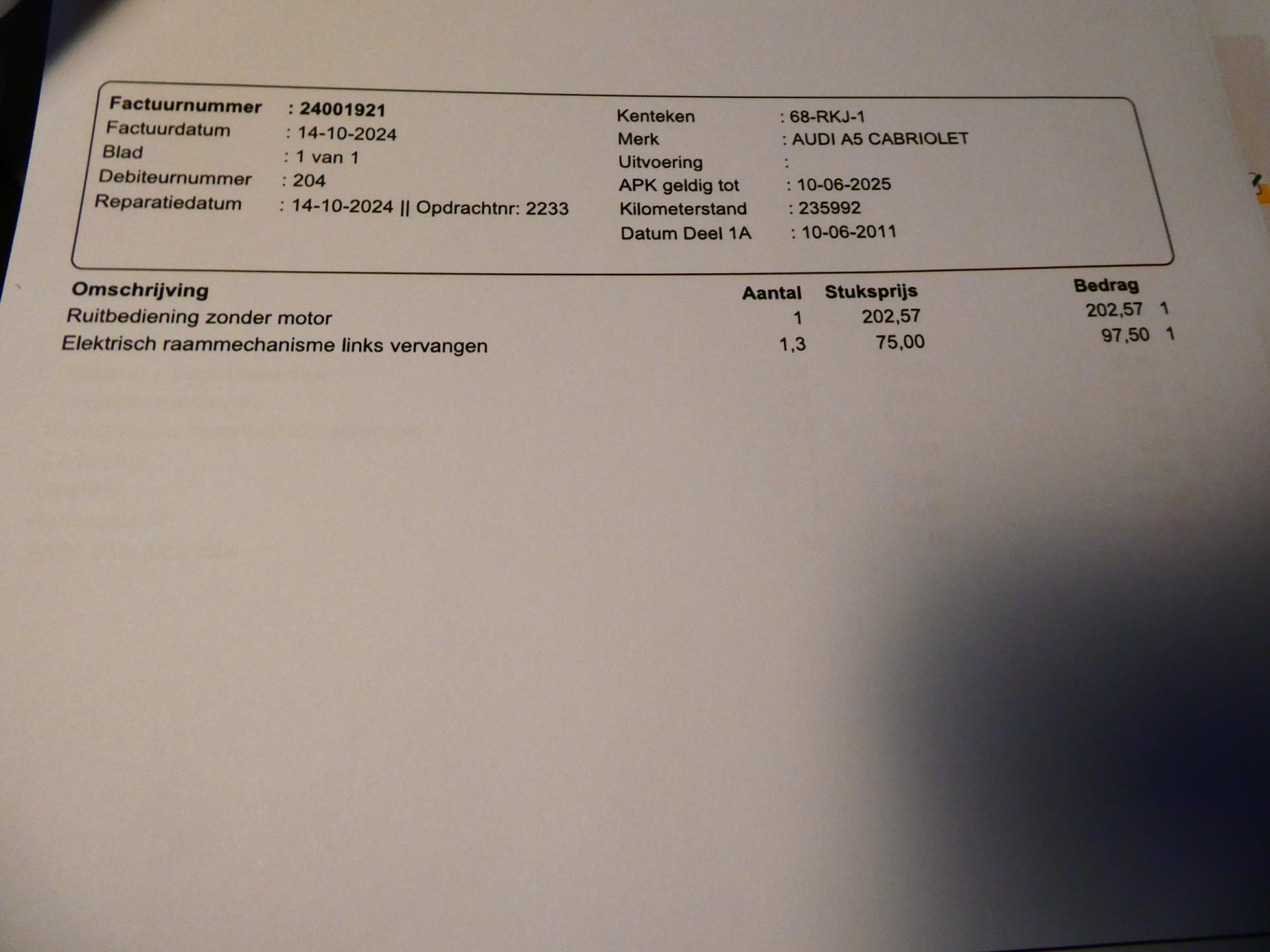 Van harte welkom bij Occasiondealer 't Gooi B.V. Onze specialisatie is de verkoop van gebruikte auto's tot € 10.000,- Onze Occasions zijn merendeel afkomstig van grote dealerbedrijven. Wij letten bij de inkoop extra op de volgende zaken : Onderhoudshistorie, schadeverleden en een laag aantal vorige eigenaren (veelal zijn onze auto's afkomstig van 1e, 2e of 3e eigenaar). Reserveren van een auto wordt alleen geaccepteerd als de klant onderweg is. Inruilen van uw huidige auto, fiets of boot behoort (bijna) altijd tot de mogelijkheden. U moet dan wel langskomen met het object; wij bieden geen inruilprijs zonder iets 'live'/ in het echt gezien te hebben...Daarnaast moet u onze auto ook eerst zien...Stap 1 is derhalve langskomen. Wij berekenen geen afleverkosten maar werken met zogenaamde meeneemprijzen. Alle moeite is genomen om de informatie op deze internetsite zo accuraat en actueel mogelijk weer te geven. Fouten zijn echter nooit uit te sluiten. Vertrouw daarom niet alleen op deze informatie, maar controleer bij aankoop de zaken die uw beslissing zouden kunnen beïnvloeden.. De door u gekochte auto kan direct bij ons op naam worden gezet, is er sprake van een inruilauto, dan kunnen wij deze voor u direct vrijwaren. U kunt bij ons ook per PIN betalen, veilig en snel. Vergeet niet om bij een hoger bedrag uw PIN-limiet te verhogen ! Dit kunt u meestal in uw bank-app wijzigen.. Voor meer informatie over ons bedrijf en ons aanbod kunt u kijken op www.occasiondealerhetgooi.nl. Onze openingstijden zijn op werkdagen van 10.00 tot 17.30 uur en op zaterdag van 10.00 tot 16.00 uur. Naar 'de laagste prijs' vragen en/of op afstand een bod doen is niet zoals wij werken en wordt derhalve niet op gereageerd. Vanwege het grote aanbod auto's adviseren we u om telefonisch met ons in contact te komen. Wij adviseren om voor vertrek te bellen of de auto van uw keuze op dat moment nog beschikbaar is. Welkom op de Koninginneweg 64 te Kortenhoef (5 km van Hilversum). TELEFOON 035-6566868 Meer informatieAlgemene informatieMerk: Audi Model: A5 Cabriolet Type: 2.0 TFSI Quattro Pro Line S 211pk 2e eig. Automaat LederTechnische informatieAandrijving: Vierwielaandrijving Acceleratie (0-100): 7,3 s Topsnelheid: 238 km/uMatenWielbasis: 275 cmGewichtenLedig gewicht: 1.710 kg Laadvermogen: 525 kg Max. trekgewicht: 1.700 kg (ongeremd 750 kg)StaatAantal sleutels: 2 (2 handzenders)Financiële informatieMotorrijtuigenbelasting: € 307 - € 335 per kwartaal |