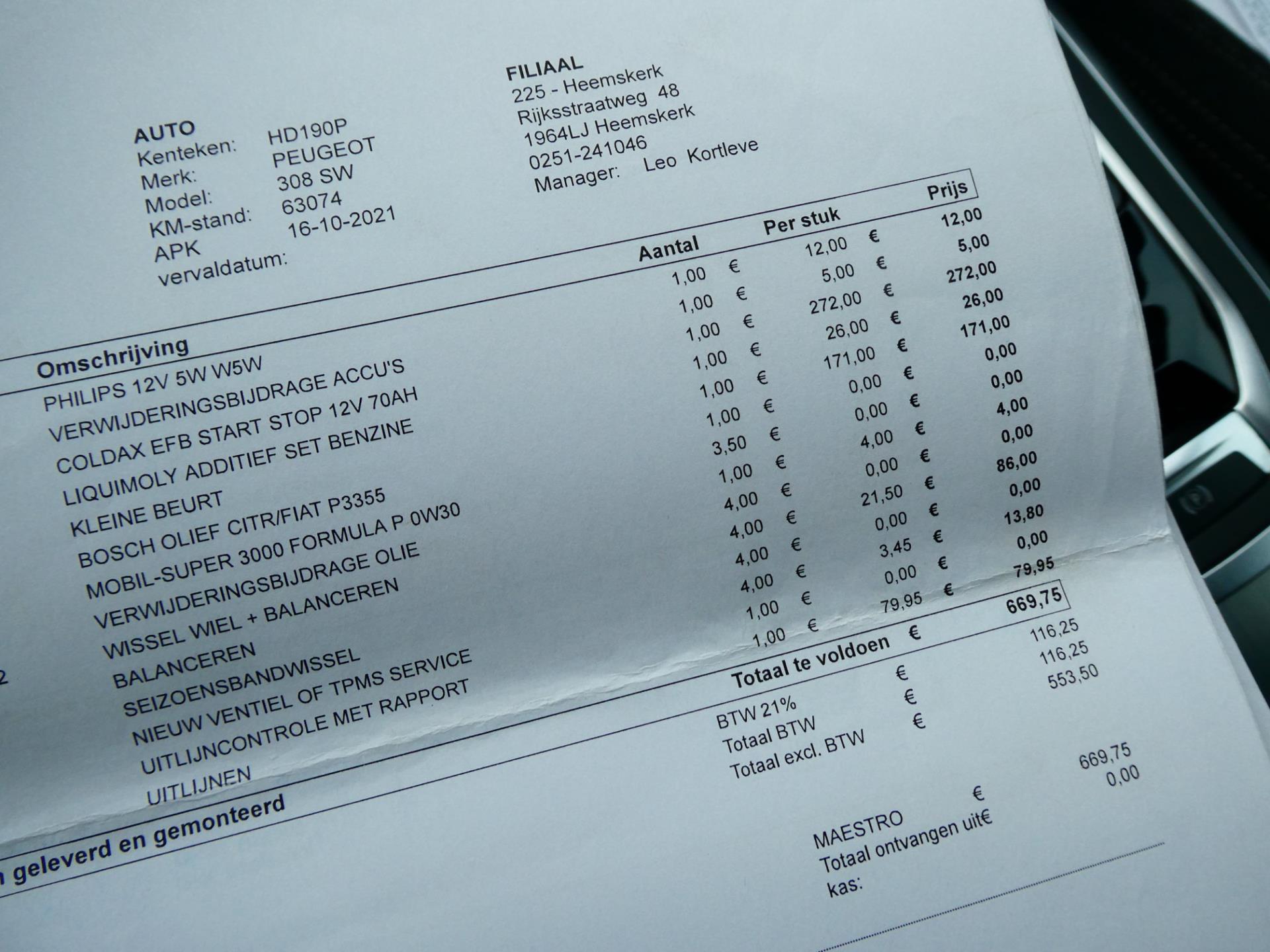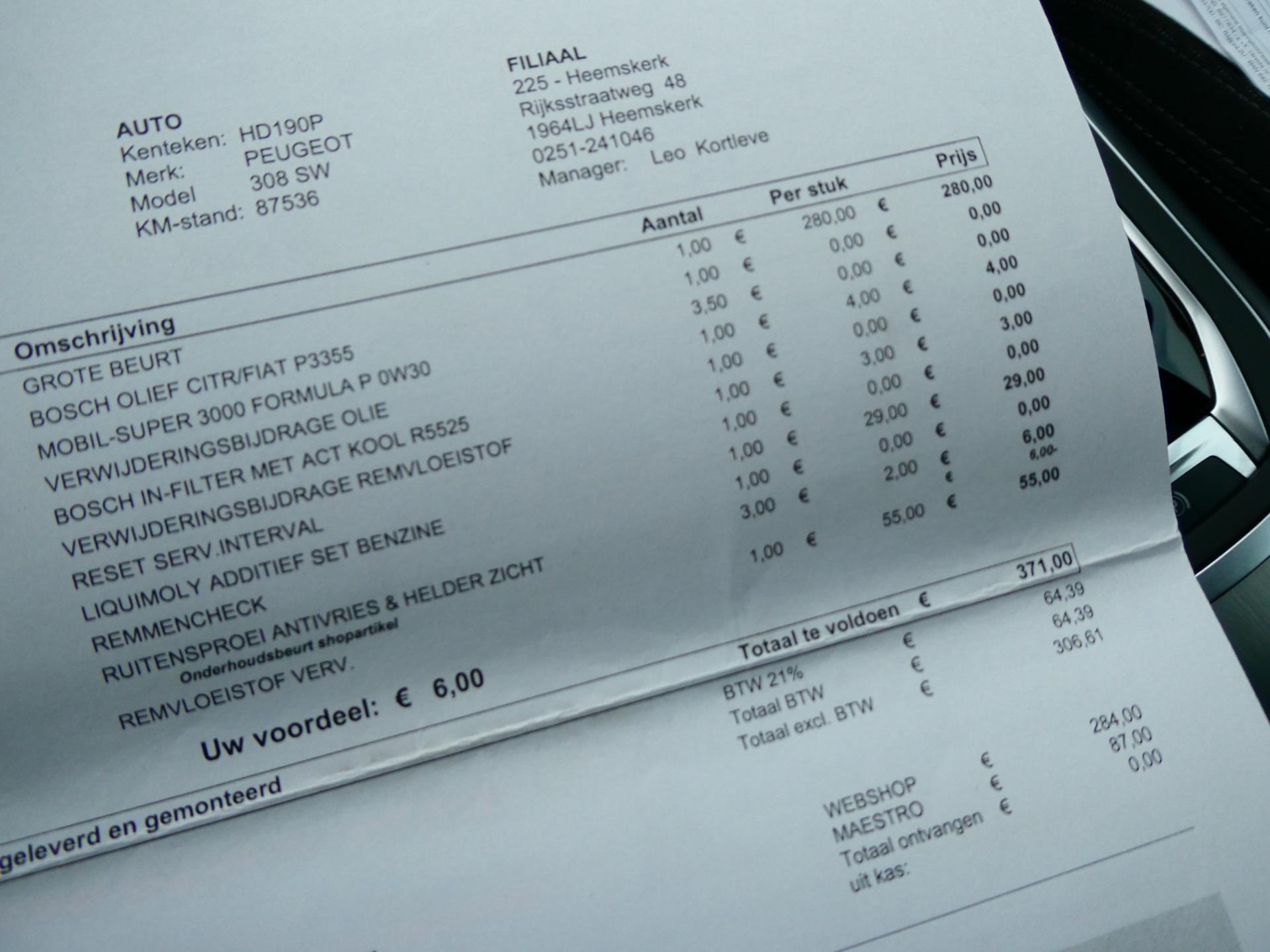 Van harte welkom bij Occasiondealer 't Gooi B.V. Onze specialisatie is de verkoop van gebruikte auto's tot € 10.000,- Onze Occasions zijn merendeel afkomstig van grote dealerbedrijven. Wij letten bij de inkoop extra op de volgende zaken : Onderhoudshistorie, schadeverleden en een laag aantal vorige eigenaren (veelal zijn onze auto's afkomstig van 1e, 2e of 3e eigenaar). Reserveren van een auto wordt alleen geaccepteerd als de klant onderweg is. Inruilen van uw huidige auto, fiets of boot behoort (bijna) altijd tot de mogelijkheden. U moet dan wel langskomen met het object; wij bieden geen inruilprijs zonder iets 'live'/ in het echt gezien te hebben...Daarnaast moet u onze auto ook eerst zien...Stap 1 is derhalve langskomen. Wij berekenen geen afleverkosten maar werken met zogenaamde meeneemprijzen. Alle moeite is genomen om de informatie op deze internetsite zo accuraat en actueel mogelijk weer te geven. Fouten zijn echter nooit uit te sluiten. Vertrouw daarom niet alleen op deze informatie, maar controleer bij aankoop de zaken die uw beslissing zouden kunnen beïnvloeden.. De door u gekochte auto kan direct bij ons op naam worden gezet, is er sprake van een inruilauto, dan kunnen wij deze voor u direct vrijwaren. U kunt bij ons ook per PIN betalen, veilig en snel. Vergeet niet om bij een hoger bedrag uw PIN-limiet te verhogen ! Dit kunt u meestal in uw bank-app wijzigen.. Voor meer informatie over ons bedrijf en ons aanbod kunt u kijken op www.occasiondealerhetgooi.nl. Onze openingstijden zijn op werkdagen van 10.00 tot 17.30 uur en op zaterdag van 10.00 tot 16.00 uur. Naar 'de laagste prijs' vragen en/of op afstand een bod doen is niet zoals wij werken en wordt derhalve niet op gereageerd. Vanwege het grote aanbod auto's adviseren we u om telefonisch met ons in contact te komen. Wij adviseren om voor vertrek te bellen of de auto van uw keuze op dat moment nog beschikbaar is. Welkom op de Koninginneweg 64 te Kortenhoef (5 km van Hilversum). TELEFOON 035-6566868 Meer informatieAlgemene informatieMerk: Peugeot Model: 308 SW Type: 1.2i 131pk Automaat Clima Navi LED PDC 142.000km.Technische informatieAandrijving: Voorwielaandrijving Acceleratie (0-100): 9,5 s Topsnelheid: 204 km/uMatenWielbasis: 273 cmGewichtenLedig gewicht: 1.175 kg Laadvermogen: 680 kg Max. trekgewicht: 1.100 kg (ongeremd 635 kg)StaatAantal sleutels: 2 (2 handzenders)Financiële informatieMotorrijtuigenbelasting: € 166 - € 182 per kwartaal |