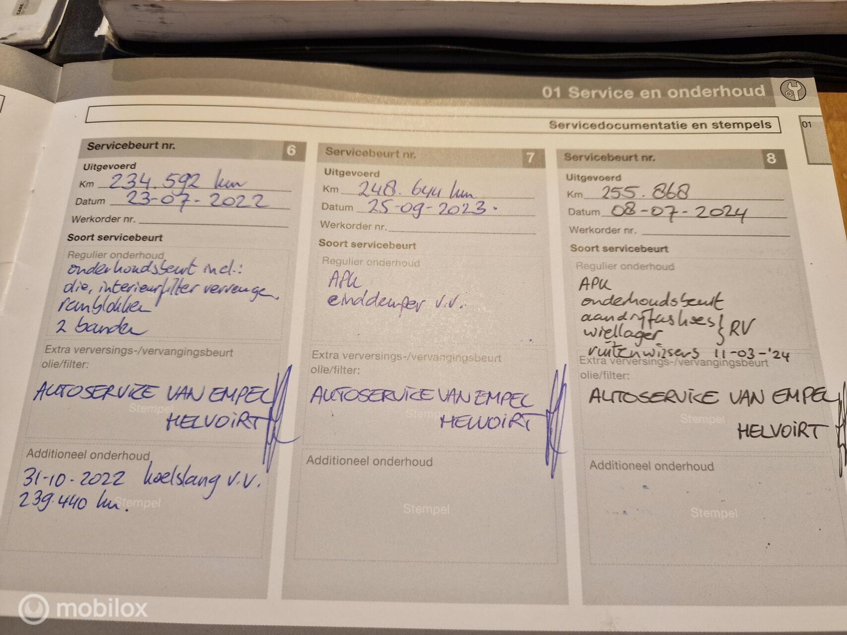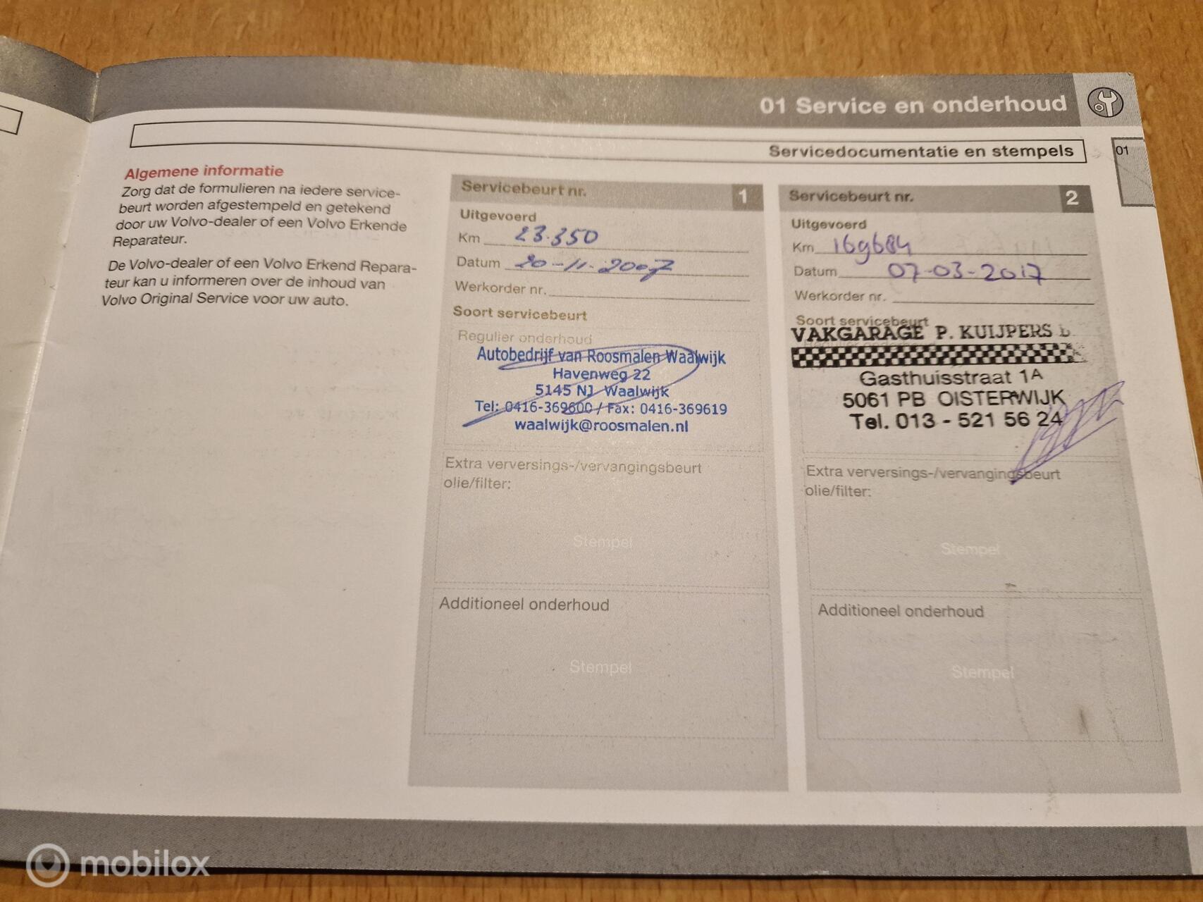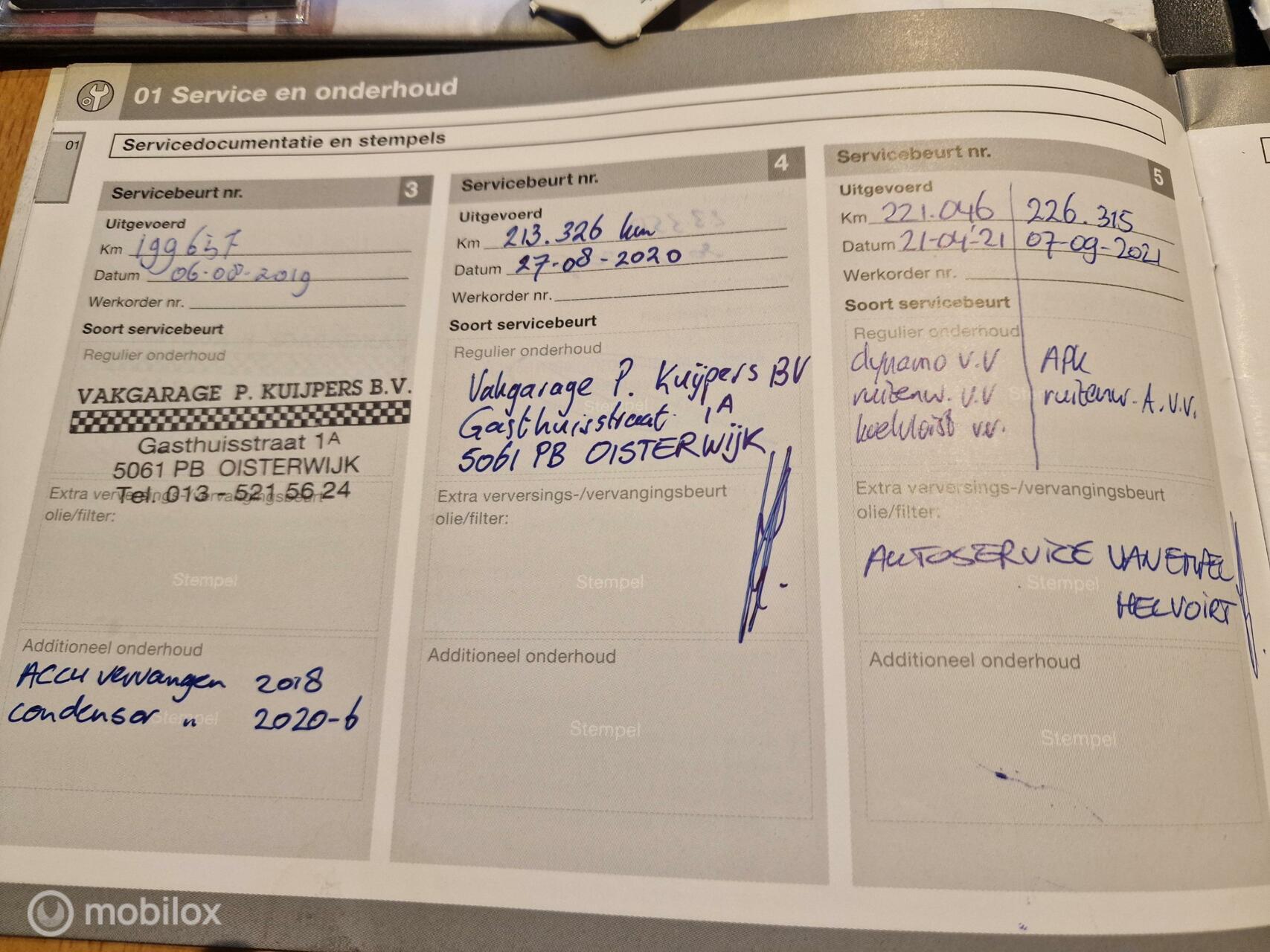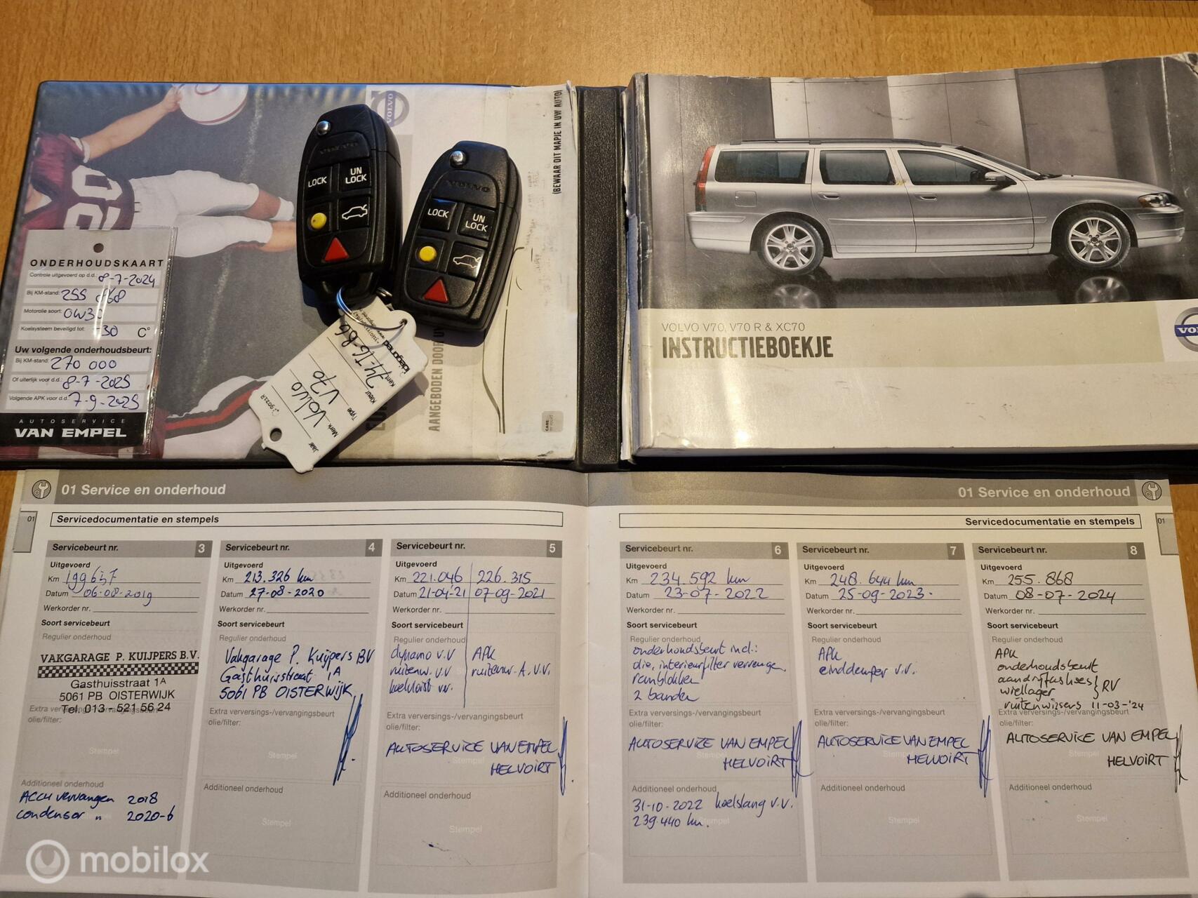 De distributieriem is vervangen in 2017 bij 170.000km. De volgende interval voor het vervangen van de distributieriem is: 10 jaar 160.000km; 2027 of 330.000km. Meer informatieAlgemene informatieMerk: VolvoModel: V70 Type: 2.4 Edition II H5 Clima Leer Stoelverwarming NL Modelcode: II Technische informatieKoppel: 220 NmAandrijving: Voorwielaandrijving Topsnelheid: 205 km/u MatenLengte: 472 cmWielbasis: 276 cm GewichtenLedig gewicht: 1.470 kgLaadvermogen: 630 kg Max. trekgewicht: 1.800 kg (ongeremd 750 kg) StaatSchade: schadevrijAantal sleutels: 2 (2 handzenders) Financiële informatieMotorrijtuigenbelasting: € 253 - € 276 per kwartaal |