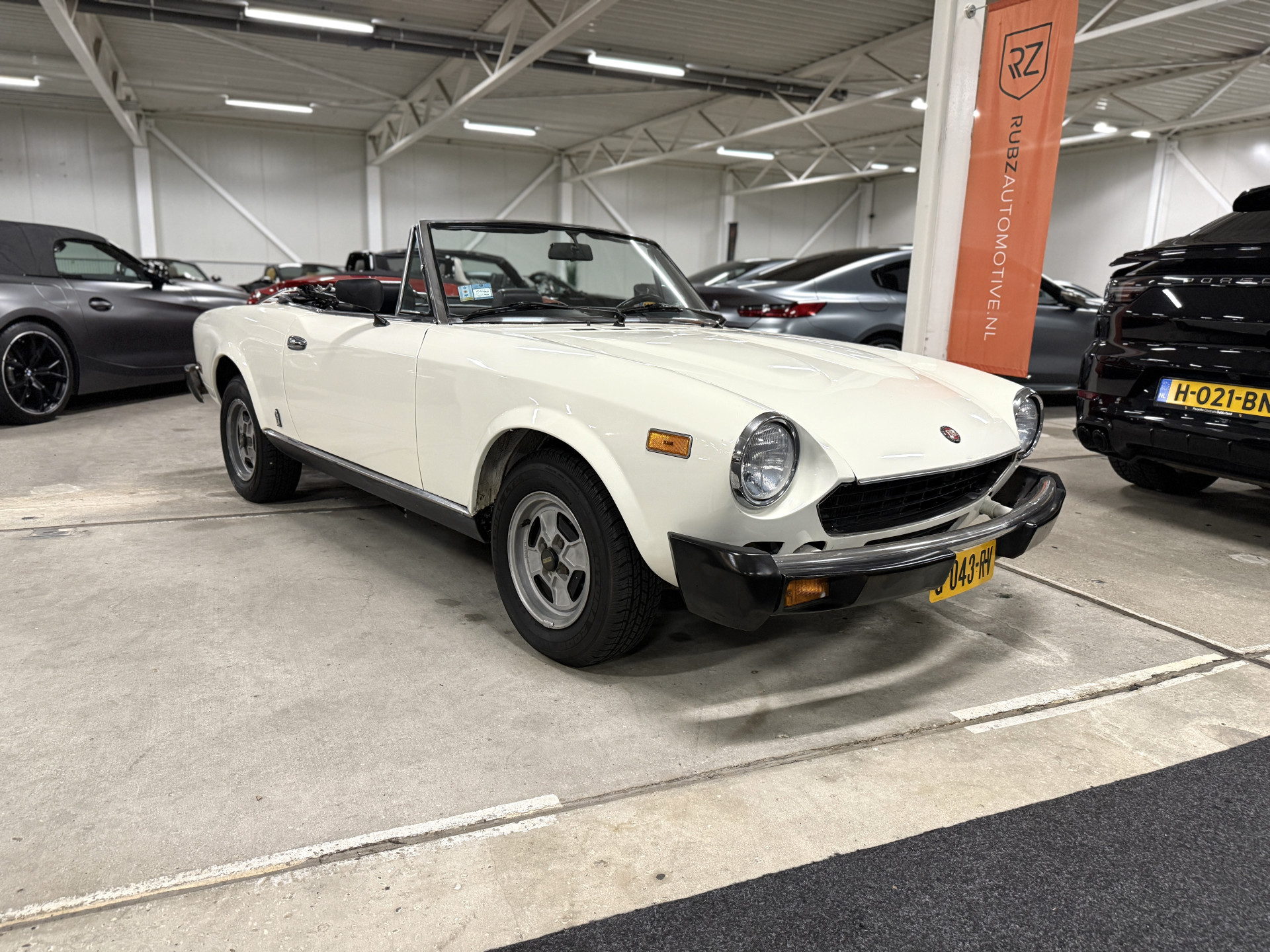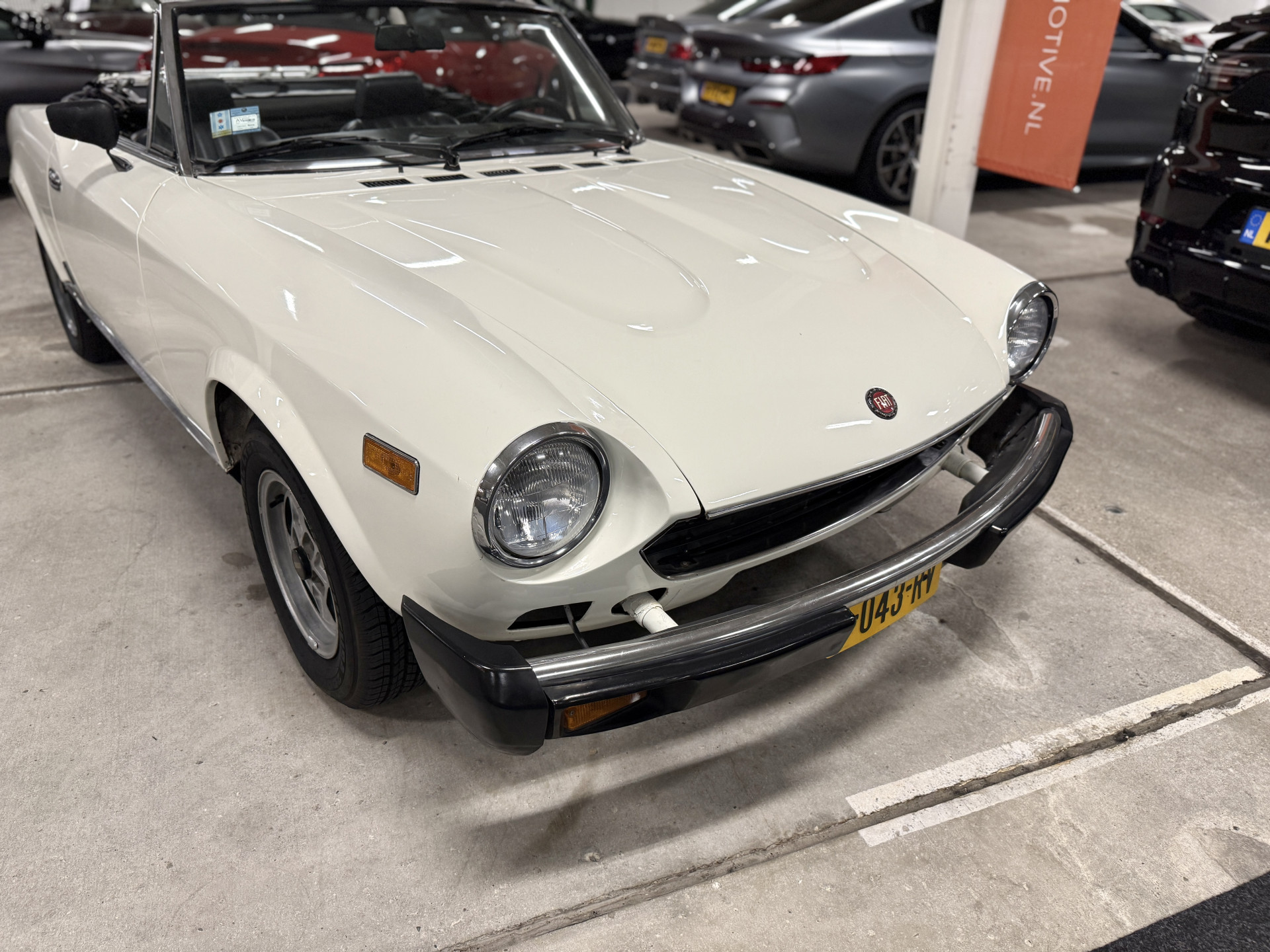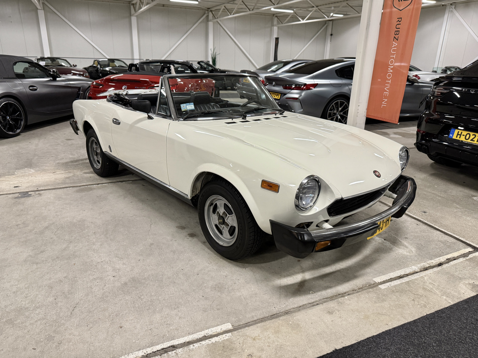 The accessible classic among Italian Spiders, the Fiat 124. Widely praised by enthusiasts for its timeless elegance, agile handling, and perfect proportions. The model was one of the most famous designs by design house Pininfarina and excels in authenticity. From the 1960s onward, such lightweight, open-top sports cars were incredibly popular. Many European cars were prone to rust and didn't stand the test of time. In 1979, Fiat introduced the fourth generation with a 2-liter injection engine, producing 87 horsepower. This version was popular in America, and thanks to the warm climate, they have been better preserved there. This example, which has been in the Netherlands since 2019, has undergone extensive maintenance in recent years, including extensive American documentation.