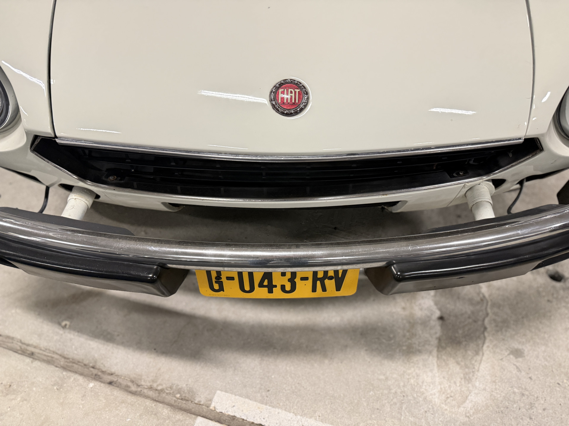 At the end of February 1979, this car was delivered to Mr. Jones in Murfreesboro, USA. Until May 1986 (87,059 miles), the Fiat was serviced twice a year by the local dealer and signed off in the original service book. Presumably, the odometer reading is now the equivalent of 250,727 km. Behind the windshield is a sticker with a Chicago license plate, which expired in June 2013. The last Dutch owner purchased the car in November 2019 and has driven only 465 miles since then. We traded it in for a Porsche 911 Cabrio. To make starting easier, the spark plugs and fuel filter were replaced after delivery, and an electric fuel pump was installed.