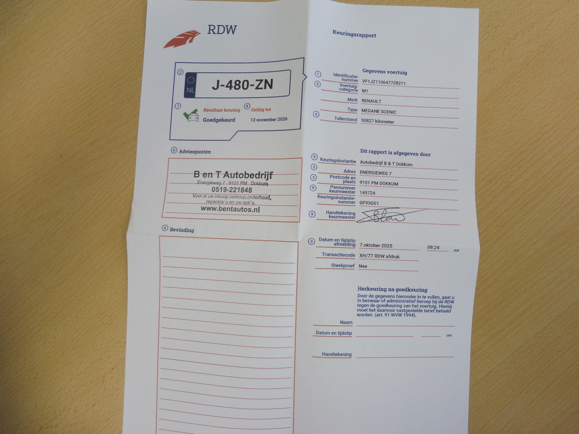 | Volgende keuring | 2026-11-12 |