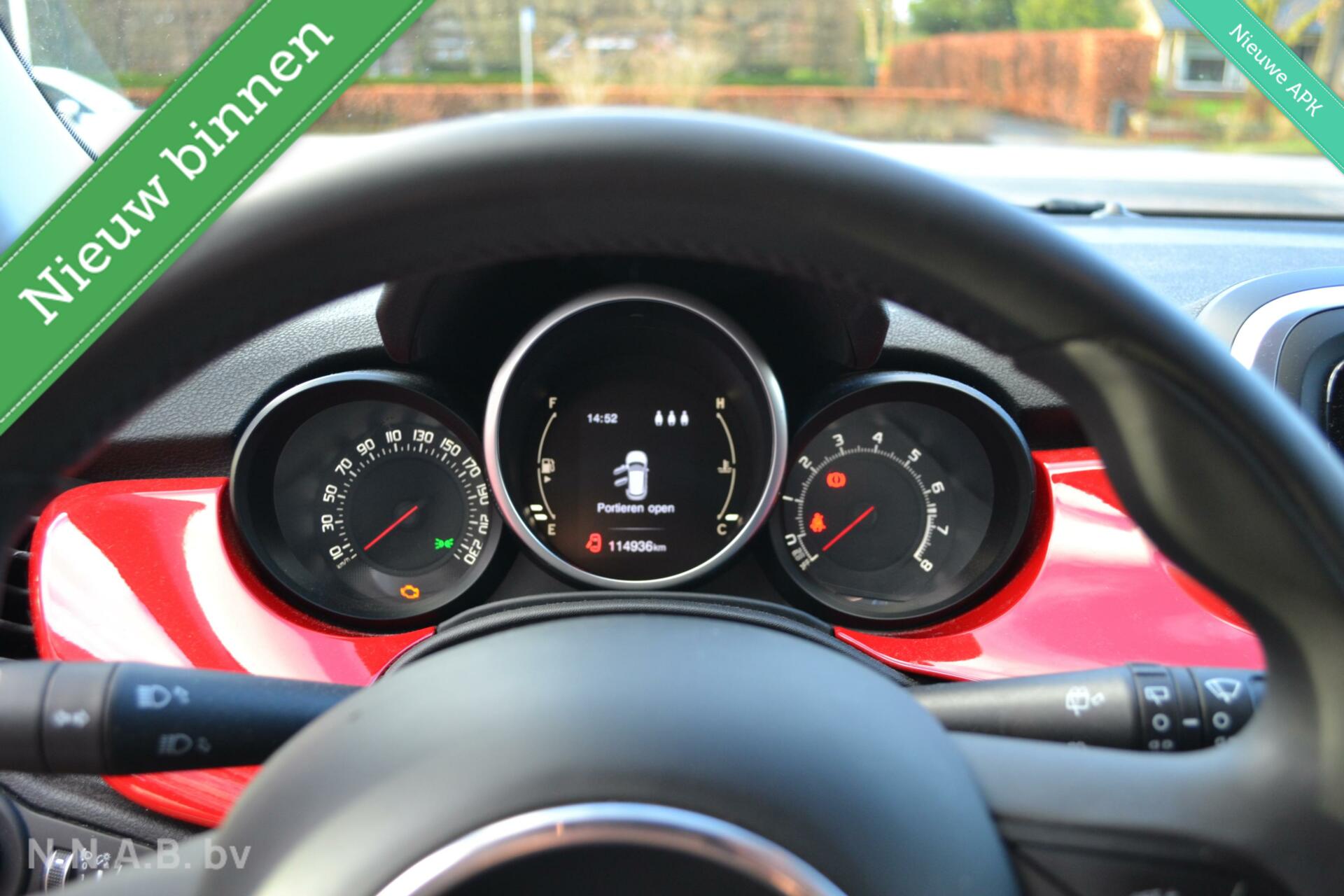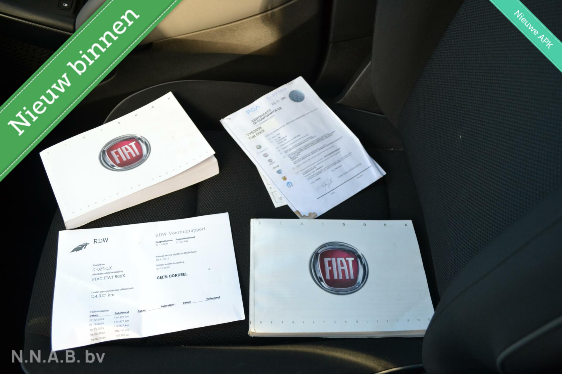 Fiat 500 X 1.4 Turbo MultiAir PopStar Meer informatieAlgemene informatieMerk: FiatModel: 500 X Type: 1.4 Turbo MultiAir PopStar Technische informatieKoppel: 230 NmAandrijving: Voorwielaandrijving Topsnelheid: 190 km/u MatenAfmetingen (LxBxH): 425 x 180 x 1600 cmWielbasis: 257 cm GewichtenLedig gewicht: 1.295 kgLaadvermogen: 580 kg Max. trekgewicht: 1.200 kg (ongeremd 600 kg) StaatSchade: schadevrijAantal sleutels: 2 (2 handzenders) Financiële informatieMotorrijtuigenbelasting: € 199 - € 217 per kwartaalBeschikbare afleverpakketten:[list][*]Pakket 1 (€ 495): Optiepakket NNAB bv. 3 maand NNAB garantie. Maximaal 1500kmDit afleverpakket bevat: Huisgarantie (3 maanden garantie); Nieuwe APK[*]Pakket 3 (€ 999): BOVAG garantie 12 maand Dit afleverpakket bevat: BOVAG garantie (12 maanden); BOVAG 40-Puntencheck; BOVAG Afleverbeurt; Huisgarantie (6 maanden garantie); Nieuwe APK[/list] |