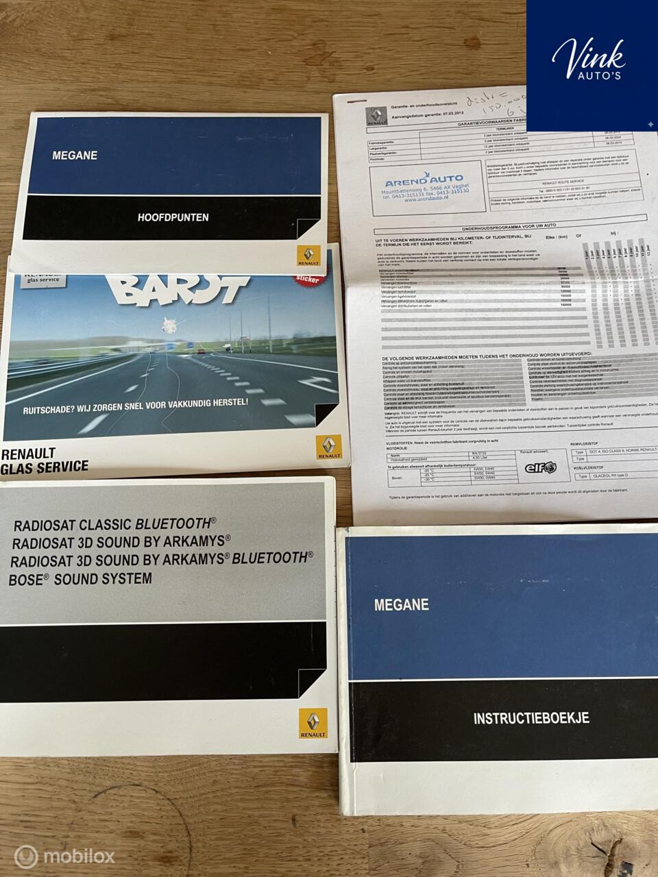 Renault Megane Estate 1.5 dCi Parisienne Meer informatieAlgemene informatieMerk: RenaultModel: Megane Estate Type: 1.5 dCi Parisienne Modelcode: III Technische informatieKoppel: 200 NmAandrijving: Voorwielaandrijving Topsnelheid: 180 km/u MatenLengte: 456 cmWielbasis: 270 cm GewichtenLedig gewicht: 1.225 kgLaadvermogen: 587 kg Max. trekgewicht: 1.500 kg (ongeremd 660 kg) StaatSchade: schadevrijFinanciële informatieMotorrijtuigenbelasting: € 375 - € 390 per kwartaalBeschikbare afleverpakketten:[list][*]🚗 Basispakket (€ 250): - Nieuwe APK inclusief voortkomende kosten - Tenaamstelling auto & vrijwaren inruilauto indien van toepassing[*]🛠️ Comfortpakket (€ 450): - Kleine onderhoudsbeurt (nieuwe olie- en filter + vloeistoffen bijvullen) - Reinigen auto - 1 maand garantie op draaiende delen motor en versnellingsbak tot 2.500 km - Nieuwe APK inclusief voortkomende kosten - Tenaamstelling auto & vrijwaren inruilauto indien van toepassingDit afleverpakket bevat: Huisgarantie (1 maand garantie)[*]✨ Premiumpakket (€ 750): • Beautykuur (deep cleaning, 3-staps polijsten, waxen en interieurbehandeling t.w.v. € 250,-) • Grote onderhoudsbeurt (t.w.v. € 250 tot ca. € 1.000,-, afhankelijk van type auto en km-stand) • Nieuwe interieurfilters + airco service • Technische controle • Nieuwe APK inclusief voortkomende kosten • Tenaamstelling auto & vrijwaren inruilauto indien van toepassing • 3 maanden garantie op draaiende delen motor en versnellingsbak tot 10.000 km Dit afleverpakket bevat: Huisgarantie (3 maanden garantie)[/list] |
