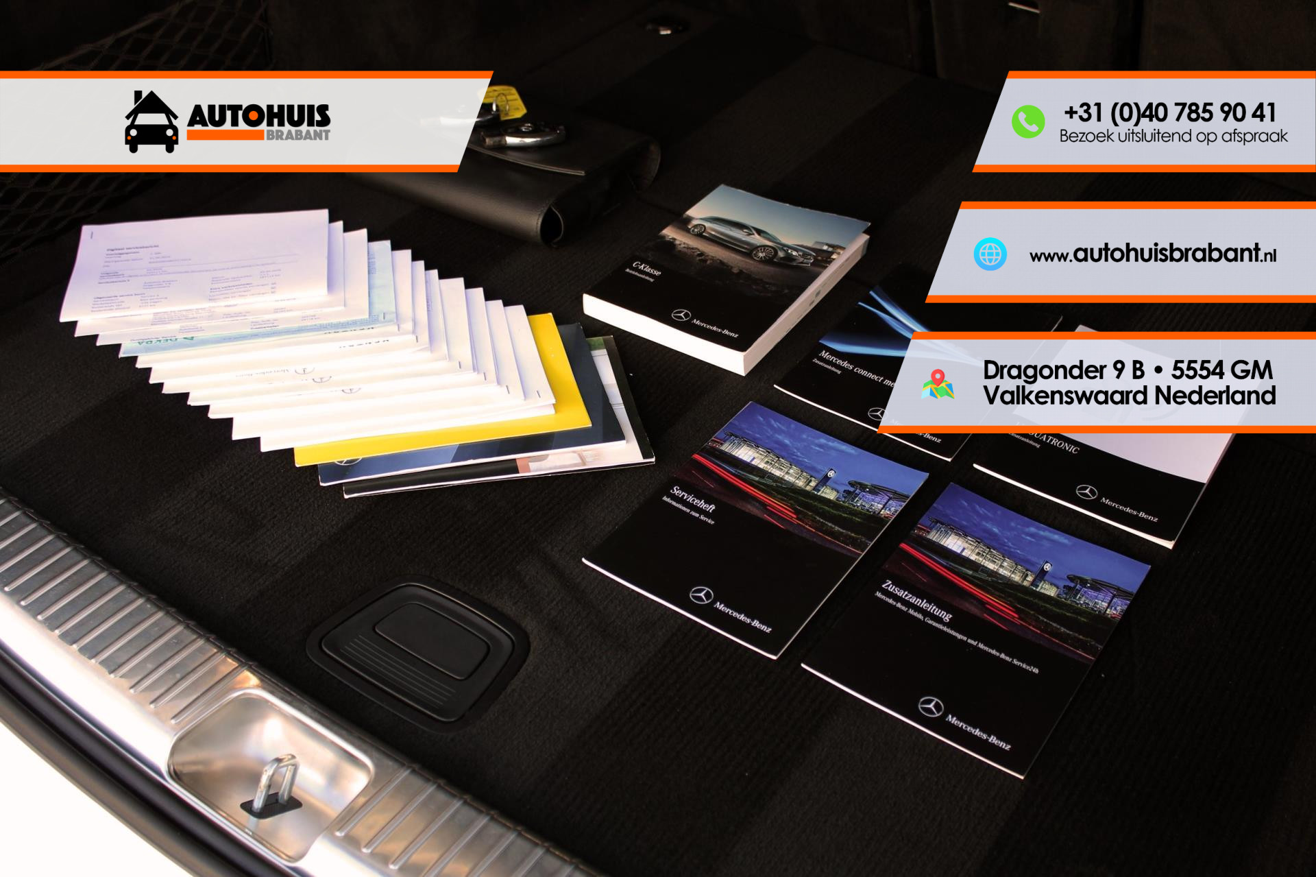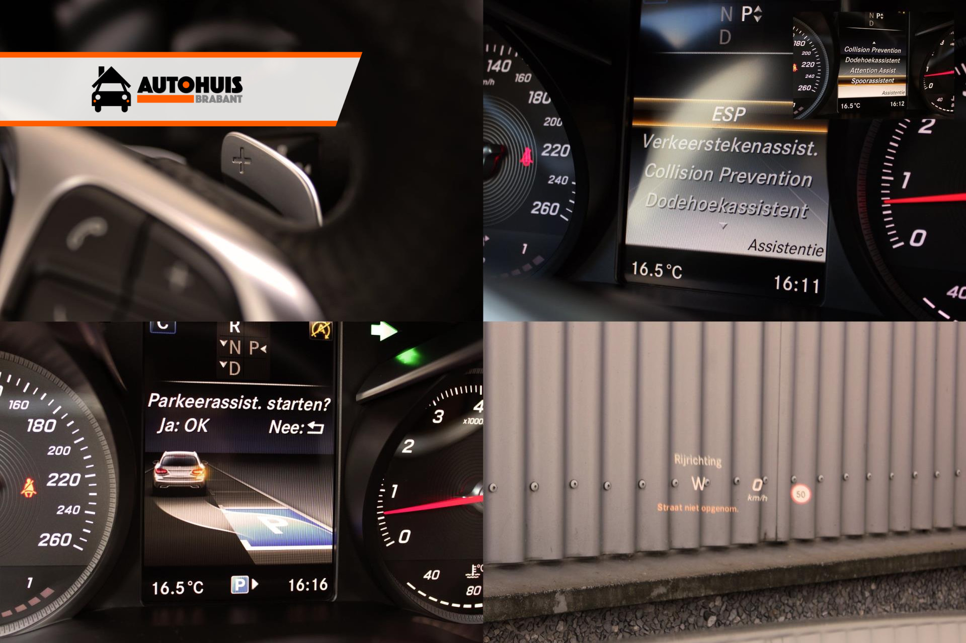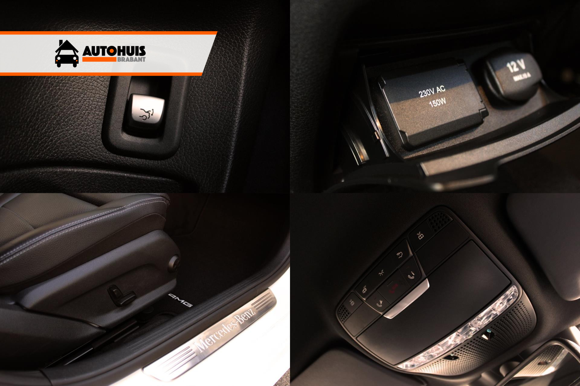Opties: 05U Remote Online. 06U Communicatiemodule voor het gebruik van de Mercedes connect me services. 141A Bekleding Lederlook ARTICO zwart. 149U Polar White. 20P Business-pakket plus. 218 Achteruitrijcamera met dynamische hulplijnen. 22P Spoorpakket (Spoorassistent, dodehoekassistent) 234 Dodehoekassistent. 235 Actieve parkeerassistent inclusief PARKTRONIC. 249 Binnen- en linkerbuitenspiegel automatisch dimmend. 258 COLLISION PREVENTION ASSIST PLUS inclusief ADAPTIVE BRAKE. 260 Typeaanduiding op bagageruimteklep vervallen. 270 GPS-antenne. 274 Telefoon-antenne. 287 Achterbankleuning neerklapbaar 40/20/40 gedeeld, middenarmsteun met dubbele bekerhouder en opbergvak. 294 Kneebag voor de bestuurder. 299 PRE-SAFE®-systeem als preventieve bescherming van de inzittenden. 309 Dubbele bekerhouder. 30P Opbergpakket (Opbergvak rechts met afdekpaneel, Bagagenet in de beenruimte van de voorpassagier, Pompadoertassen aan de voorstoelleuningen, Sjorgordel in het opbergvak van de middenconsole, Twee gevarenvesten in de portiervakken voor, Inklapbare box, Dubbele bekerhouder in de middenconsole voor twee 750 ml-flessen, Aansluiting in de bagageruimte, Dubbelzijdige mat). 345 Regensensor. 350 Mercedes-Benz noodoproepsysteem. 360 Communicatiemodule voor het gebruik van de Mercedes connect me services. 427 7G-TRONIC PLUS automatische zeventraps transmissie. 440 Cruisecontrol inclusief variabele snelheidsbegrenzing SPEEDTRONIC en HOLD-functie. 448 Touchpad. 458 AGILITY CONTROL-onderstel met selectief dempingssysteem. 463 Head-up display weergave van snelheid en al naargelang de voertuiguitrusting van snelheidsbeperkingen, navigatieaanwijzingen en assistentiesystemen. 475 Bandenspanningscontrolesysteem. 476 Automatische rijbaanherkenning. 486 Sportonderstel, 15 mm lager liggend. 500 Buitenspiegel links en rechts elektrisch inklapbaar. 513 Verkeersbordenassistent. 51U Interieurhemel in stof zwart. 531 COMAND Online 21,3 cm (8,4 inch) kleurendisplay met hoge resolutie, snelle navigatie vanaf harde schijf voor de gedigitaliseerde gebieden in Europa, 3D-navigatie met topografische kaartweergave en fotorealistische 3D-gebouwen en 3D kaartrotaties. 580 Automatische airconditioning THERMATIC met twee klimaatzones, temperatuur voor de bestuurder en voorpassagier afzonderlijk regelbaar, fijnstof-/actieve-koolstoffilter, recirculatieschakeling met comfortfunctie, zonne en dauwpuntsensor en luchtuitstroomopeningen achter. 611 Omgevingsverlichting. 628 Adaptieve grootlichtassistent plus. 642 Led-Intelligent Light System met variabele lichtverdeling, actieve bochtenverlichting, provinciale- en snelwegverlichting, afslagverlichting, uitgebreid mistlicht, dynamische koplamphoogteregeling en blauw begroetingslicht. 665 48,3 cm (19 inch) multispaaks lichtmetalen AMG-velgen hoogglans zwart en glansgedraaid voor 7,5 J x 19 ET 44 met 225/40 R19, achter 8,5 J x 19 ET 52 met 255/35 R19 inclusief banden met noodloopeigenschappen. 682 Brandblusser. 720 Dakreling in zwart. 736 Sierdelen in aluminium dwarsgeslepen licht. 772 AMG-styling bestaande uit AMG-voorskirt met sportief-markante luchtinlaten met rooster en chromen sierdeel, AMG-dorpelverbreders en AMG achterskirt in diffusorlook met inzetstuk in carrosseriekleur. 776 AMG-dorpelverbreders. 810 Burmester® surround sound system met dertien luidsprekers, negenkanaals DSP-versterker en 590 watt totaalvermogen. 815 Dvd-speler. 840 Warmtewerend, donkergetint glas rondom vanaf B-stijl. 851 Akoestisch glas geluidsdempend glas met akoestische folie voor de voorruit en veiligheidsglas met akoestische folie voor de voorste zijruiten. 873 Stoelverwarming voor de bestuurder en voorpassagier. 875 Ruitensproeierinstallatie met verwarmd ruitensproeiervloeistofreservoir. 876 Interieurverlichtingspakket (Beenruimteverlichting voor en achter, verlichte bekerhouder, verlicht opbergvak in de middenconsole, leeslampjes met led techniek in de handgrepen achterin, verlichte portiergreepuitsparingen, in/uitstap- en waarschuwingsverlichting in de portieren). 877 Sfeerverlichting voor, onder de sierdelen en in de portieren, beenruimteverlichting achter, in drie kleuren, instaplijsten met opschrift ‘Mercedes-Benz’ voor verlicht, verlichte bekerhouders, uitstap- en waarschuwingsverlichting in de portieren. 890 EASY PACK-achterklep met elektrische bediening voor openen en sluiten. 916 Brandstoftank met grotere inhoud 66 liter. B03 ECO start-stopsysteem. B59 DYNAMIC SELECT voor selectie van de rijprogramma’s. K11 Adaptief remlicht. P29 AMG Line interieur (Driespaaks multifunctioneel sportstuur in nappaleder zwart, aan de onderzijde afgevlakt in het midden geperforeerd met stuurschakelpaddles en applicatie in zilverchroom, AMG-sportpedalen in geborsteld rvs met zwarte rubbernoppen, Middendeel portieren in lederlook ARTICO met AMG Line contrastsiernaden, Interieurhemel in stof zwart, Vloermatten in zwart met opschrift ‘AMG’). P31 AMG Line exterieur (AMG-styling bestaande uit AMG-voorskirt met sportief-markante luchtinlaten met rooster en chromen sierdeel AMG dorpelverbreders en AMG-achterskirt in diffusorlook met inzetstuk in carrosseriekleur, 45,7 cm (18 inch) vijfspaaks lichtmetalen AMG-velgen, titaangrijs en glansgedraaid met banden 225/45 R18 voor en 245/40 R18 achter, Uitlaat met twee zichtbare vast in de bumper geïntegreerde uitlaatsierstukken, Sportonderstel, 15 mm lager liggend, SPORT DIRECT STEERING, Remschijven voor geperforeerd, Remklauwen voor met opschrift ‘Mercedes-Benz’). etc.