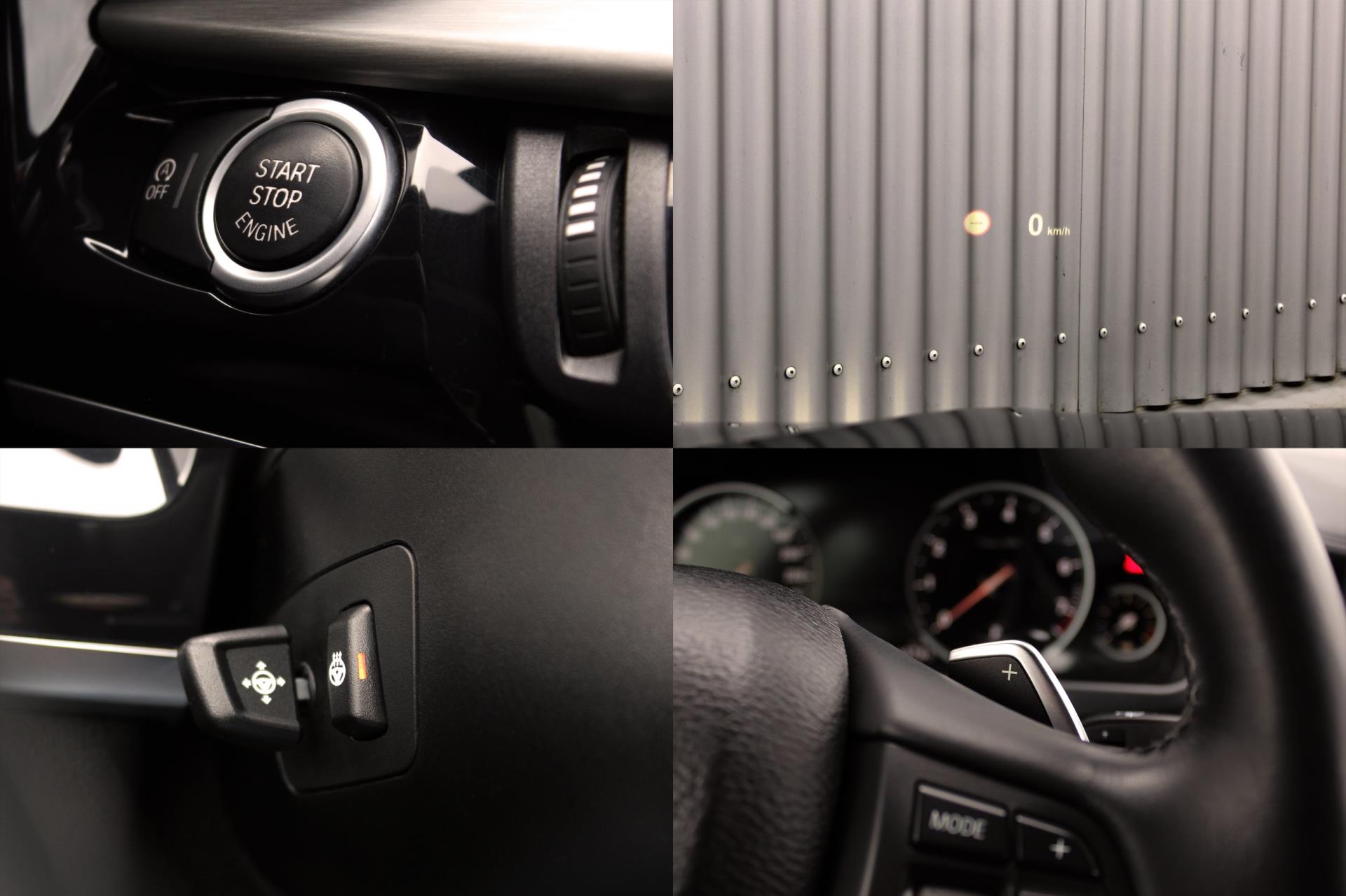Standaard uitrusting: 12V aansluiting voorin, in middenconsole achter en in bagageruimte. 8-traps Steptronic sporttransmissie met schakelpaddles aan het stuurwiel. Actieve hoofdsteunen voor. Airbags voor bestuurder en voorpassagier. Anti blokkeersysteem (ABS) incl. Cornering Brake Control (CBC). Auto Start/Stop functie. Automatisch dimmende binnenspiegel. Automatische 3-punts veiligheidsgordels (2 voor, 3 achter). AUX-in aansluiting. Basis bluetooth telefoonvoorbereiding, inclusief bluetooth audio streaming (geen telefoonhouder). Boordcomputer incl. Check Control en buitentemperatuurmeter in info display. Brake Energy Regeneration met digitale display in dashboard. Brake Force Display (tweefasen remlichten). Centrale deurvergrendeling met elektronische wegrijbeveiliging (EWS III, klasse 1 VbV/SCM) en crash-sensor. Chroom rond zijramen. Cruise Control met remfunctie. Cupholders voor- en achterin. Deels elektrische verstelbare stoelen. Derde remlicht (LED). Driving Experience Control inclusief ECO PRO modus. Dynamische Stabiliteits Controle (DSC). Elektrisch bedienbare achterklep. Elektrisch bediende ramen voor en achter. Elektrisch verstelbare en verwarmbare buitenspiegels incl. verwarmde ruitensproeiers. Elektromechanische parkeerrem. Flankbescherming. Geavanceerde noodoproep (Emergency call). Grille met verchroomde omlijsting. Hill Descent Control. Hoofdairbags voor voor- en achterinzittenden. iDrive controller met 7 DirectAccess toetsen. In delen neerklapbare achterbank 40:20:40. Interactieve handleiding in Control Display. ISOFIX bevestigingssysteem voor kinderzitjes achterin (buitenste stoelen). LED Kaartleeslampjes voor, leeslampjes achter, verlichte make-up spiegels in zonnekleppen voor. Middenarmsteun voor- en achterin. Multifunctioneel sportstuurwiel, met leder bekleed. Radio BMW Professional. Regen- en lichtsensor. Servotronic. Side airbags voor bestuurder en voorpassagier. Start/stop knop. Teleservices. Uitgebreid verlichtingspakket inclusief uitstaplichten voor en achter, verlichte deurvakken voor en achter en verlichting in de voetenruimte voorin. USB / Audio-aansluiting. Velours matten. Witte knipperlichten. xDrive (inclusief xDrive Statusweergave). Xenon lampen voor dim- en grootlicht inclusief Corona-ringen met LED-technologie en koplampsproeiers.
