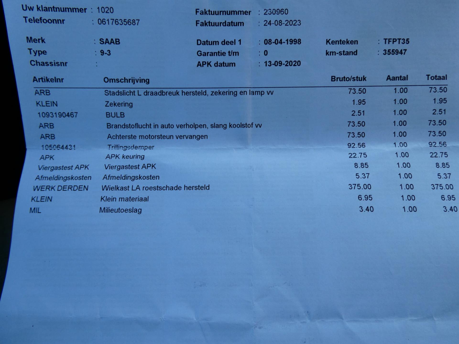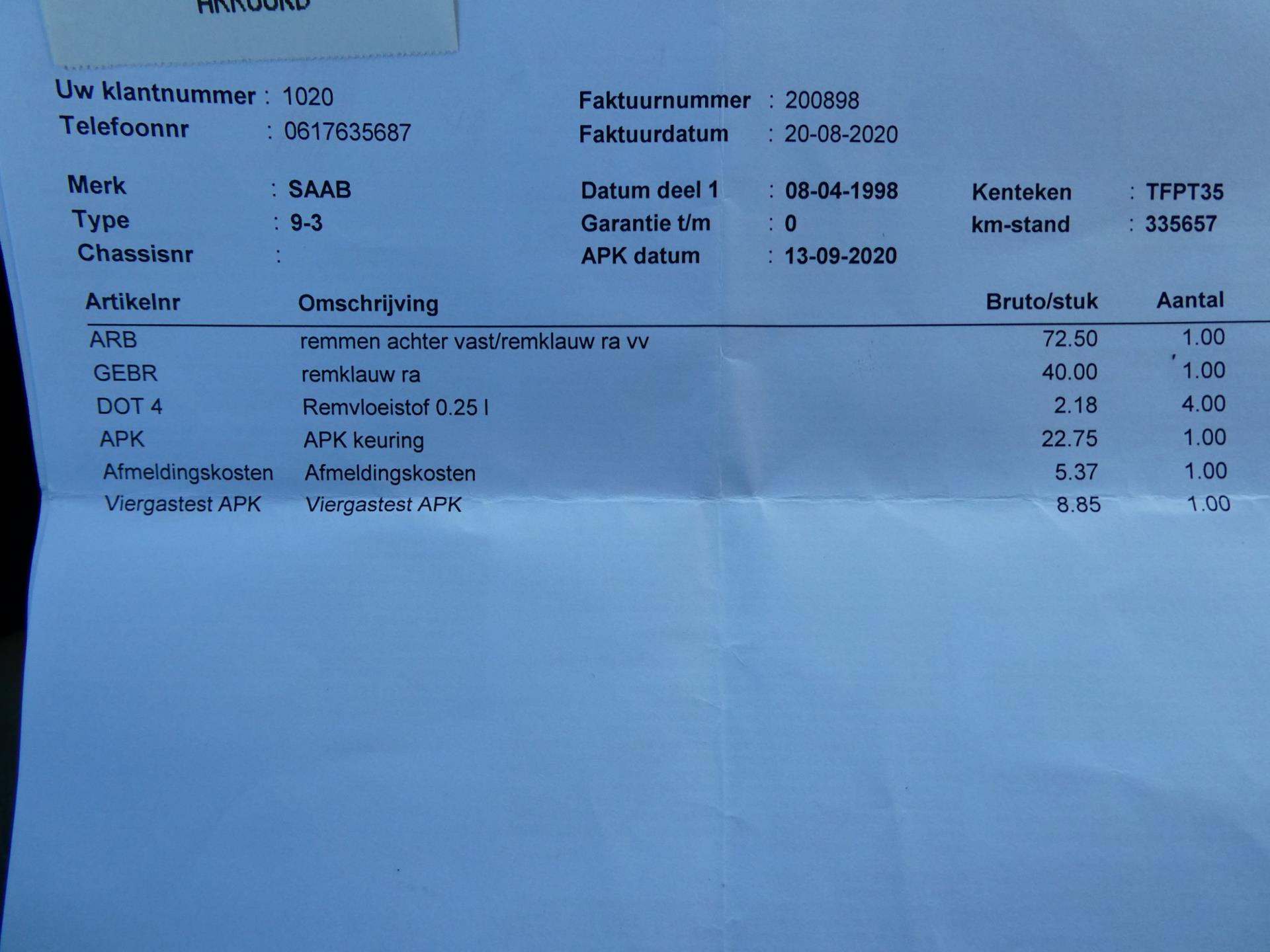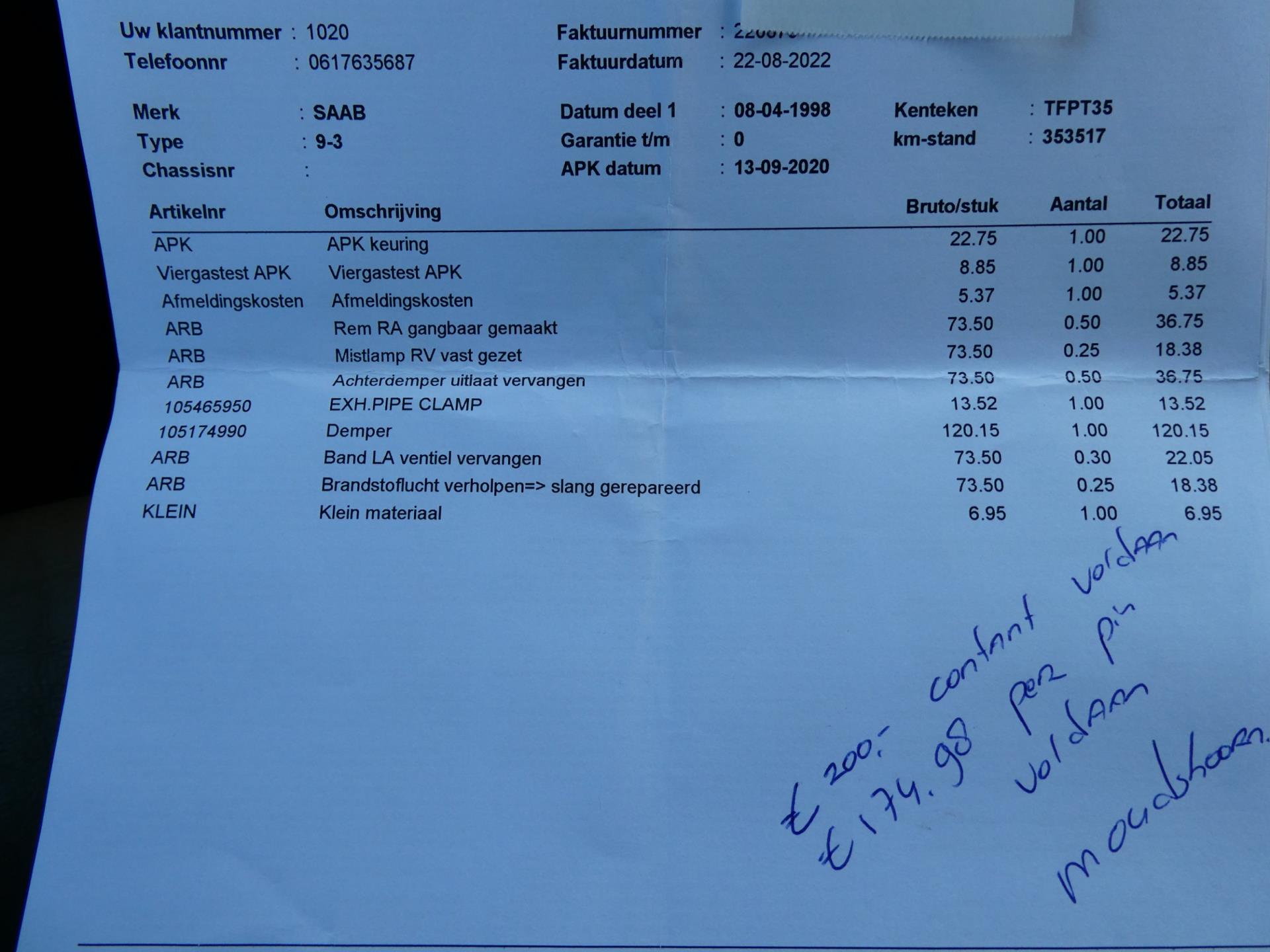 YOUNGTIMER MET VEEL HISTORIE - GEEN IMPORT - AUTOMAAT 150PK - CLIMA - LEDER - NETTE KAP - STOELVERWARMING Meer informatieAlgemene informatieMerk: SaabModel: 9-3 Cabrio Type: 2.3 SE 150pk Automaat Clima Leder Historie Youngtimer Technische informatieAandrijving: VoorwielaandrijvingAcceleratie (0-100): 11,0 s Topsnelheid: 205 km/u MatenWielbasis: 261 cmGewichtenLedig gewicht: 1.370 kgLaadvermogen: 440 kg Max. trekgewicht: 1.600 kg (ongeremd 735 kg) StaatAantal sleutels: 1 (1 handzender)Financiële informatieMotorrijtuigenbelasting: € 226 - € 247 per kwartaal |