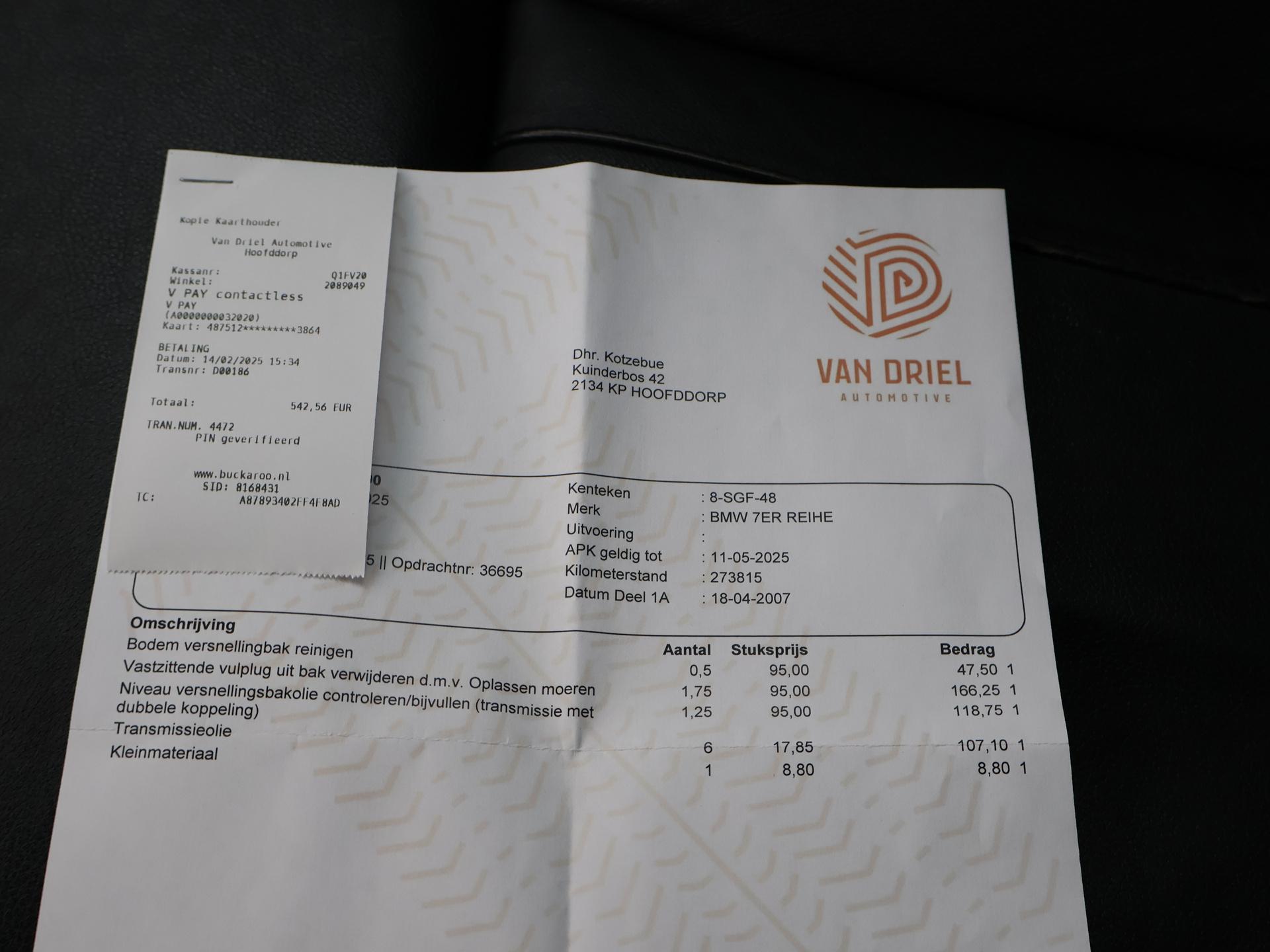 BMW 7-serie, 740i 306 PK 8-Cilinder automaat, Onderhoudsboekje afgestempeld aanwezig, Soft-close, Volledig leder interieur met stoelverwarming, Comfortzetels, Elektrische stoelverstelling, Navigatiesysteem met kaartweergave, Cruise control, Climate control, Lichtmetalen velgen, Elektrisch verstelbaar stuurwiel, Memory seats, Multifunctioneel leder stuurwiel, Xenon verlichting. Meer informatieAlgemene informatieMerk: BMWModel: 7-serie Type: 740i 306 PK AUT. Modelreeks: 2005 - 2008 Modelcode: E66 Technische informatieKoppel: 390 NmAandrijving: Achterwielaandrijving Tankinhoud: 88 liter Acceleratie (0-100): 6,8 s Topsnelheid: 250 km/u MatenWielbasis: 299 cmGewichtenLedig gewicht: 1.870 kgLaadvermogen: 605 kg Max. trekgewicht: 2.100 kg (ongeremd 750 kg) MilieuCO₂-uitstoot (NEDC): 267 g/kmFinanciële informatieMotorrijtuigenbelasting: € 360 - € 394 per kwartaalAfleverpakkettenInbegrepen afleverpakket: Basispakket:Vloeistofcheck Kenteken tenaamstelling Schoonmaken ProductveiligheidEU verantwoordelijke: BMW Nederland B.V. Einsteinlaan 5 2289 CC Rijswijk, NL 08000992234 www.bmw.nl DSA-BMW@BMW.nl |