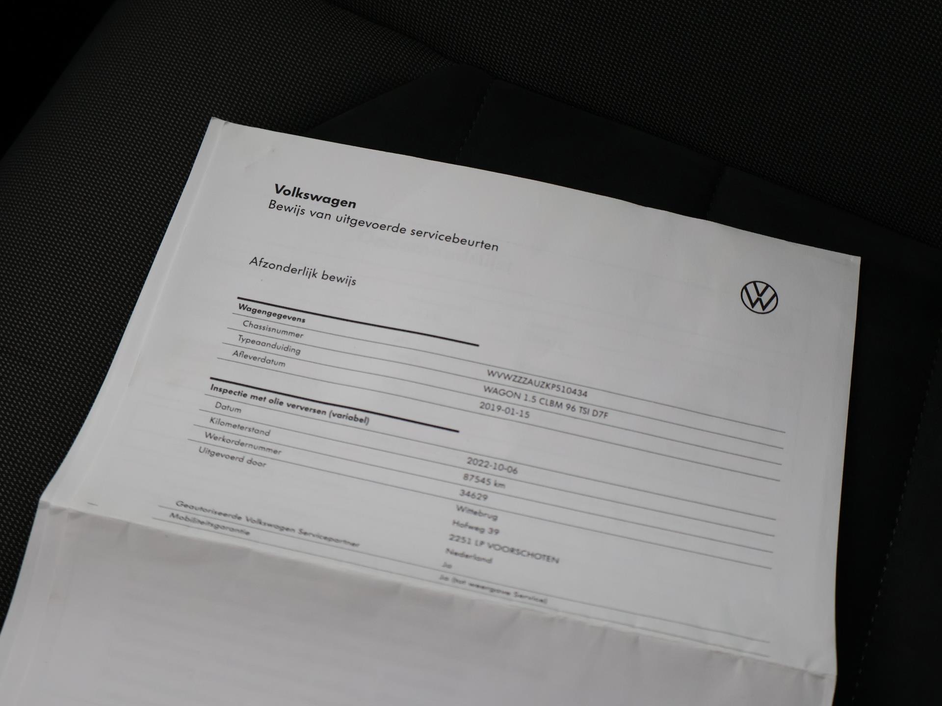 Origineel Nederlandse 1e eigenaar auto van 01-2019, Dealer onderhouden, Bijzonder mooie kleur: Urano Grey, Bestuurdersstoel met massagefunctie, Adaptieve cruise control met regelbare afstand op de voorligger, Apple carplay/Android auto met verschillende apps waaronder: Spotify, Whatsapp en Flitsmeister, Stoelverwarming met 3 standen, Navigatiesysteem met kaartweergave, Bluetooth telefoonverbinding met audiostreaming, Bluetooth telefoon met audiostreaming, Elektrische ramen voor + achter, Lichtmetalen velgen. Meer informatieAlgemene informatieMerk: VolkswagenModel: Golf Variant Type: 1.5 TSI 130 PK DSG AUT. Modelreeks: 2017 - 2020 Modelcode: VII, 5G Technische informatieKoppel: 200 NmAandrijving: Voorwielaandrijving Tankinhoud: 50 liter Acceleratie (0-100): 9,5 s Topsnelheid: 211 km/u MatenAfmetingen (LxB): 457 x 180 cmWielbasis: 264 cm GewichtenLedig gewicht: 1.295 kgLaadvermogen: 625 kg Max. trekgewicht: 1.400 kg (ongeremd 690 kg) MilieuCO₂-uitstoot (NEDC): 111 g/kmFinanciële informatieMotorrijtuigenbelasting: € 199 - € 217 per kwartaalBeschikbare afleverpakketten:[list][*]Basispakket (inbegrepen):Vloeistofcheck Kenteken tenaamstelling Schoonmaken [*]Servicepakket 1 (€ 495 meerprijs): Olie servicebeurt incl. filter Schoonmaken Dit afleverpakket bevat (in plaats van afleverpakket "Basispakket"): Hazet garantie 3 maanden (3 maanden garantie); Nieuwe APK[*]Servicepakket 2 (€ 695 meerprijs): Onderhoudsbeurt volgens schema Schoonmaken Dit afleverpakket bevat (in plaats van afleverpakket "Basispakket"): Hazet garantie 6 maanden (6 maanden garantie, 10.000 km garantie); Nieuwe APK[*]Servicepakket 3 (€ 995 meerprijs): Onderhoudsbeurt volgens schema Poetsen, polijsten en interieur reiniging Dit afleverpakket bevat (in plaats van afleverpakket "Basispakket"): BOVAG garantie (12 maanden); Nieuwe APK[/list] |