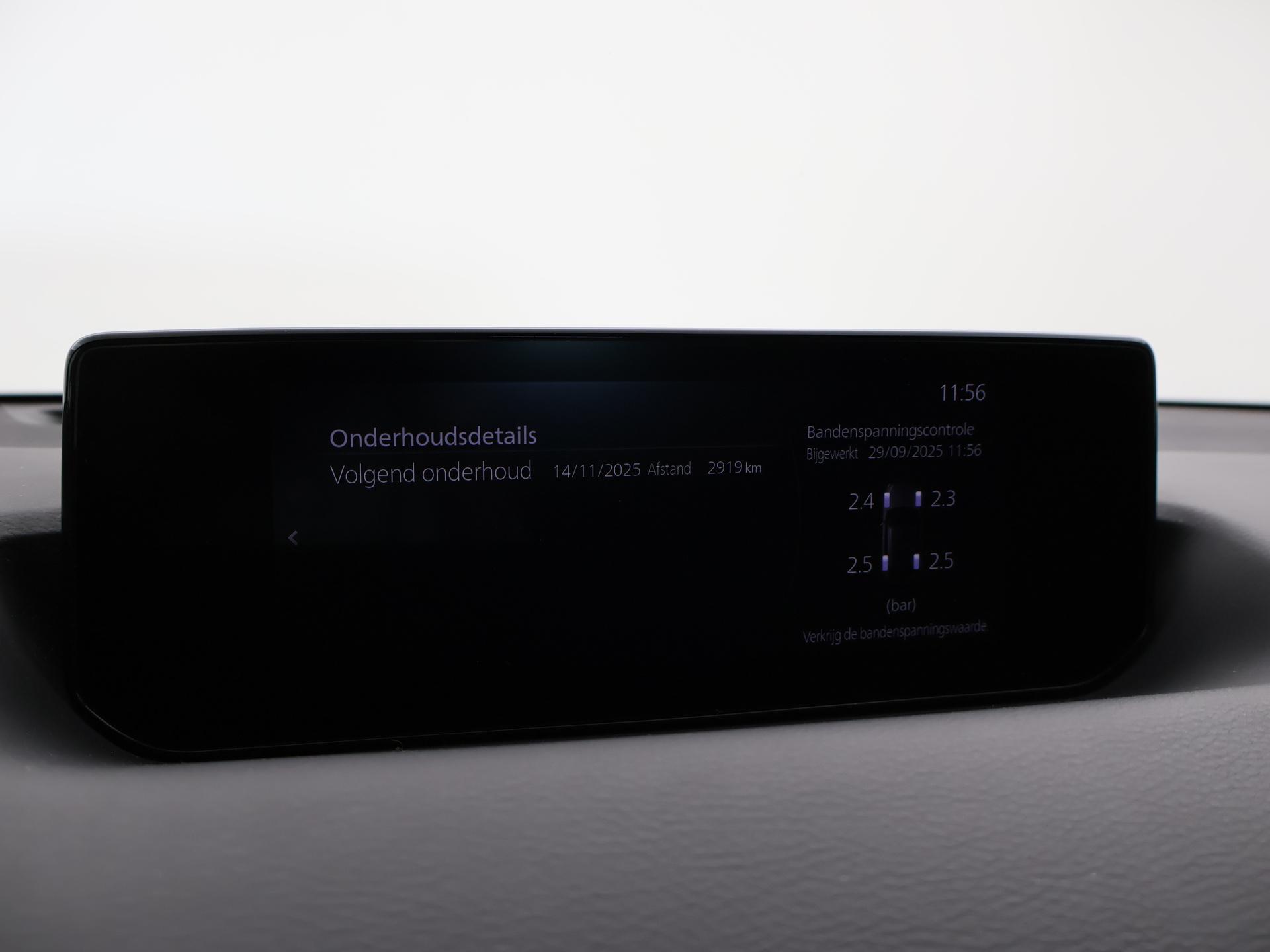 Volledig elektrisceh MX-30 in de First Edition uitvoering in het Ceramic Metallic met zwart/bruin half leder interieur, Elektrische stoelverstelling met geheugen, Head-up display, Breedbeeld Navigatie, Apple Carplay / Android Auto breedbeeld appstreaming Navigatie Google Maps, Spotify, Flitsmeister, Parkeersensoren voor + achter, Stoelverwarming, Adaptive cruise control, Elektrisch inklapbare buitenspiegels, Digitale tellers, LED koplampen, LED achterlichten, Climate control, Privacy glass. Meer informatieAlgemene informatieMerk: MazdaModel: MX-30 Type: e-SkyActiv 145 PK FIRST EDITION 36 kWh + HEAD-UP Modelreeks: 2019 - 2025 Technische informatieKoppel: 271 NmAandrijvingActieradius: 200 kmAsconfiguratieAandrijving: VoorwielaandrijvingPrestatiesAcceleratie (0-100): 9,7 sTopsnelheid: 140 km/u Maten en gewichtenLedig gewicht: 1.620 kgLaadvermogen: 499 kg Breedte: 180 cm Wielbasis: 267 cm AccuAccu: 36 kWhAccu laden: 6.6 kW Accu snelladen: 40 kW Milieu en verbruikGemiddeld elektriciteitsverbruik: 19 kWh/100kmCO₂-uitstoot (WLTP): 0 g/km Financiële informatieMotorrijtuigenbelasting: € 137 - € 149 per kwartaalBeschikbare afleverpakketten:[list][*]Basispakket (inbegrepen):Vloeistofcheck Kenteken tenaamstelling Schoonmaken [*]Servicepakket 1 (€ 495 meerprijs): Olie servicebeurt incl. filter Schoonmaken Dit afleverpakket bevat (in plaats van afleverpakket "Basispakket"): Hazet garantie 3 maanden (3 maanden garantie); Nieuwe APK[*]Servicepakket 2 (€ 695 meerprijs): Onderhoudsbeurt volgens schema Schoonmaken Dit afleverpakket bevat (in plaats van afleverpakket "Basispakket"): Hazet garantie 6 maanden (6 maanden garantie, 10.000 km garantie); Nieuwe APK[*]Servicepakket 3 (€ 995 meerprijs): Onderhoudsbeurt volgens schema Poetsen, polijsten en interieur reiniging Dit afleverpakket bevat (in plaats van afleverpakket "Basispakket"): BOVAG garantie (12 maanden); Nieuwe APK[/list] ProductveiligheidEU verantwoordelijke: Mazda Motor Nederland Postbus 353 2740 AJ Waddinxveen, NL 0182-685000 http://www.mazda.nl info-nl@mazdaeur.comOverige informatieMinimale laadtijd AC vanaf: 20Minimale laadtijd AC tot: 80 Minimale laadtijd AC van 20% tot 80%: 180 min Minimale laadtijd DC vanaf: 20 Minimale laadtijd DC tot: 80 Minimale laadtijd DC van 20% tot 80%: 36 min |