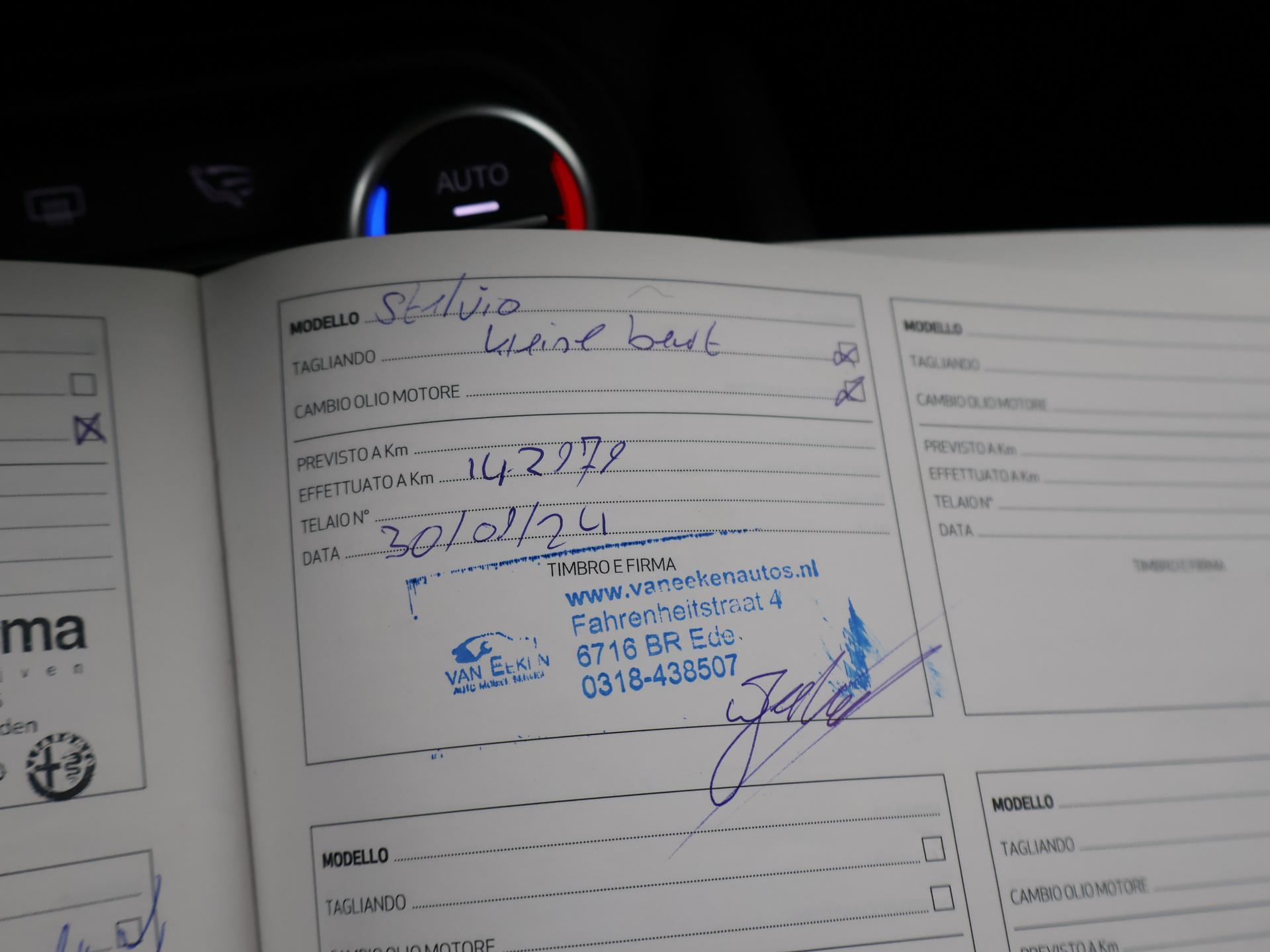 2.0 Turbo 280 PK AWD Automaat, Donkergrijs met hoogglans zwarte 20 inch velgen, Zwart volledig leder interieur met Alfa Romeo logo's in de armsteun, Stoelverwarming, Stuurwielverwarming, Achteruitrijcamera, Navigatie, DAB+ digitale radio, Trekhaak met 2300 kg trekgewicht op kenteken, Elektrische achterklep, Keyless-entry en keyless-drive, Sportuitlaat met dubbele pijpen, Bi-Xenon koplampen met LED dagrijverlichting, Bluetooth met audiostreaming, DNA Regelbare rij-eigenschappen. Meer informatieAlgemene informatieMerk: Alfa RomeoModel: Stelvio Type: 2.0T 280 PK AWD FIRST EDITION + 20 INCH | TREKHAAK Modelreeks: 2017 - 2023 Technische informatieKoppel: 400 NmAandrijving: Vierwielaandrijving Tankinhoud: 64 liter Acceleratie (0-100): 5,7 s Topsnelheid: 230 km/u MatenAfmetingen (LxB): 469 x 190 cmWielbasis: 282 cm GewichtenLedig gewicht: 1.635 kgLaadvermogen: 665 kg Max. trekgewicht: 2.300 kg (ongeremd 750 kg) MilieuCO₂-uitstoot (NEDC): 161 g/kmFijnstofuitstoot: 3,1 mg/km Financiële informatieMotorrijtuigenbelasting: € 280 - € 306 per kwartaalBeschikbare afleverpakketten:[list][*]Basispakket (inbegrepen):Vloeistofcheck Kenteken tenaamstelling Schoonmaken [*]Servicepakket 1 (€ 495 meerprijs): Olie servicebeurt incl. filter Schoonmaken Dit afleverpakket bevat (in plaats van afleverpakket "Basispakket"): Hazet garantie 3 maanden (3 maanden garantie); Nieuwe APK[*]Servicepakket 2 (€ 695 meerprijs): Onderhoudsbeurt volgens schema Schoonmaken Dit afleverpakket bevat (in plaats van afleverpakket "Basispakket"): Hazet garantie 6 maanden (6 maanden garantie, 10.000 km garantie); Nieuwe APK[*]Servicepakket 3 (€ 995 meerprijs): Onderhoudsbeurt volgens schema Poetsen, polijsten en interieur reiniging Dit afleverpakket bevat (in plaats van afleverpakket "Basispakket"): BOVAG garantie (12 maanden); Nieuwe APK[/list] |