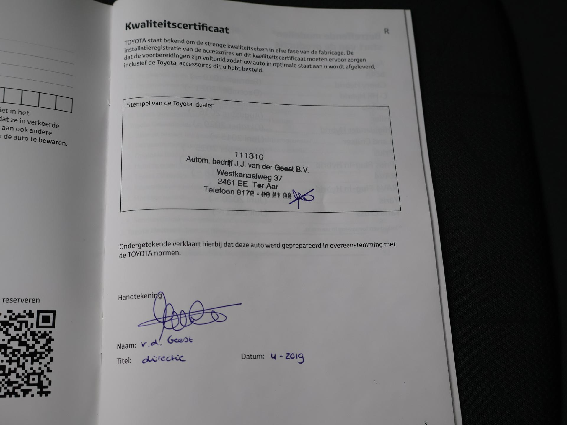 Nieuw model RAV4 2.5 Hybrid 222 PK AWD Automaat, First Edition uitvoering, Origineel Nederlandse en 1e eigenaar auto, Volledig erkend Toyota specialist onderhouden, boekje compleet afgestempeld, Trekhaak met 1650 kg trekgewicht op kenteken ivm AWD vierwielaandrijving, 360 graden camerasysteem, Full LED koplampen, LED achterlichten, Apple Carplay / Android Auto appstreaming Google Maps / Flitsmeister / Spotify / Whatsapp etc, Privacy glass, Adaptive cruise control, Grootlichtassistent, Dual-zone climate control, Parkeersensoren voor + achter, 2 USB laders achterin, Digitale cockpit, Elektrische achterklep. Meer informatieAlgemene informatieMerk: ToyotaModel: RAV4 Type: 2.5 HYBRID AWD FIRST EDITION + TREKHAAK 1650 KG Modelreeks: 2019 - 2025 Technische informatieKoppel: 221 NmAandrijving: Vierwielaandrijving Tankinhoud: 55 liter Acceleratie (0-100): 8,1 s Topsnelheid: 180 km/u MatenAfmetingen (LxB): 460 x 186 cmWielbasis: 269 cm GewichtenLedig gewicht: 1.620 kgLaadvermogen: 605 kg Max. trekgewicht: 1.650 kg (ongeremd 750 kg) MilieuCO₂-uitstoot (NEDC): 101 g/kmFinanciële informatieMotorrijtuigenbelasting: € 280 - € 306 per kwartaalBeschikbare afleverpakketten:[list][*]Basispakket (inbegrepen):Vloeistofcheck Kenteken tenaamstelling Schoonmaken [*]Servicepakket 1 (€ 495 meerprijs): Olie servicebeurt incl. filter Schoonmaken Dit afleverpakket bevat (in plaats van afleverpakket "Basispakket"): Hazet garantie 3 maanden (3 maanden garantie); Nieuwe APK[*]Servicepakket 2 (€ 695 meerprijs): Onderhoudsbeurt volgens schema Schoonmaken Dit afleverpakket bevat (in plaats van afleverpakket "Basispakket"): Hazet garantie 6 maanden (6 maanden garantie, 10.000 km garantie); Nieuwe APK[*]Servicepakket 3 (€ 995 meerprijs): Onderhoudsbeurt volgens schema Poetsen, polijsten en interieur reiniging Dit afleverpakket bevat (in plaats van afleverpakket "Basispakket"): BOVAG garantie (12 maanden); Nieuwe APK[/list] |