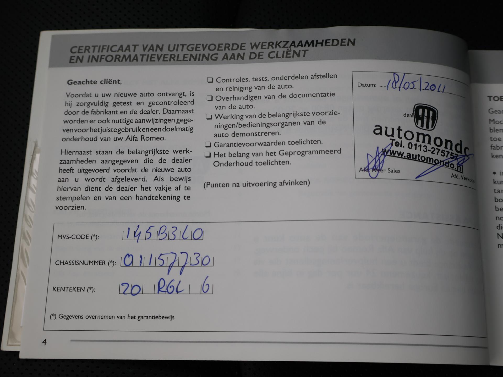 1.3 JTDm diesel handgeschakeld van bouwjaar 2011, Origineel Nederlandse auto, Zwart met zwart volledig leder sportinterieur, Bose premium audio, Cruise control, Audio met stuurwielbediening, Middenarmsteun, Climate control, Leder stuurwiel, Parkeersensoren achter. Meer informatieAlgemene informatieMerk: Alfa RomeoModel: MiTo Type: 1.3 JTDm + LEDER | BOSE | SPORTSTOELEN Modelreeks: 2008 - 2019 Technische informatieKoppel: 200 NmAandrijving: Voorwielaandrijving Tankinhoud: 45 liter Acceleratie (0-100): 12,5 s Topsnelheid: 175 km/u MatenLengte: 406 cmWielbasis: 251 cm GewichtenLedig gewicht: 1.125 kgLaadvermogen: 505 kg Max. trekgewicht: 1.000 kg (ongeremd 400 kg) MilieuCO₂-uitstoot (NEDC): 95 g/kmFijnstofuitstoot: 0,6 mg/km Financiële informatieMotorrijtuigenbelasting: € 321 - € 335 per kwartaalAfleverpakkettenInbegrepen afleverpakket: Basispakket:Vloeistofcheck Kenteken tenaamstelling Schoonmaken |