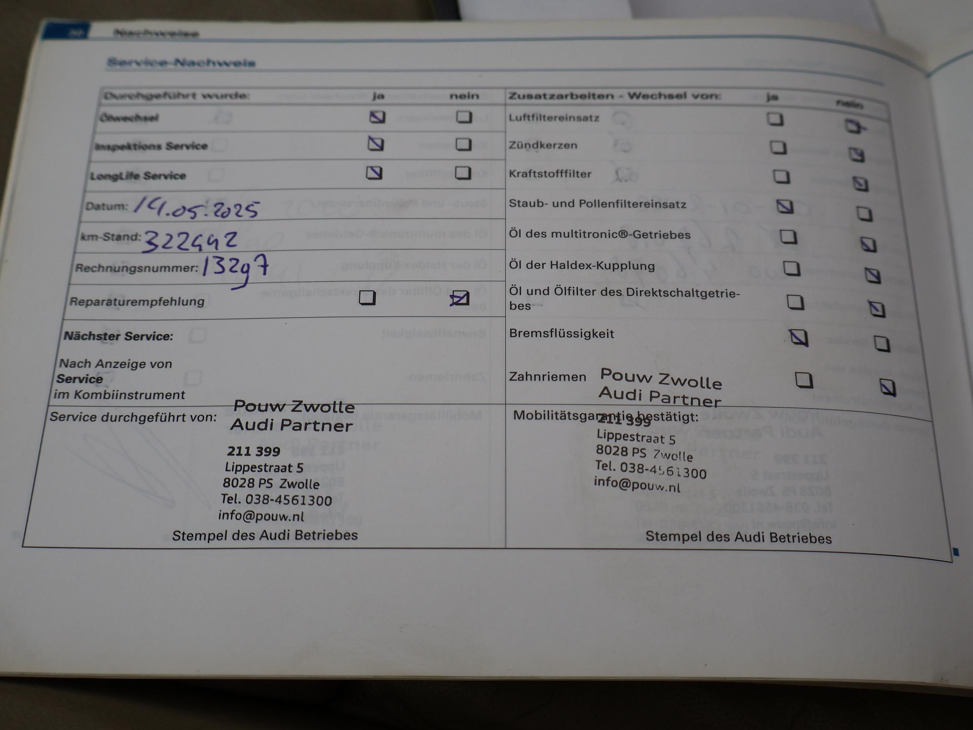A4 cabrio 3.0 TDI V6 232 PK Quattro in het Alpaca Beige metallic (kleur Y5) met Beige leder sportinterieur met verlengbaar zitvlak en stoelverwarming. Navigatie, Climate control, Cruise control, Xenon verlichting, Parkeersensoren voor + achter, Windscherm, Elektrische stoelverstelling, Houtinleg dashboard, Bluetooth carkit. Youngtimer met dagwaarde bijtelling bij zakelijke aanschaf. Meer informatieAlgemene informatieMerk: AudiModel: A4 Cabriolet Type: 3.0 TDI V6 232 PK QUATTRO *ALPACA BEIGE* Modelreeks: 2006 - 2009 Modelcode: B7 Technische informatieKoppel: 450 NmAandrijving: Vierwielaandrijving Tankinhoud: 70 liter Acceleratie (0-100): 7,8 s Topsnelheid: 242 km/u MatenWielbasis: 265 cmGewichtenLedig gewicht: 1.790 kgLaadvermogen: 505 kg Max. trekgewicht: 1.800 kg (ongeremd 750 kg) MilieuCO₂-uitstoot (NEDC): 223 g/kmFijnstofuitstoot: 1 mg/km Financiële informatieMotorrijtuigenbelasting: € 636 - € 667 per kwartaalAfleverpakkettenInbegrepen afleverpakket: Basispakket:Vloeistofcheck Kenteken tenaamstelling Schoonmaken |