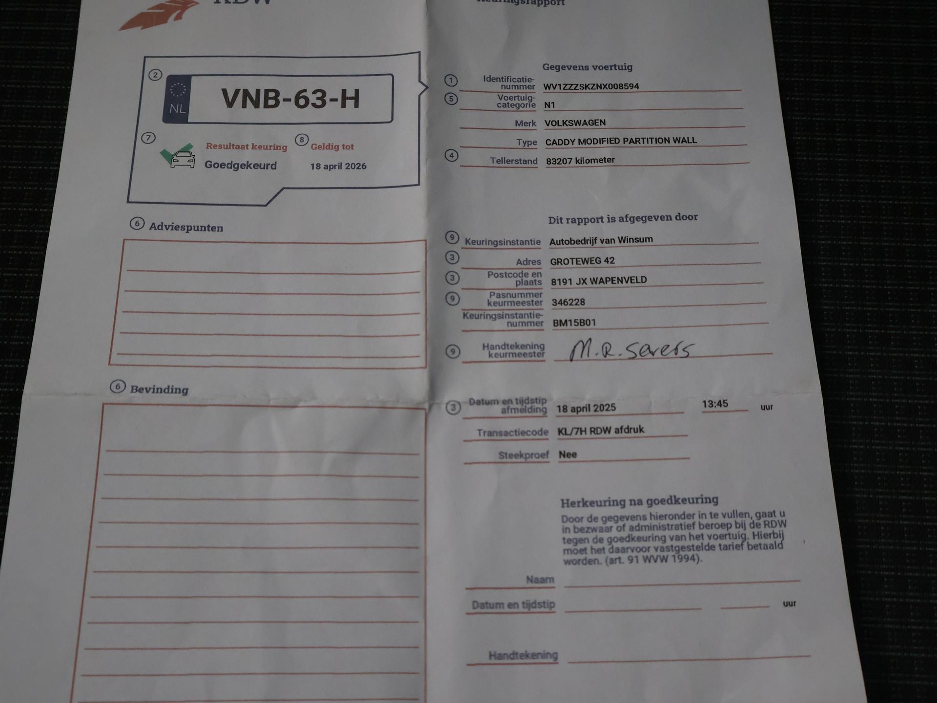 | Volgende keuring | 2026-04-18 |