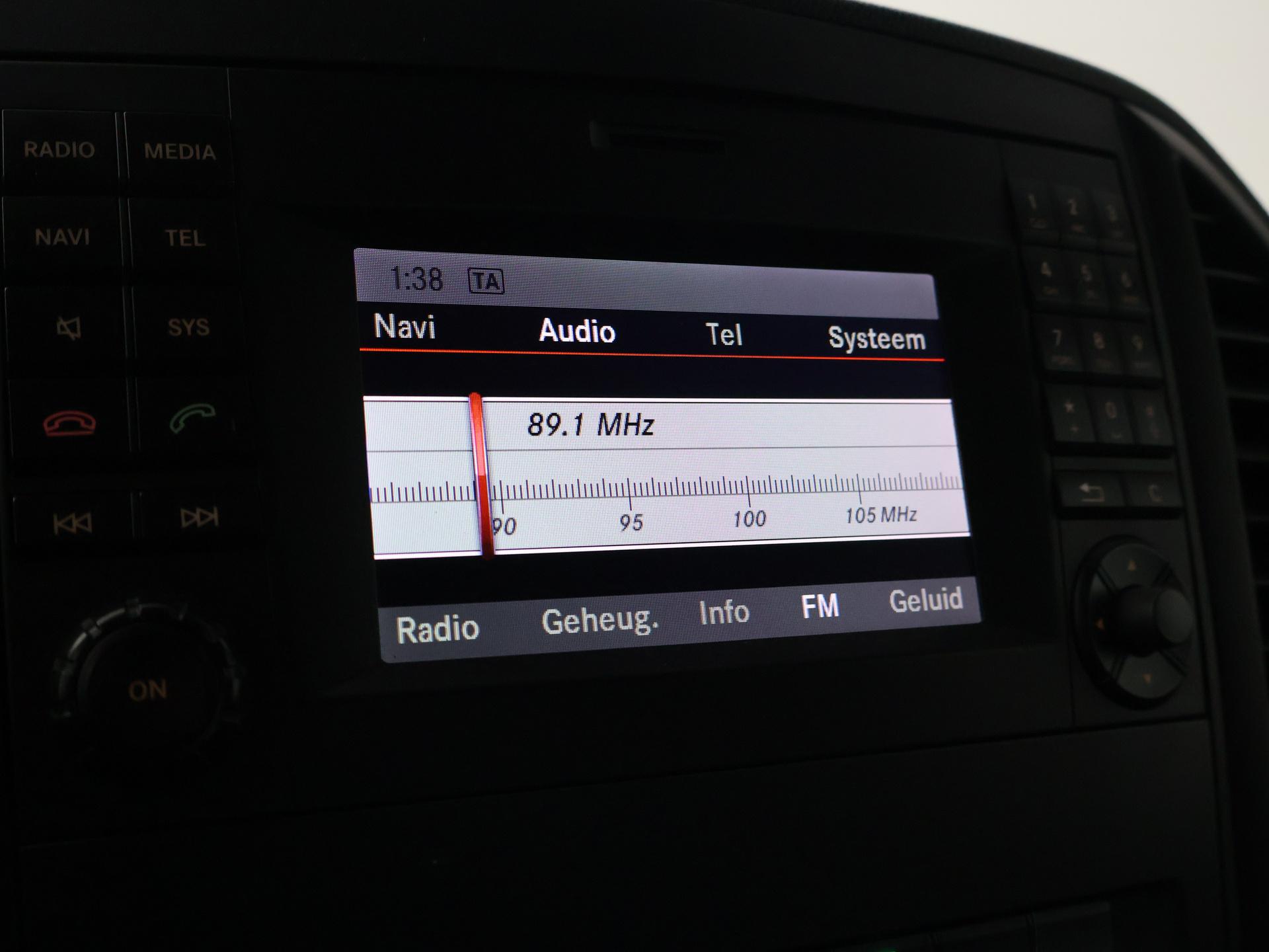 Vito 119 CDI L2H1 2.2 CDI 190 PK Automaat enkel cabine met 2 zitplaatsen. Deze Mercedes vito is o.a. voorzien van: 2 comfortstoelen met armleuningen, zwart leder interieur, Full LED koplampen, Navigatiesysteem full map, Achteruitrijcamera met aparte trekhaak / aanhanger modus, LED achterlichten, 17 inch lichtmetalen velgen, afneembare Trekhaak, Dodehoek ruit in de zijschuifdeur, Bumpers in carrosseriekleur, Stoelverwarming, Chromen grille, Dodehoek detectie, Attention Assist, Parkeersensoren voor + achter, Cruise control, Lijnassistentie, Airco, Leder stuurwiel multifunctioneel, Buitenspiegels elektrisch inklapbaar, Prijs is exclusief BTW. Meer informatieAlgemene informatieMerk: Mercedes-BenzModel: Vito Type: 119 CDI 190 PK AUT7 EURO 6 + LEDER | STOELVERW. Modelreeks: 2014 - 2024 Technische informatieKoppel: 440 NmAandrijving: Achterwielaandrijving Tankinhoud: 72 liter Acceleratie (0-100): 9,0 s Topsnelheid: 206 km/u MatenLengte/hoogte: L2H1Afmetingen (LxB): 514 x 193 cm Wielbasis: 320 cm GewichtenLedig gewicht: 2.010 kgLaadvermogen: 1.040 kg Max. trekgewicht: 2.000 kg (ongeremd 750 kg) FunctioneelInhoud laadruimte: 6.000 lMilieuCO₂-uitstoot (NEDC): 158 g/kmFijnstofuitstoot: 0,5 mg/km StaatTechnische staat: goedOptische staat: goed Staat interieur: goed Aantal sleutels: 1 (1 handzender) Financiële informatieMotorrijtuigenbelasting: € 183 per kwartaalBeschikbare afleverpakketten:[list][*]Basispakket (inbegrepen):Vloeistofcheck Kenteken tenaamstelling Schoonmaken [*]Servicepakket 1 (€ 495 meerprijs): Olie servicebeurt incl. filter Schoonmaken Dit afleverpakket bevat (in plaats van afleverpakket "Basispakket"): Hazet garantie 3 maanden (3 maanden garantie); Nieuwe APK[*]Servicepakket 2 (€ 695 meerprijs): Onderhoudsbeurt volgens schema Schoonmaken Dit afleverpakket bevat (in plaats van afleverpakket "Basispakket"): Hazet garantie 6 maanden (6 maanden garantie, 10.000 km garantie); Nieuwe APK[/list] ProductveiligheidEU verantwoordelijke: Mercedes-Benz Nederland B.V. Ravenswade 4 3439 LD Nieuwegein, NL 0302091000 www.mercedes-benz.nl cs.nld@cac.mercedes-benz.comOverige informatieAirconditioning: werktStoringsmelding: Nee |