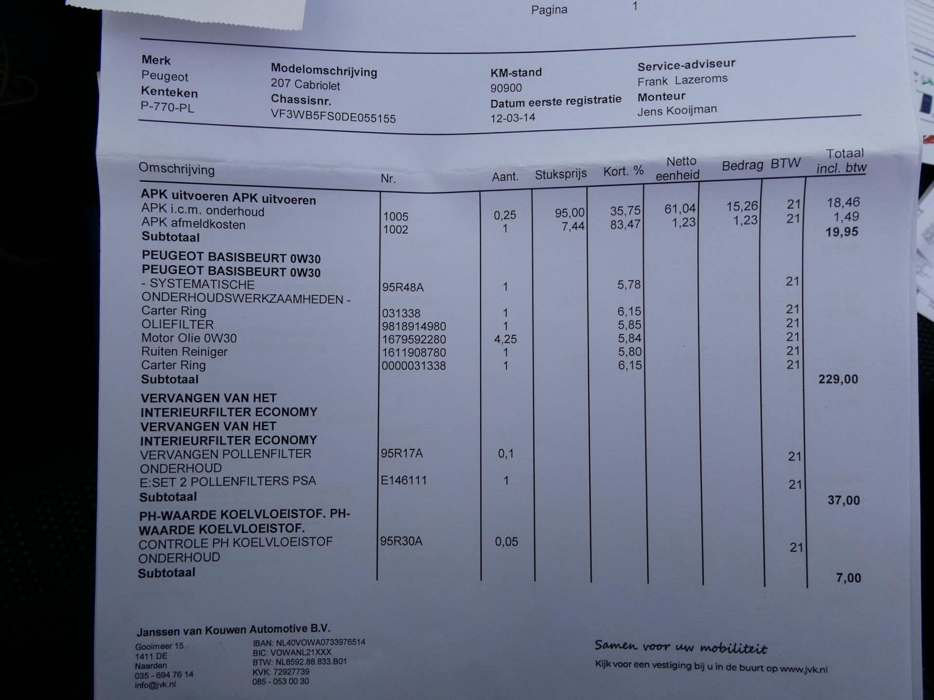 Van harte welkom bij Occasiondealer 't Gooi B.V. Onze specialisatie is de verkoop van gebruikte auto's tot € 10.000,- Onze Occasions zijn merendeel afkomstig van grote dealerbedrijven. Wij letten bij de inkoop extra op de volgende zaken : Onderhoudshistorie, schadeverleden en een laag aantal vorige eigenaren (veelal zijn onze auto's afkomstig van 1e, 2e of 3e eigenaar). Reserveren van een auto wordt alleen geaccepteerd als de klant onderweg is. Inruilen van uw huidige auto, fiets of boot behoort (bijna) altijd tot de mogelijkheden. U moet dan wel langskomen met het object; wij bieden geen inruilprijs zonder iets 'live'/ in het echt gezien te hebben...Daarnaast moet u onze auto ook eerst zien...Stap 1 is derhalve langskomen. Wij berekenen geen afleverkosten maar werken met zogenaamde meeneemprijzen. Alle moeite is genomen om de informatie op deze internetsite zo accuraat en actueel mogelijk weer te geven. Fouten zijn echter nooit uit te sluiten. Vertrouw daarom niet alleen op deze informatie, maar controleer bij aankoop de zaken die uw beslissing zouden kunnen beïnvloeden.. De door u gekochte auto kan direct bij ons op naam worden gezet, is er sprake van een inruilauto, dan kunnen wij deze voor u direct vrijwaren. U kunt bij ons ook per PIN betalen, veilig en snel. Vergeet niet om bij een hoger bedrag uw PIN-limiet te verhogen ! Dit kunt u meestal in uw bank-app wijzigen.. Voor meer informatie over ons bedrijf en ons aanbod kunt u kijken op www.occasiondealerhetgooi.nl. Onze openingstijden zijn op werkdagen van 10.00 tot 17.30 uur en op zaterdag van 10.00 tot 16.00 uur. Naar 'de laagste prijs' vragen en/of op afstand een bod doen is niet zoals wij werken en wordt derhalve niet op gereageerd. Vanwege het grote aanbod auto's adviseren we u om telefonisch met ons in contact te komen. Wij adviseren om voor vertrek te bellen of de auto van uw keuze op dat moment nog beschikbaar is. Welkom op de Koninginneweg 64 te Kortenhoef (5 km van Hilversum). TELEFOON 035-6566868 Meer informatieAlgemene informatieMerk: Peugeot Model: 207 CC Type: 1.6 VTi 120pk 2e eigenaar Airco Cruise 110.000km. Technische informatieAandrijving: Voorwielaandrijving Acceleratie (0-100): 10,7 s Topsnelheid: 200 km/uMatenWielbasis: 254 cmGewichtenLedig gewicht: 1.317 kg Laadvermogen: 392 kg Max. trekgewicht: 1.040 kg (ongeremd 600 kg)StaatAantal sleutels: 2 (2 handzenders)Financiële informatieMotorrijtuigenbelasting: € 199 - € 217 per kwartaal |
