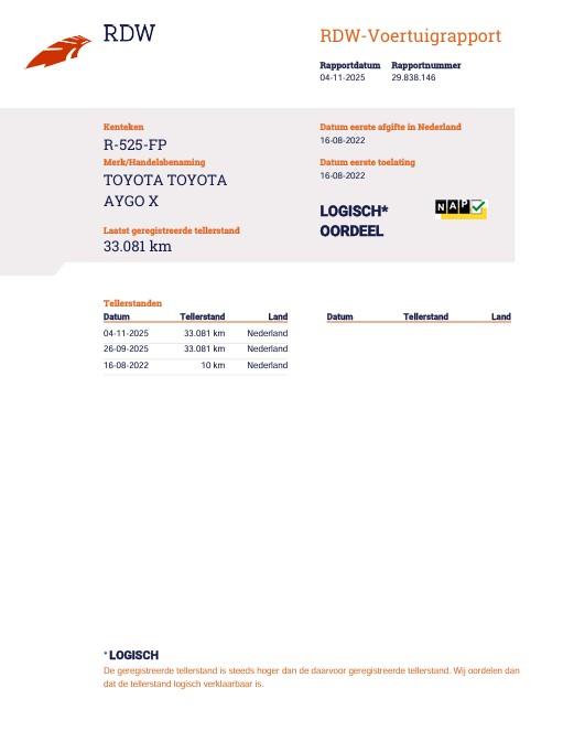 | Type | Toyota Aygo X 1.0 VVT-i MT Play |Apple Carplay/ Android auto | Bluetooth | Camera| NL | 1 Eig | |