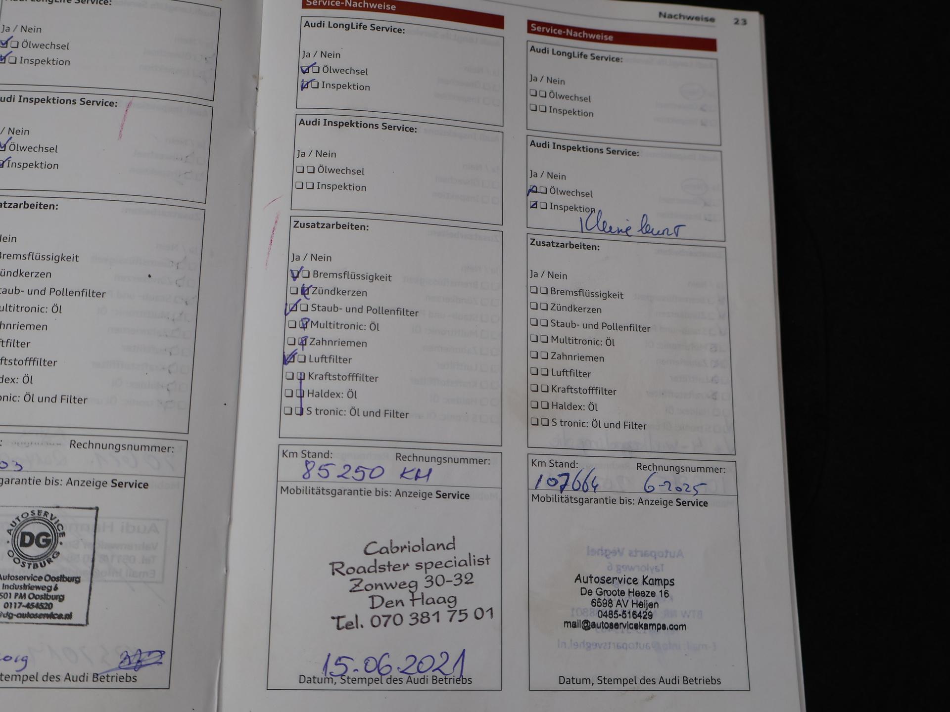 TT RS / TTRS met de 2.5 5-cilinder turbomotor met 340 PK vermogen en Quattro vierwielaandrijving, Zwart leder/alcantara sportinterieur met TTRS logo in de hoofdsteunen, 19 inch hoogglans zwarte velgen, Bose premium sound, Stoelverwarming, Navigatie, Cruise control, Climate control, Leder sportstuurwiel met vlakke onderzijde, Parkeersensoren, Xenon verlichting met LED dagrijverlichting, Elektronische achterspoiler, Elektrische cabriokap. Meer informatieAlgemene informatieMerk: AudiModel: TT RS Type: ROADSTER 2.5T TTRS 340 PK AUT. QUATTRO Modelreeks: 2008 - 2014 Modelcode: 8J9 Technische informatieKoppel: 450 NmAandrijving: Vierwielaandrijving Tankinhoud: 60 liter Acceleratie (0-100): 4,4 s Topsnelheid: 250 km/u Maten en gewichtenLedig gewicht: 1.510 kgLaadvermogen: 345 kg Wielbasis: 247 cm MilieuCO₂-uitstoot (NEDC): 199 g/kmFijnstofuitstoot: 1,9 mg/km Financiële informatieMotorrijtuigenbelasting: € 243 - € 268 per kwartaalBeschikbare afleverpakketten:[list][*]Basispakket (inbegrepen):Vloeistofcheck Kenteken tenaamstelling Schoonmaken [*]Servicepakket 1 (€ 495 meerprijs): Olie servicebeurt incl. filter Schoonmaken Dit afleverpakket bevat (in plaats van afleverpakket "Basispakket"): Hazet garantie 3 maanden (3 maanden garantie); Nieuwe APK[*]Servicepakket 2 (€ 695 meerprijs): Onderhoudsbeurt volgens schema Schoonmaken Dit afleverpakket bevat (in plaats van afleverpakket "Basispakket"): Hazet garantie 6 maanden (6 maanden garantie, 10.000 km garantie); Nieuwe APK[*]Servicepakket 3 (€ 995 meerprijs): Onderhoudsbeurt volgens schema Poetsen, polijsten en interieur reiniging Dit afleverpakket bevat (in plaats van afleverpakket "Basispakket"): BOVAG garantie (12 maanden); Nieuwe APK[/list] ProductveiligheidEU verantwoordelijke: Pon's Automobielhandel B V Zuiderinslag 2 3833 BP Leusden, NL 088-0330108 www.audi.nl info@audi.nl |