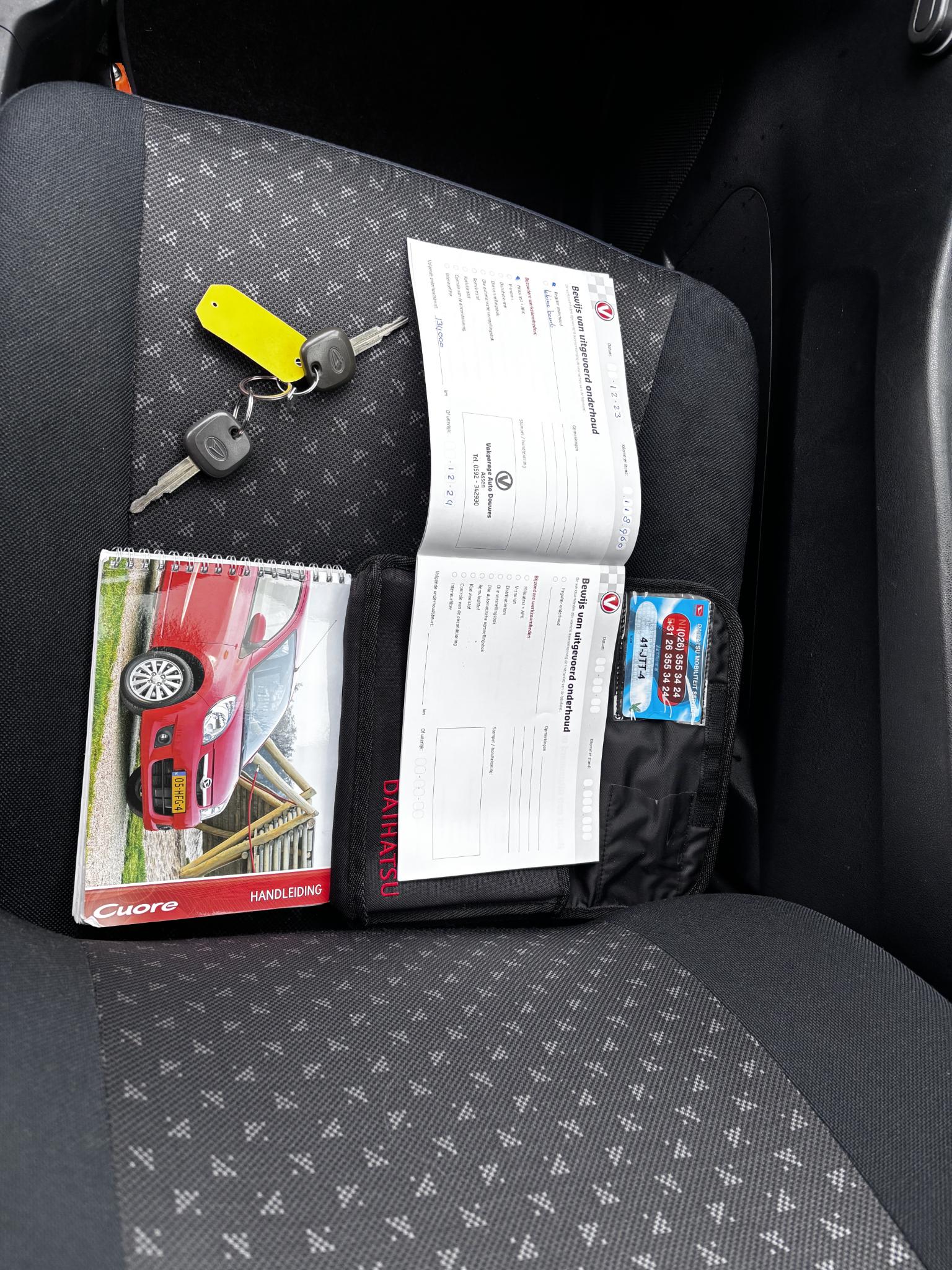 Bij Auto Timmer kunt u kiezen uit verschillende garantie en afleverpakketten, zodat u precies de zekerheid krijgt die bij uw wensen en budget past. Met het Basis Garantiepakket van €295 bent u verzekerd van een minimaal 6 maanden geldige APK, een basis controlebeurt waarbij vitale onderdelen worden nagelopen en vloeistoffen worden bijgevuld, en de auto wordt zowel van binnen als buiten netjes gepoetst. De tenaamstelling wordt geregeld en dit pakket is beschikbaar voor occasions vanaf €4.500. Meer informatieAlgemene informatieMerk: DaihatsuModel: Cuore Type: 1.0 Clever Modelreeks: 2007 - 2012 Modelcode: L276 Technische informatieKoppel: 94 NmAandrijving: Voorwielaandrijving Tankinhoud: 36 liter Acceleratie (0-100): 11,1 s Topsnelheid: 160 km/u MatenWielbasis: 249 cmGewichtenLedig gewicht: 740 kgLaadvermogen: 510 kg Max. trekgewicht: 600 kg (ongeremd 250 kg) MilieuCO₂-uitstoot (NEDC): 104 g/kmStaatTechnische staat: goedOptische staat: goed Staat interieur: goed Financiële informatieMotorrijtuigenbelasting: € 51 - € 56 per kwartaalAfleverpakkettenInbegrepen afleverpakket (à € 99): Basis afleverpakketDit afleverpakket bevat: Nieuwe APK; Geldige APK, RDW-leges ProductveiligheidEU verantwoordelijke: Daihatsu Holland B.V. Postbus 149 4130 EC Vianen, NL 0347-750500 www.daihatsu.nl rovam@daihatsu.nlOverige informatieAirconditioning: werktStoringsmelding: Nee Bandenset: Zomerbanden |