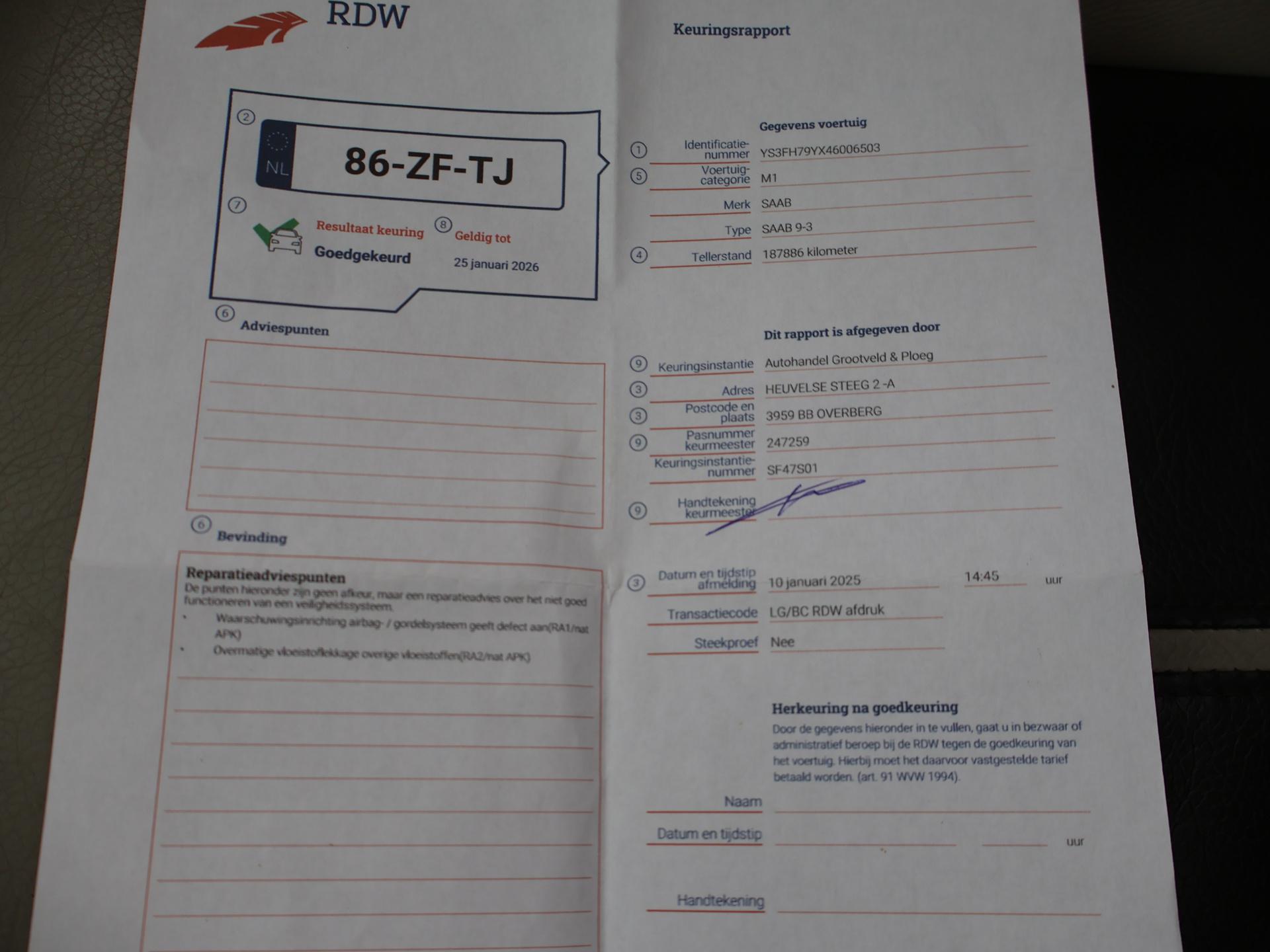 | Volgende keuring | 2026-01-25 |