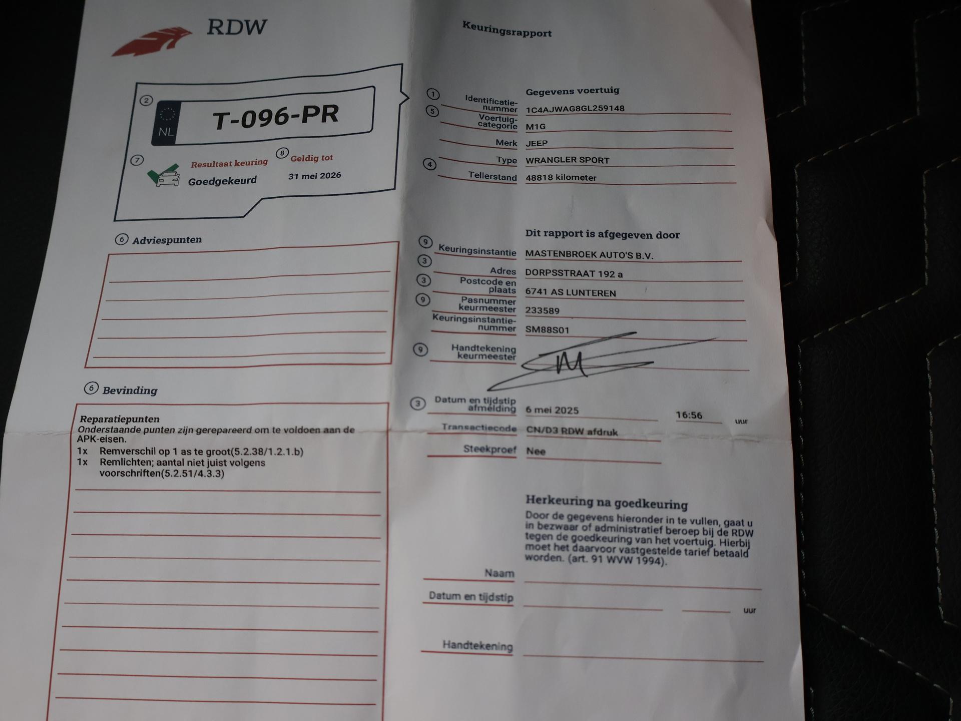 | Volgende keuring | 2026-05-31 |