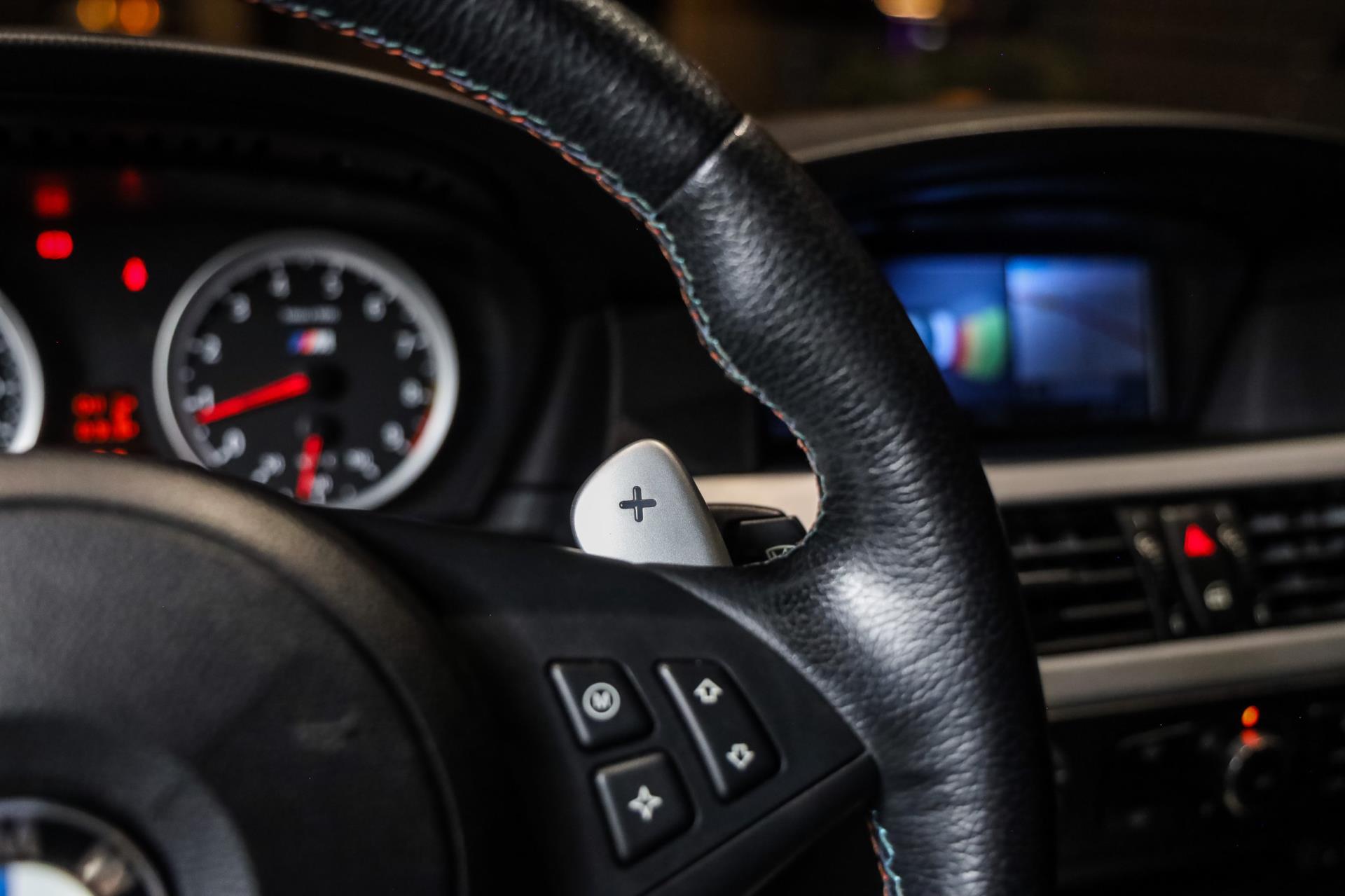 De SMG III in deze M5 is geen bak voor watjes. Dit is een enkelkoppeling-slagwapen dat schakelt met de subtiliteit van een mokerslag. Met één ruk aan de flippers knalt hij de volgende versnelling erin — tot 65 milliseconden — alsof hij je uitlacht en zegt: harder kan altijd. In de M-stand verandert schakelen in strijdlust: vol gas, vol geluid, volle beleving. Dit is geen automatische transmissie die je vertroetelt maar dit is pure mechaniek die je domineert, uitdaagt en elke rit verslavend maakt.
