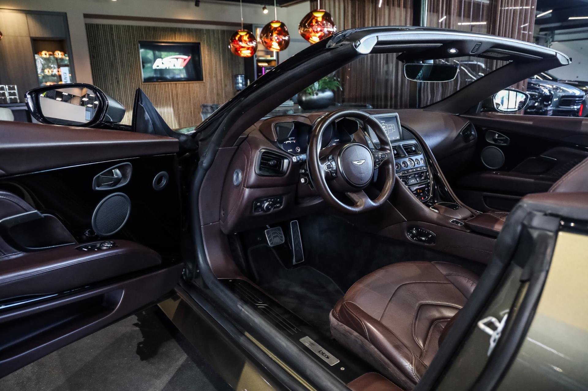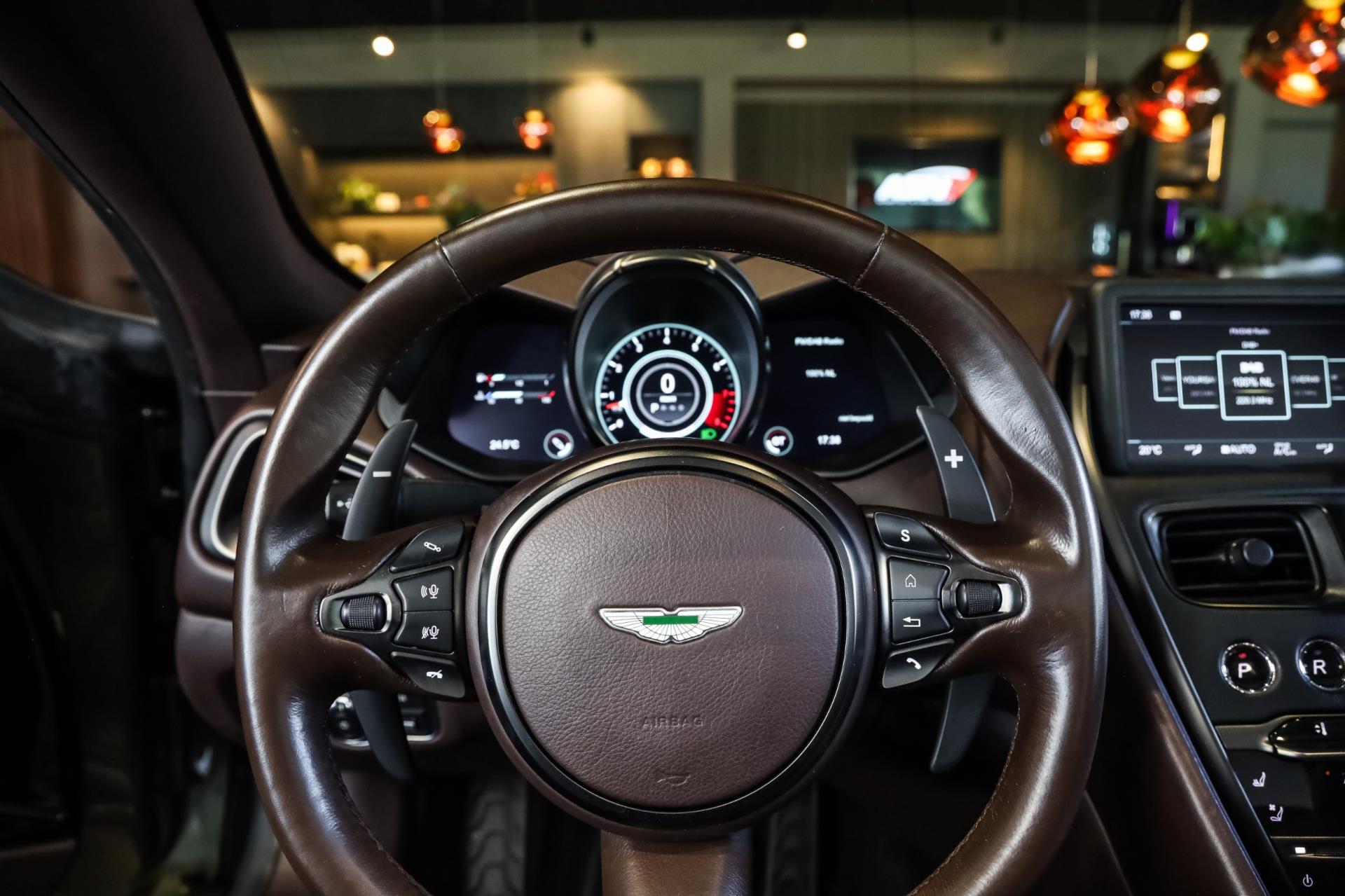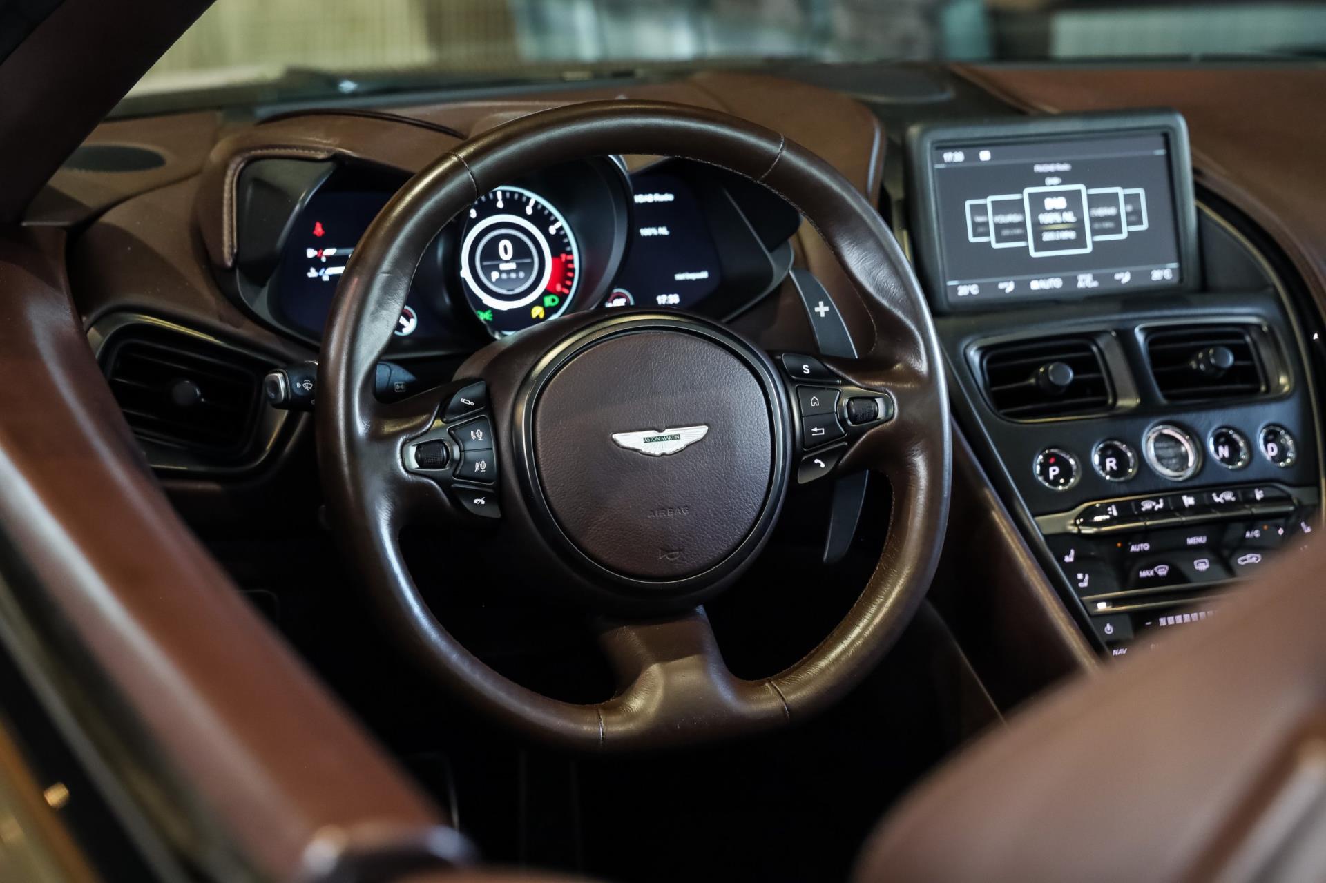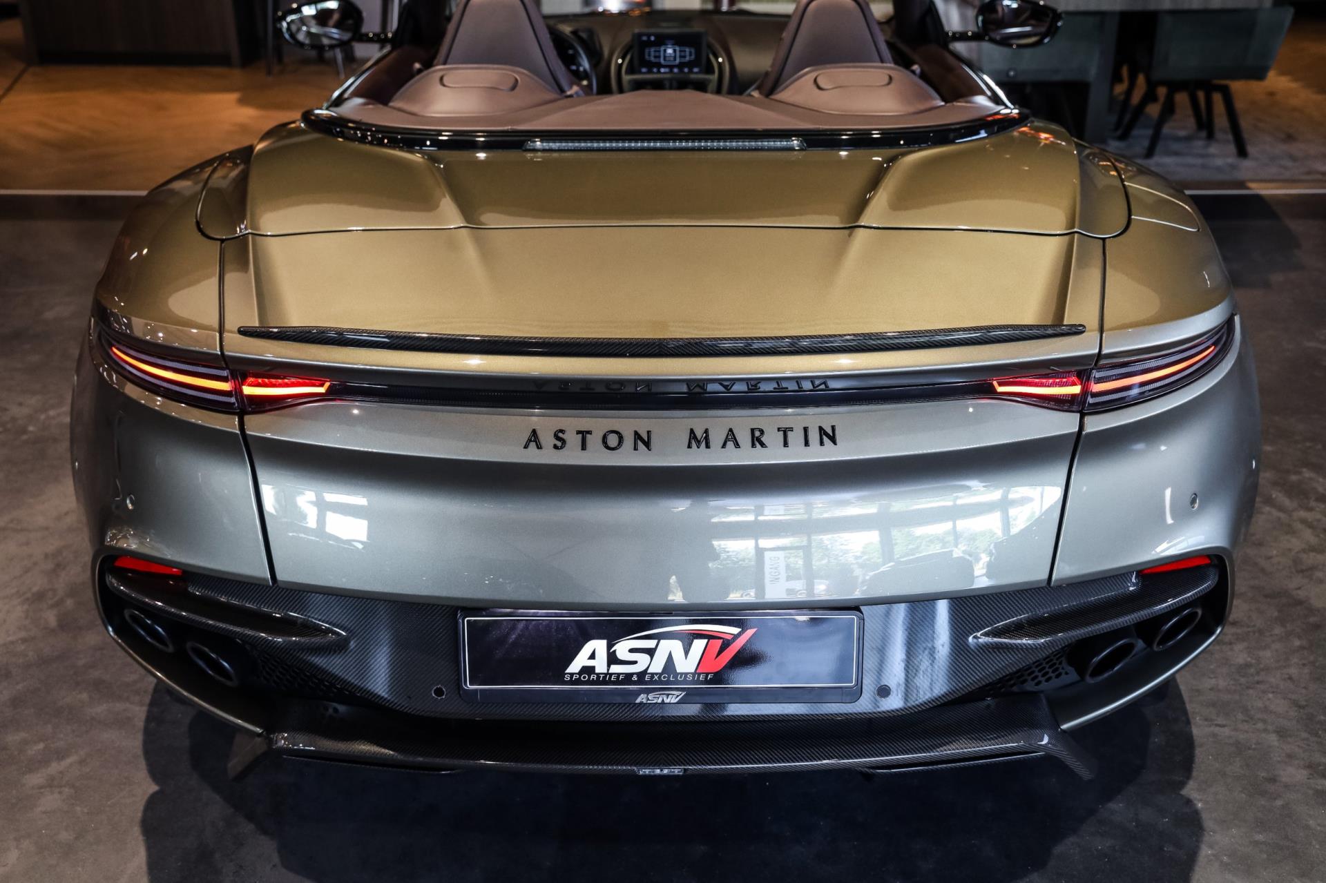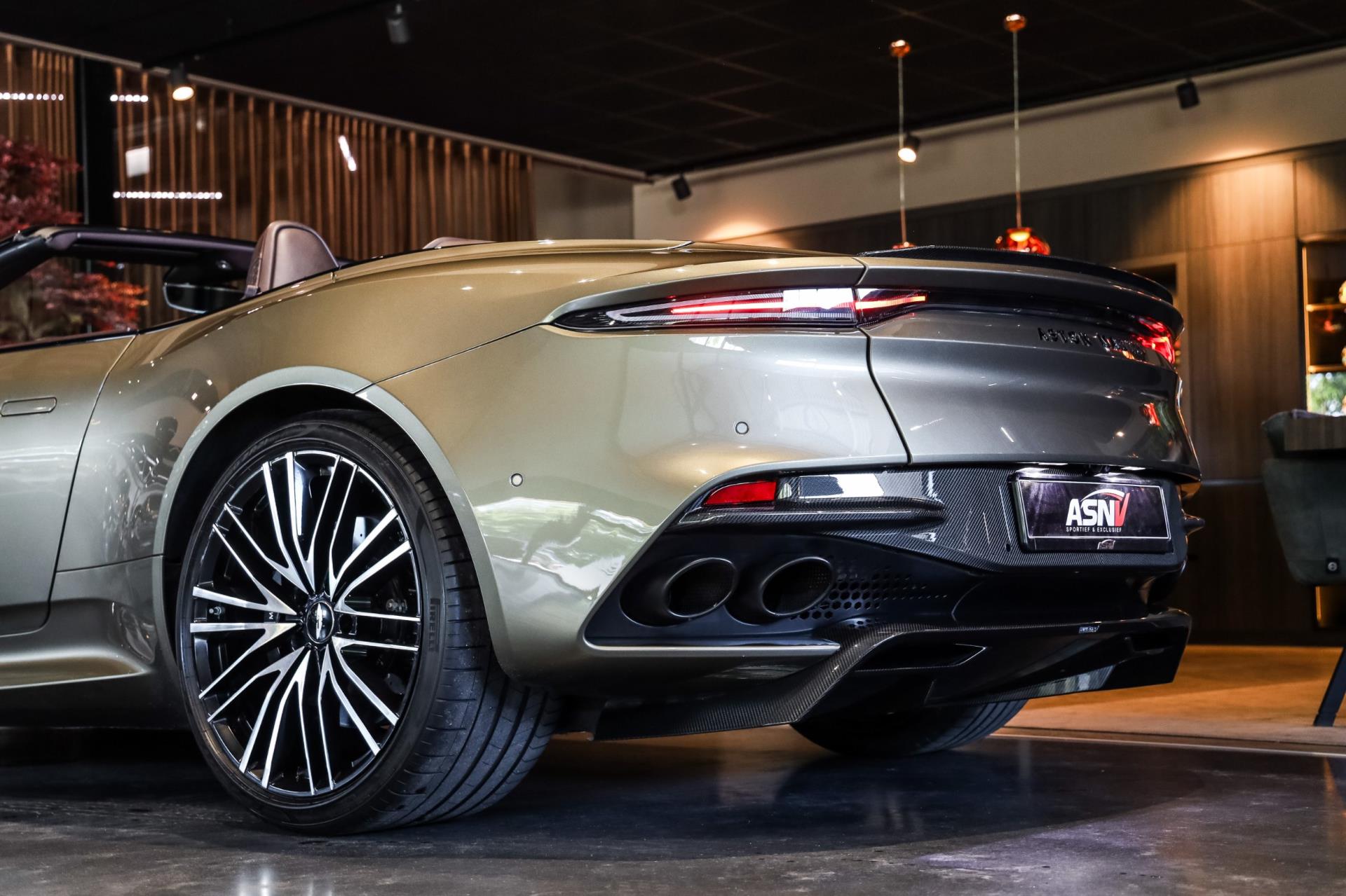 Het exemplaar wat wij u hier mogen tonen is zeer exclusief uitgevoerd. Vooral bij een Volante is het belangrijk dat exterieur en interieur perfect met elkaar matchen. Dat is bij deze Aston zeer goed gelukt! Het Arde Green Metallic lakwerk vormt een fraai contrast met het Bitter Chocolate Leder. Extra fraai zijn de Bitter Chocolate stiksels, die weer een mooi geheel met het lakwerk vormen. En laten we ook de carbon details aan de binnen- & buitenkant niet vergeten!