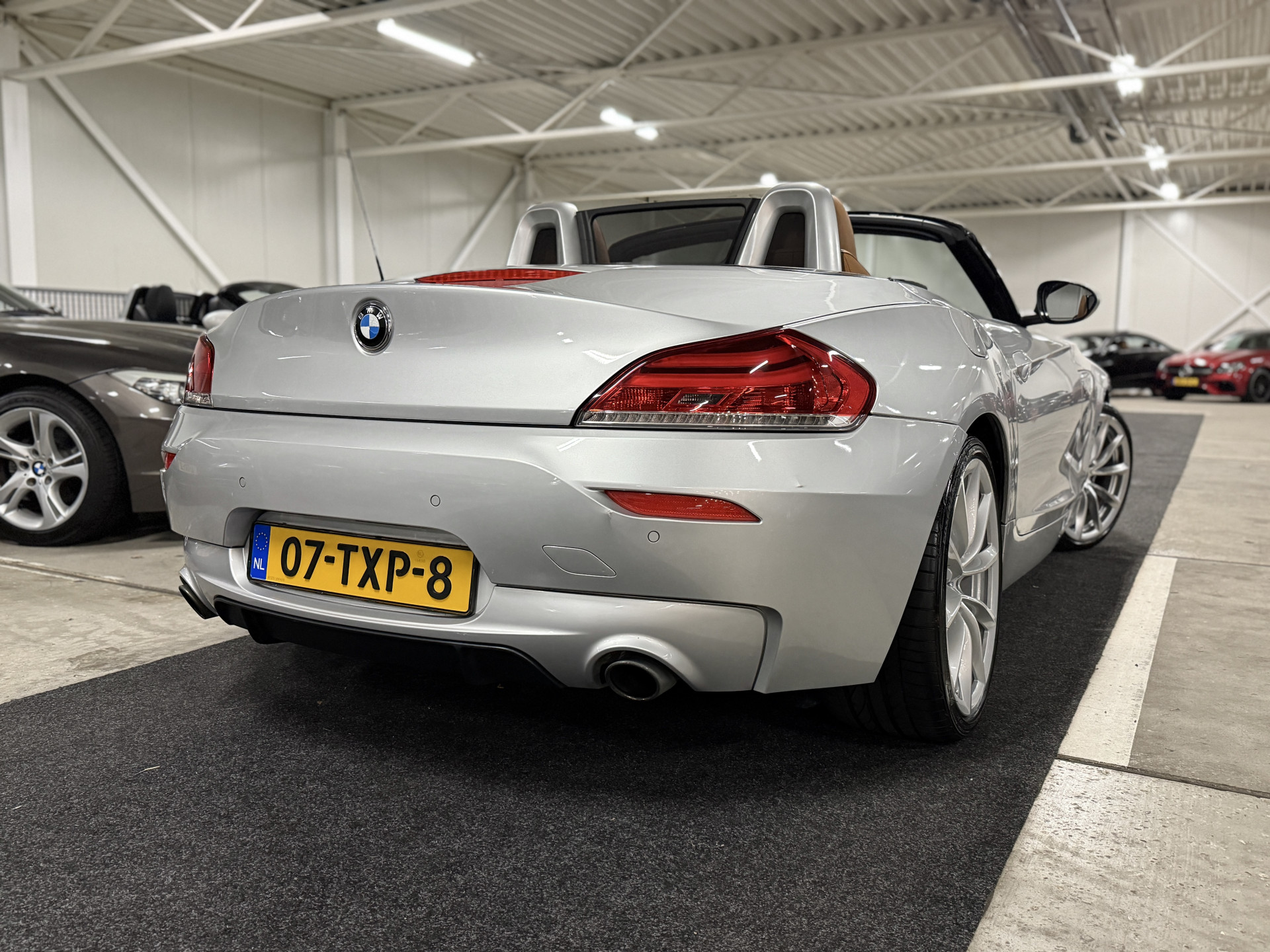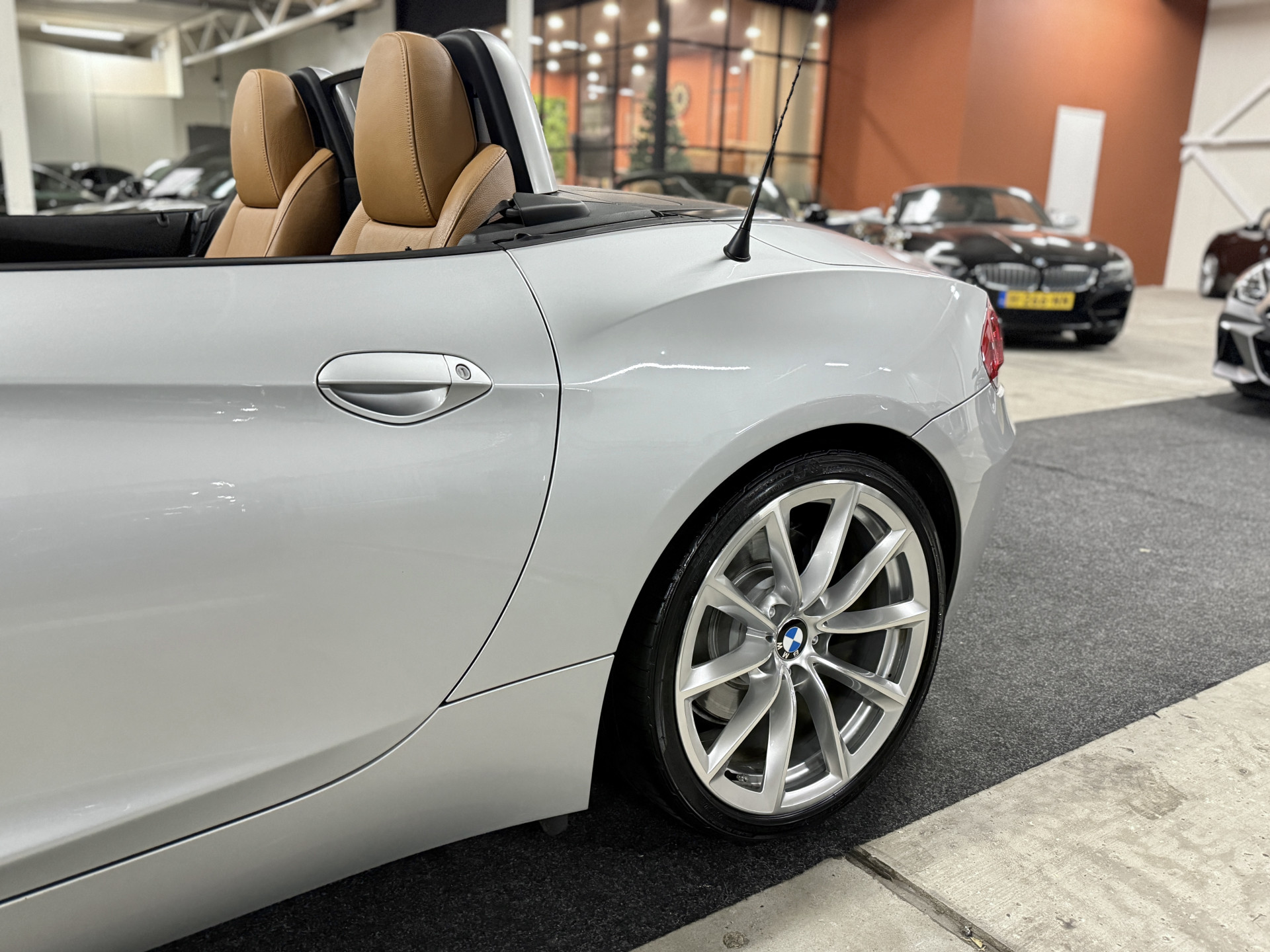 De kenmerkende signatuur komt uitermate krachtig tot zijn recht in deze configuratie. Obligate details uit het M-Aerodynamica pakket springen extra in het oog, dankzij het Titaanzilver metallic, in combinatie met de originele 19-inch breedset Styling 296, grote remmerij, brede achtersteven met twee uitlaatstukken en een diffusor in carrosseriekleur. Het hoogwaardige Kansas 'Walnut'-leder in combinatie met de zwarte dakhemel, het dikke M-Sportstuurwiel en de 'Carbon Shadow'-inleg onderstrepen het unieke karakter. Door de winterharde vouwdak-constructie combineert deze E89-generatie het rijplezier van een Roadster met de bruikbaarheid van een Coupé.