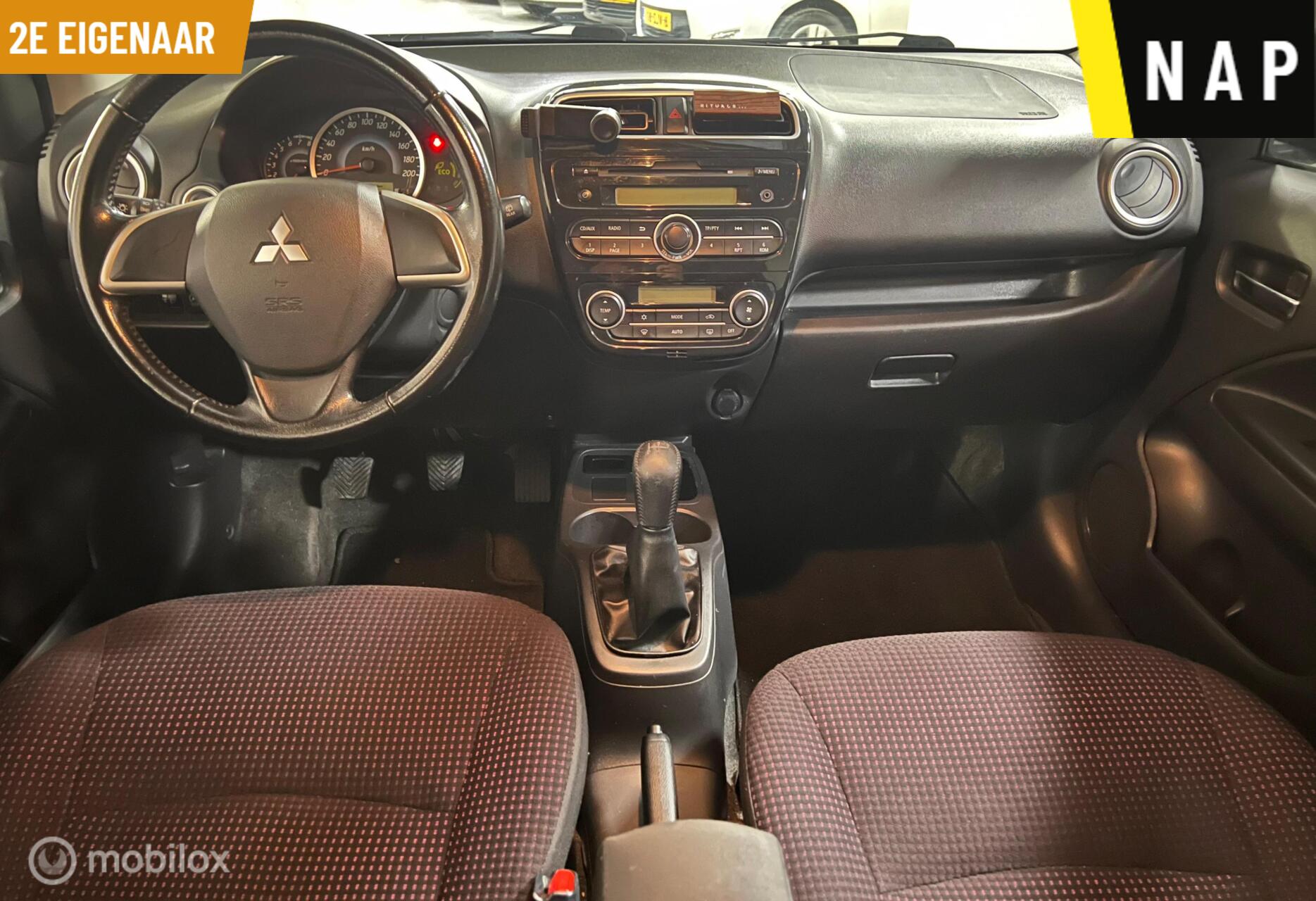 Mitsubishi Space Star 1.0 Intense – Zeer nette auto | Airco | Keyless Start | NAP | 2e eigenaar | Meer informatieAlgemene informatieMerk: MitsubishiModel: Space Star Type: 1.0 Intense Modelcode: II Technische informatieKoppel: 88 NmAandrijving: Voorwielaandrijving Topsnelheid: 172 km/u Maten en gewichtenLedig gewicht: 820 kgLaadvermogen: 470 kg Hoogte: 1490 cm Wielbasis: 245 cm StaatSchade: schadevrijAantal sleutels: 2 (2 handzenders) Financiële informatieMotorrijtuigenbelasting: € 67 - € 74 per kwartaal |
