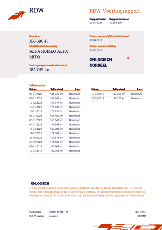 | Kilometerstand | 184.751 km |