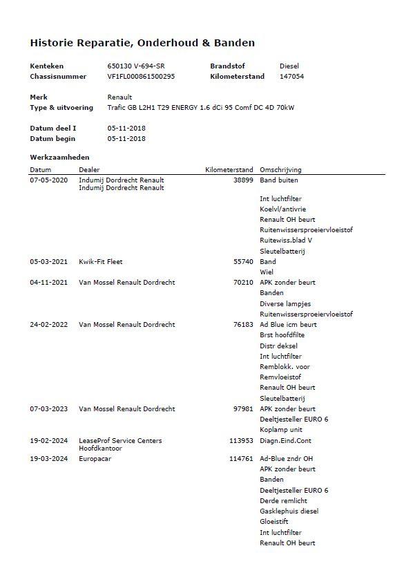 | Type | Renault Trafic 1.6 dCi T29 L2H1 DC Comfort Energy DUBBEL CABINE / AIRCO / CRUISE CONTROLE / NAVI / TREKHAAK |