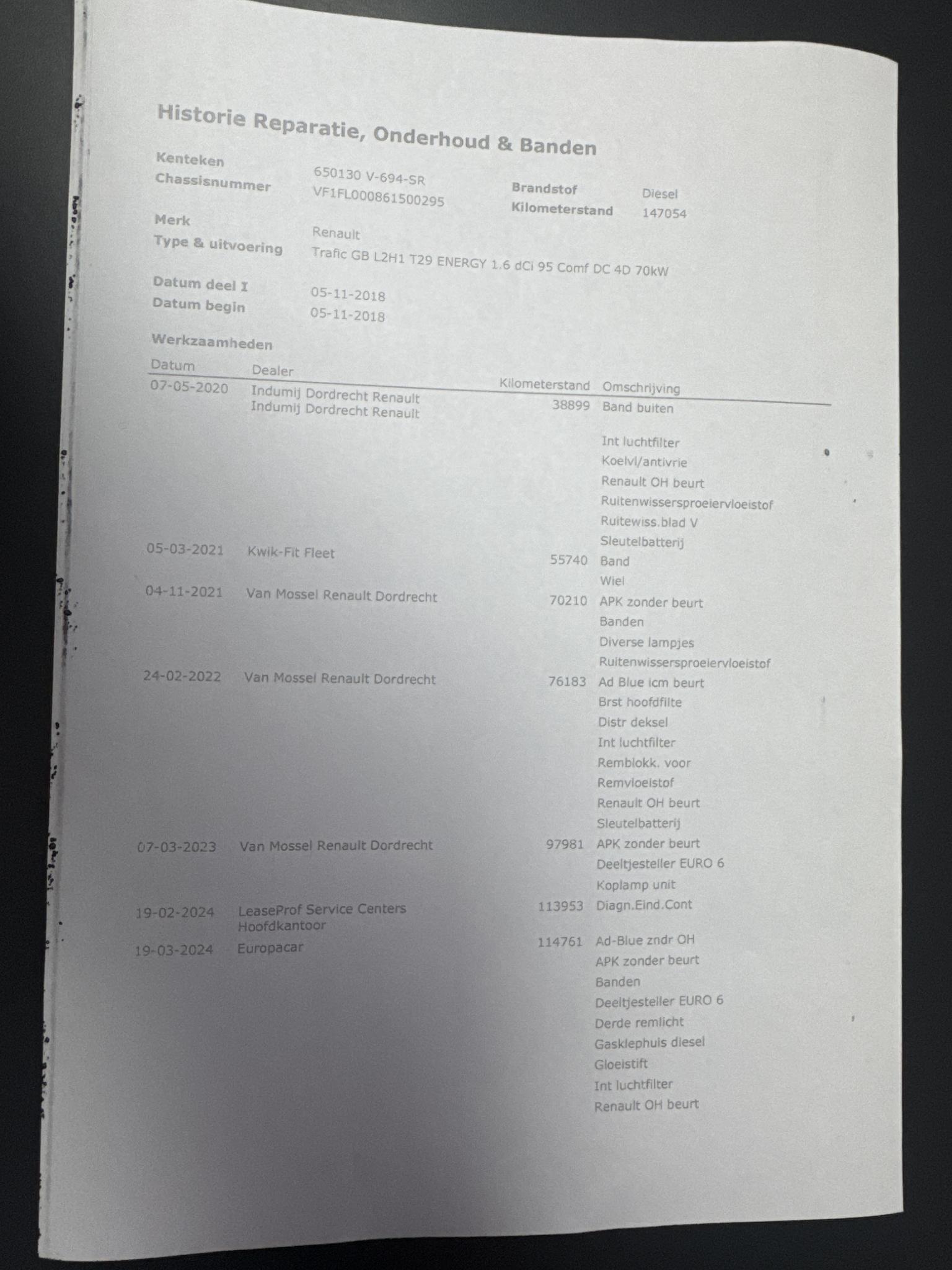 Met zijn dynamische eigenschappen belooft deze Renault Trafic u een heleboel rijplezier. Hij is ontwikkeld op een geavanceerd onderstel en biedt altijd een veilig weggedrag. Deze goed onderhouden auto is van de eerste eigenaar, voorzien van Airco, Cruise Controle & Navigatie Meer informatieAlgemene informatieMerk: RenaultModel: Trafic Type: 1.6 dCi T29 L2H1 DC Comfort Energy Modelreeks: 2014 - 2019 Technische informatieKoppel: 260 NmAandrijving: Voorwielaandrijving Tankinhoud: 80 liter Acceleratie (0-100): 15,4 s Topsnelheid: 154 km/u MatenLengte/hoogte: L2H1Afmetingen (LxB): 540 x 196 cm Wielbasis: 350 cm GewichtenLedig gewicht: 1.875 kgLaadvermogen: 1.065 kg Max. trekgewicht: 2.000 kg (ongeremd 750 kg) MilieuCO₂-uitstoot (NEDC): 164 g/kmFijnstofuitstoot: 0,2 mg/km StaatTechnische staat: goedOptische staat: goed Staat interieur: goed Aantal sleutels: 1 (1 handzender) Financiële informatieMotorrijtuigenbelasting: € 169 per kwartaalAfleverpakkettenInbegrepen afleverpakket: BasispakketDit afleverpakket bevat: Geldige APK, RDW-leges ProductveiligheidEU verantwoordelijke: Renault Nederland N.V. Postbus 75784 1118 ZX Schiphol-Rijk, NL 020-3549111 www.renault.nl klantenservice@renault.nlOverige informatieAirconditioning: werktStoringsmelding: Nee |