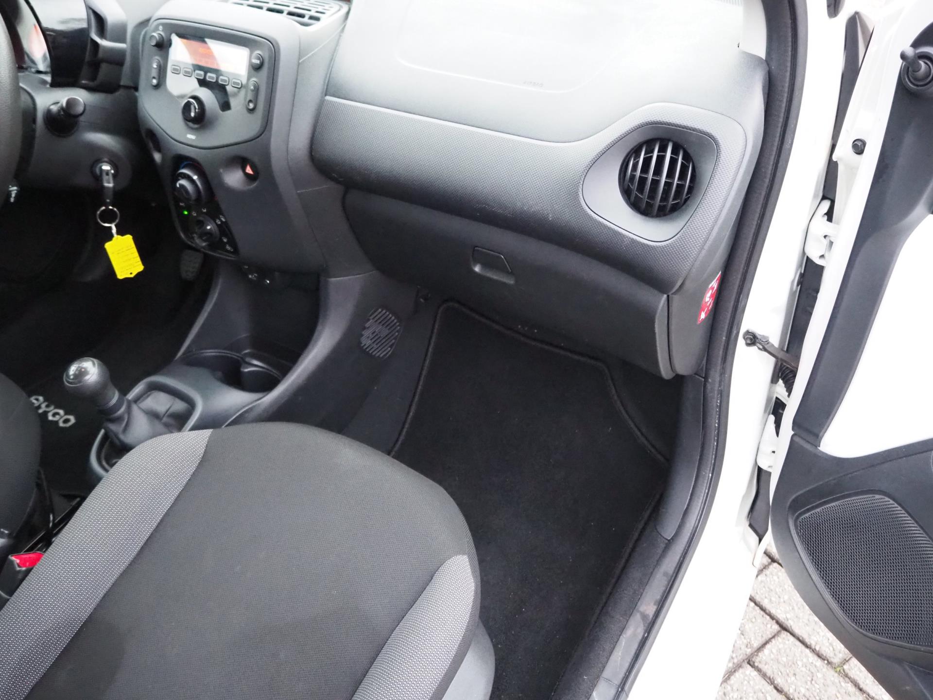 Deze auto komt in aanmerking voor de volgende Autotrust pakketten: Meer informatieAlgemene informatieMerk: ToyotaModel: Aygo Type: 1.0 VVT-i x-fun Technische informatieAandrijving: VoorwielaandrijvingAcceleratie (0-100): 14,3 s Topsnelheid: 160 km/u Maten en gewichtenLedig gewicht: 815 kgLaadvermogen: 425 kg Wielbasis: 234 cm Onderhoud, historie en staatOnderhoudsboekjes: Aanwezig (dealer onderhouden)Aantal sleutels: 2 (1 handzender) Financiële informatieMotorrijtuigenbelasting: € 70 - € 76 per kwartaalAfleverpakkettenOptioneel afleverpakket (€ 365): Afleverpakket (1): Rij klaarmaak kosten. |