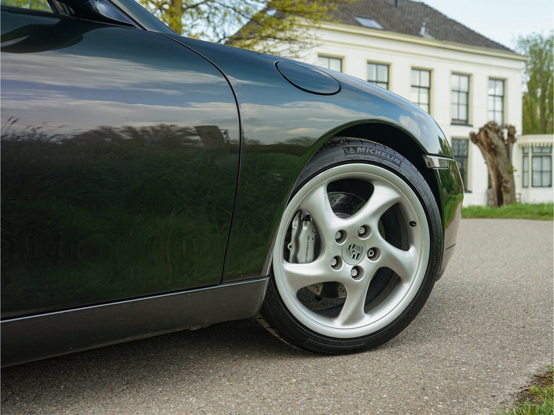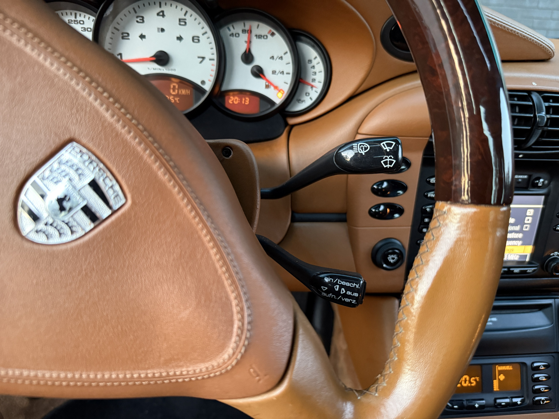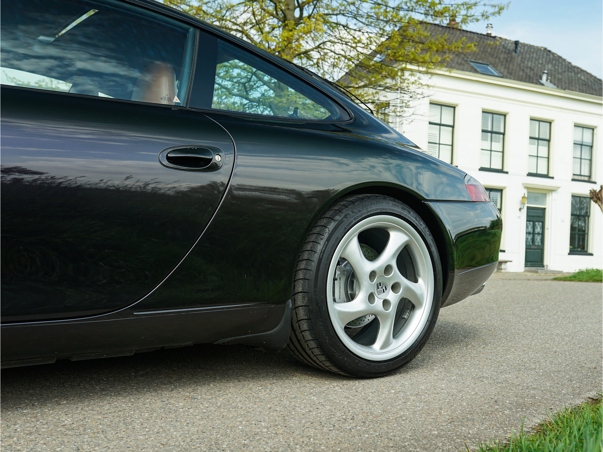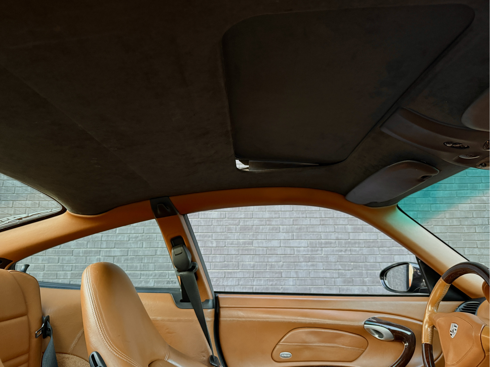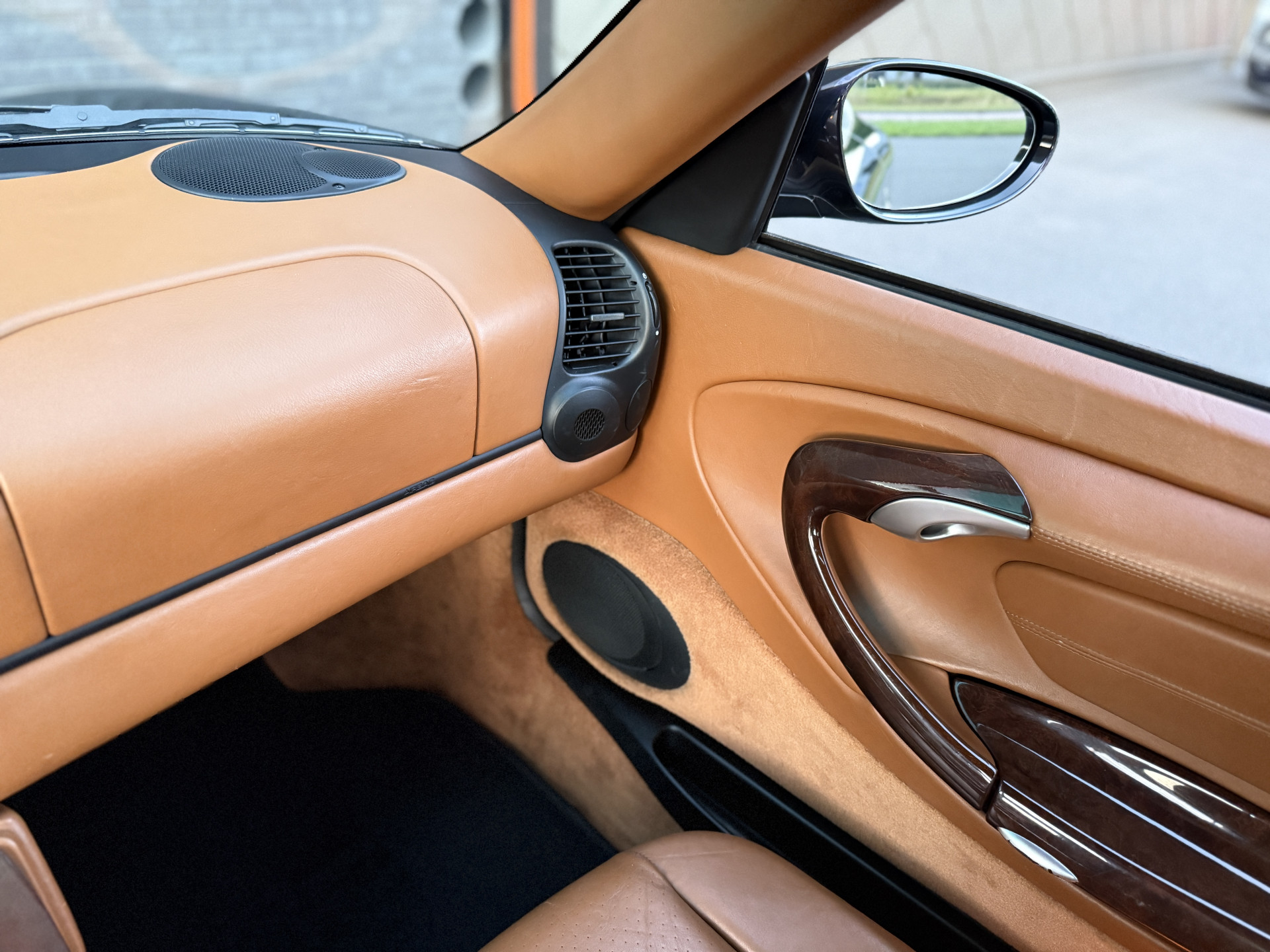 Afhankelijk van de lichtinval verandert de exterieurkleur van dieppaars naar groen, wat een magisch effect creëert. De breedset 18" Turbo 'Solid Spoke'-velgen vullen de wielkasten goed op en waren af-fabriek verchroomd, maar de huidige aluminium-kleur is gebruiksvriendelijker. In tegenstelling tot de 90's zijn de knipperlichten rondom transparant van kleur en oogt het model moderner door de xenon-koplampen, zilveren remklauwen en verchroomd edelstalen eindpijpen. In het interieur treffen we louter hoogwaardige materialen en véél Natuurleder, waarmee o.a. de stuurkolom, ventilatie-openingen, handgrepen, telefoonhouder, middenconsole, het dashboard en instrumentarium zijn bekleed. Contrast is te vinden in de aluminium wijzerplaten, alcantara dakhemel en aluminium / donker wortelhout / leder-afwerking van de versnellingspook, handremgreep en het stuurwiel.