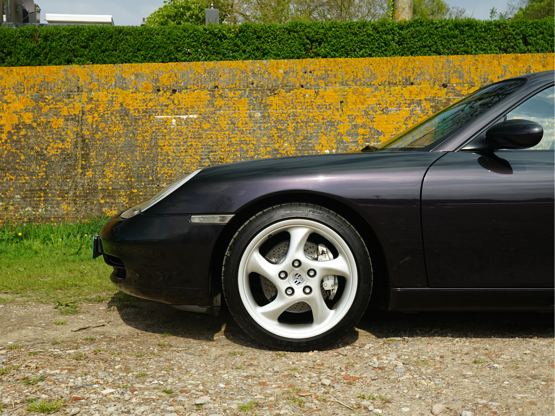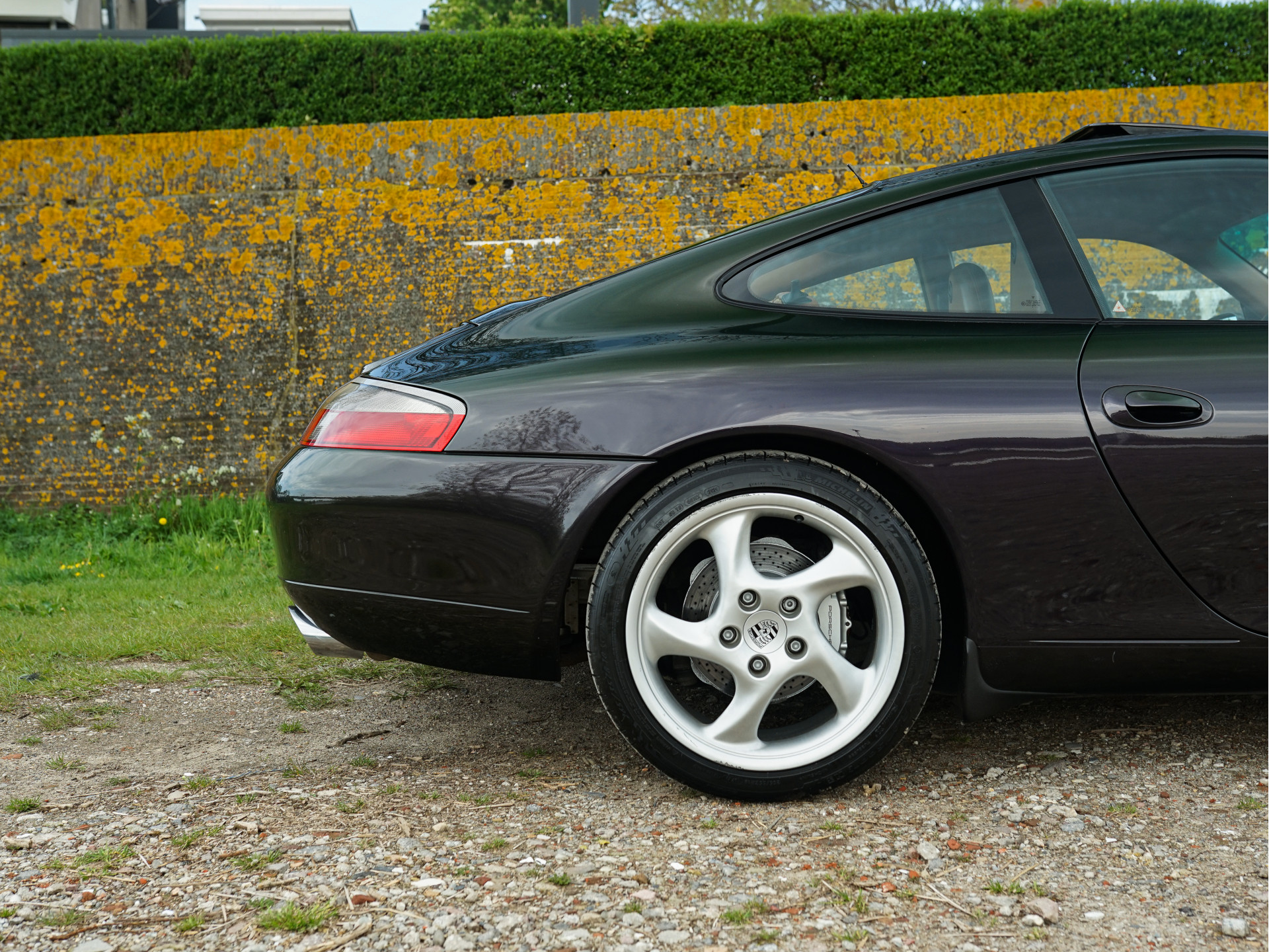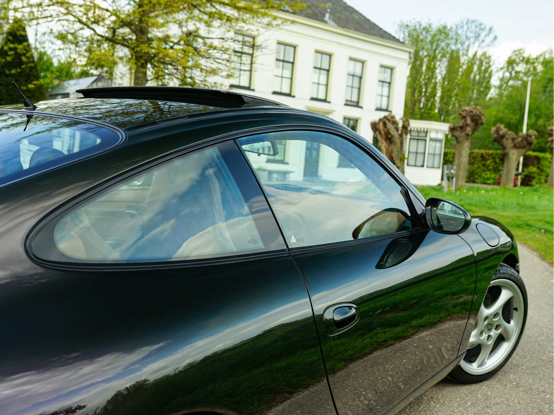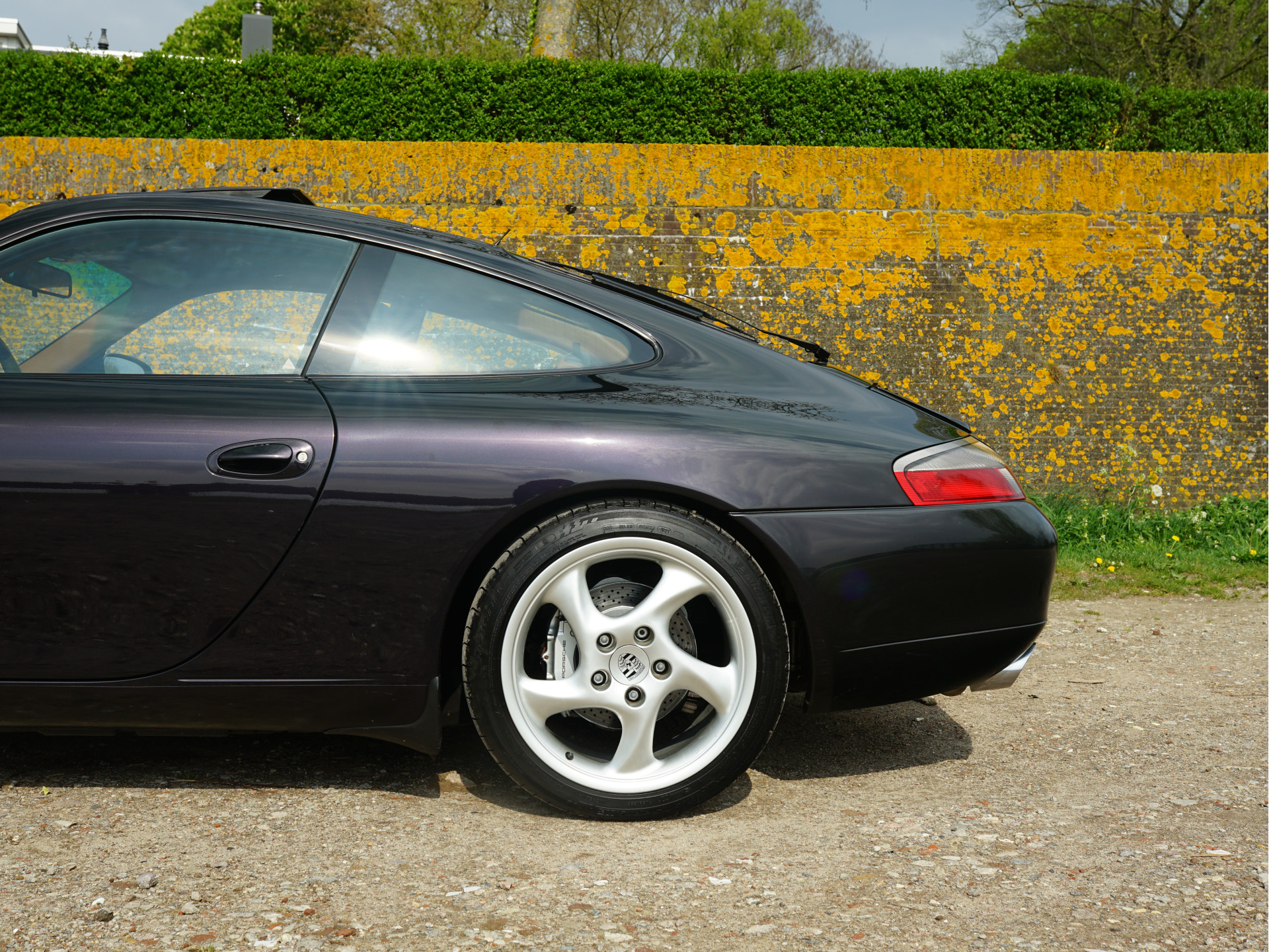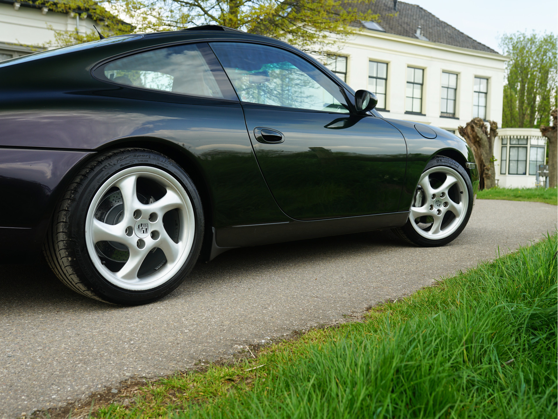 Afhankelijk van de lichtinval verandert de exterieurkleur van dieppaars naar groen, wat een magisch effect creëert. De breedset 18" Turbo 'Solid Spoke'-velgen vullen de wielkasten goed op en waren af-fabriek verchroomd, maar de huidige aluminium-kleur is gebruiksvriendelijker. In tegenstelling tot de 90's zijn de knipperlichten rondom transparant van kleur en oogt het model moderner door de xenon-koplampen, zilveren remklauwen en verchroomd edelstalen eindpijpen. In het interieur treffen we louter hoogwaardige materialen en véél Natuurleder, waarmee o.a. de stuurkolom, ventilatie-openingen, handgrepen, telefoonhouder, middenconsole, het dashboard en instrumentarium zijn bekleed. Contrast is te vinden in de aluminium wijzerplaten, alcantara dakhemel en aluminium / donker wortelhout / leder-afwerking van de versnellingspook, handremgreep en het stuurwiel.