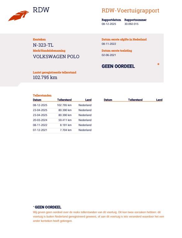 Algemene informatieMerk: VolkswagenModel: Polo Type: 1.0 TSI Highline | PDC | Bluetooth |APP Connect | Technische informatieAandrijving: VoorwielaandrijvingAcceleratie (0-100): 10,8 s Topsnelheid: 187 km/u MatenWielbasis: 255 cmGewichtenLedig gewicht: 1.063 kgLaadvermogen: 557 kg Max. trekgewicht: 1.000 kg (ongeremd 580 kg) StaatAantal sleutels: 2 (1 handzender)Financiële informatieMotorrijtuigenbelasting: € 145 - € 158 per kwartaalBeschikbare afleverpakketten:[list][*]Basis service pakket: (inbegrepen): Het basis service pakket omvat: aflevering van de door u aangeschafte occasion inclusief een geldige APK , een algehele inspectie, vloeistoffen afvullen en coulance bij onvoorziene defecten gedurende 3 maanden na aanschaf.[*]Borgauto 3 maanden pakket (voertuigen 950 kg > ) (€ 495 meerprijs): Dit aflever pakket omvat: aflevering van de door u aangeschafte occasion inclusief een nieuwe APK, 3 maanden garantie, een algehele inspectie en een onderhoudsbeurt volgens onderhoudsschema.Dit afleverpakket bevat (in plaats van afleverpakket "Basis service pakket:"): BOVAG garantie (3 maanden)[*]Borgauto 6 maanden pakket (voertuigen 950 kg >) (€ 795 meerprijs): Dit aflever pakket omvat: aflevering van de door u aangeschafte occasion inclusief een nieuwe APK, 6 maanden garantie, een algehele inspectie en een onderhoudsbeurt volgens onderhoudsschema. Dit afleverpakket bevat (in plaats van afleverpakket "Basis service pakket:"): BOVAG garantie (6 maanden)[*]Bovag garantie 12 maanden garantie pakket (voertuigen 950 kg >) (€ 995 meerprijs): Dit aflever pakket omvat: aflevering van de door u aangeschafte occasion inclusief een nieuwe APK, 12 maanden Bovag garantie, een algehele inspectie, onderhoudsbeurt volgens onderhoudsschema en tenaamstelling van het voertuig. Dit afleverpakket bevat (in plaats van afleverpakket "Basis service pakket:"): BOVAG garantie (12 maanden)[/list] |