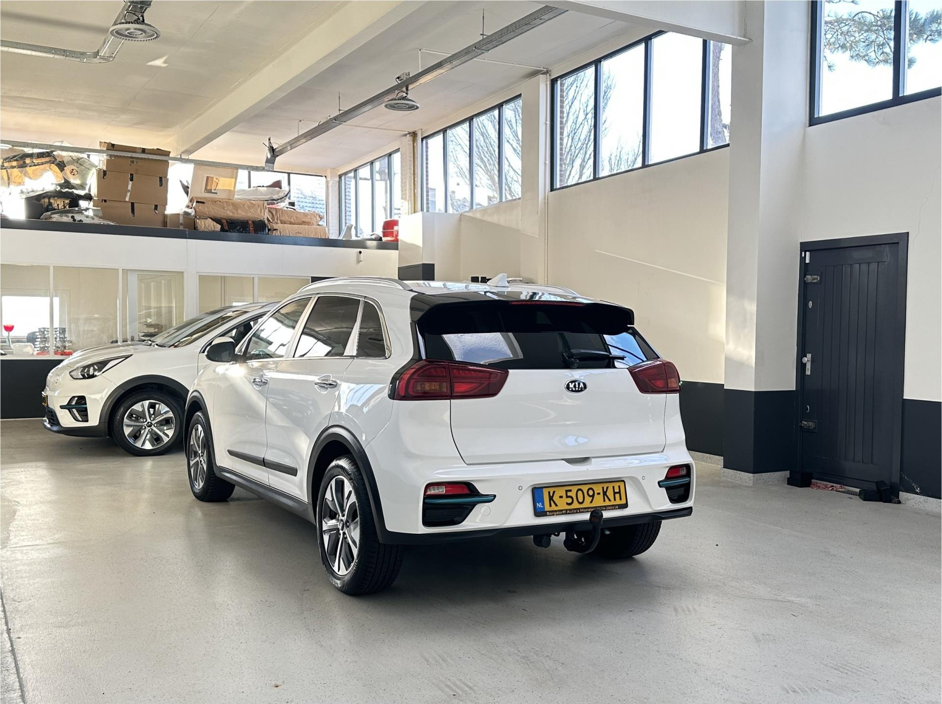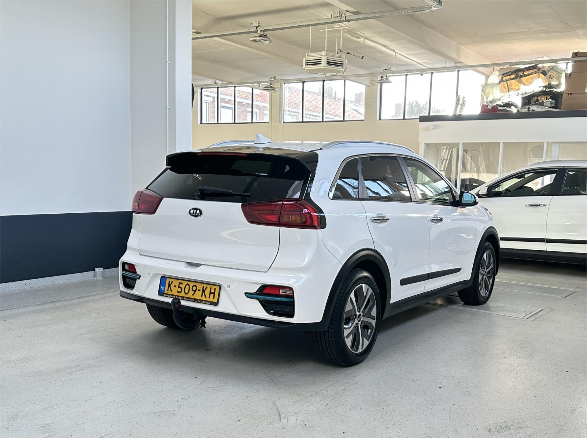 Algemene informatieMerk: KiaModel: E-Niro Type: ExecutiveLine 64 kWh | 3 Fase |Carplay/ Android Auto | JBL | Camera | lederen bekleding | Navigatie | NL | 1 Eig | AandrijvingActieradius: 455 kmAsconfiguratieAandrijving: VoorwielaandrijvingBandenmaat: 215/55 R17 PrestatiesAcceleratie (0-100): 7,8 sTopsnelheid: 167 km/u MatenAfmetingen (LxBxH): 438 x 181 x 157 cmWielbasis: 270 cm GewichtenLedig gewicht: 1.712 kgLaadvermogen: 518 kg Max. trekgewicht: 300 kg (ongeremd 300 kg) AccuAccu: 64 kWhAccu laden: Type 2, 1-fase, 7.2 kW, 53 km actieradius per uur, compleet vol in 17 uur en 46 minuten Accu snelladen: Combined Charging System, 463 km actieradius per uur, compleet vol in 2 uur en 54 minuten VerbruikGemiddeld elektriciteitsverbruik: 14,065934065934 kWh/100kmOnderhoud, historie en staat100% Onderhouden: Ja (kwaliteitslabel aanwezig)Aantal sleutels: 2 (2 handzenders) Financiële informatieMotorrijtuigenbelasting: € 214 - € 234 per kwartaalBeschikbare afleverpakketten:[list][*]Basis service pakket: (inbegrepen): Het basis service pakket omvat: aflevering van de door u aangeschafte occasion inclusief een geldige APK , een algehele inspectie, vloeistoffen afvullen en coulance bij onvoorziene defecten gedurende 3 maanden na aanschaf.[*]Borgauto 3 maanden pakket (voertuigen 950 kg > ) (€ 495 meerprijs): Dit aflever pakket omvat: aflevering van de door u aangeschafte occasion inclusief een nieuwe APK, 3 maanden garantie, een algehele inspectie en een onderhoudsbeurt volgens onderhoudsschema.Dit afleverpakket bevat (in plaats van afleverpakket "Basis service pakket:"): BOVAG garantie (3 maanden)[*]Borgauto 6 maanden pakket (voertuigen 950 kg >) (€ 795 meerprijs): Dit aflever pakket omvat: aflevering van de door u aangeschafte occasion inclusief een nieuwe APK, 6 maanden garantie, een algehele inspectie en een onderhoudsbeurt volgens onderhoudsschema. Dit afleverpakket bevat (in plaats van afleverpakket "Basis service pakket:"): BOVAG garantie (6 maanden)[*]Bovag garantie 12 maanden garantie pakket (voertuigen 950 kg >) (€ 995 meerprijs): Dit aflever pakket omvat: aflevering van de door u aangeschafte occasion inclusief een nieuwe APK, 12 maanden Bovag garantie, een algehele inspectie, onderhoudsbeurt volgens onderhoudsschema en tenaamstelling van het voertuig. Dit afleverpakket bevat (in plaats van afleverpakket "Basis service pakket:"): BOVAG garantie (12 maanden)[/list] Overige informatieEmissie: Zero emissie |