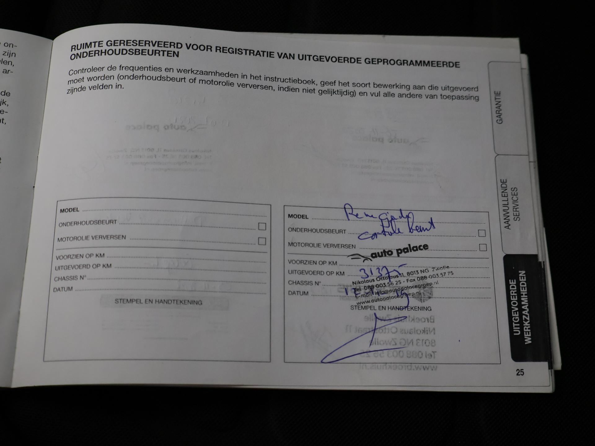 Origineel Nederlandse auto van 11-2016, 1.4 MultiAir 140 PK Turbo Automaat, Limited uitvoering, Granite Crystal metallic, Navigatie, Trekhaak, Climate control, Leder stuurwiel, Cruise control, Privacy glass, Bluetooth met audiostreaming. Meer informatieAlgemene informatieMerk: JeepModel: Renegade Type: 1.4 MULTIAIR 140 PK AUT. LIMITED Modelreeks: 2014 - 2018 Technische informatieKoppel: 230 NmAandrijving: Voorwielaandrijving Tankinhoud: 48 liter Acceleratie (0-100): 11,0 s Topsnelheid: 181 km/u MatenAfmetingen (LxB): 426 x 181 cmWielbasis: 257 cm GewichtenLedig gewicht: 1.295 kgLaadvermogen: 585 kg Max. trekgewicht: 1.200 kg (ongeremd 600 kg) MilieuCO₂-uitstoot (NEDC): 137 g/kmFinanciële informatieMotorrijtuigenbelasting: € 199 - € 217 per kwartaalBeschikbare afleverpakketten:[list][*]Basispakket (inbegrepen):Vloeistofcheck Kenteken tenaamstelling Schoonmaken [*]Servicepakket 1 (€ 495 meerprijs): Olie servicebeurt incl. filter Schoonmaken Dit afleverpakket bevat (in plaats van afleverpakket "Basispakket"): Hazet garantie 3 maanden (3 maanden garantie); Nieuwe APK[*]Servicepakket 2 (€ 695 meerprijs): Onderhoudsbeurt volgens schema Schoonmaken Dit afleverpakket bevat (in plaats van afleverpakket "Basispakket"): Hazet garantie 6 maanden (6 maanden garantie, 10.000 km garantie); Nieuwe APK[*]Servicepakket 3 (€ 995 meerprijs): Onderhoudsbeurt volgens schema Poetsen, polijsten en interieur reiniging Dit afleverpakket bevat (in plaats van afleverpakket "Basispakket"): BOVAG garantie (12 maanden); Nieuwe APK[/list] ProductveiligheidEU verantwoordelijke: Stellantis Jeep Lemelerbergweg 12 1101 AJ Amsterdam, NL 0882012700 www.jeep.nl info@jeep.nl |