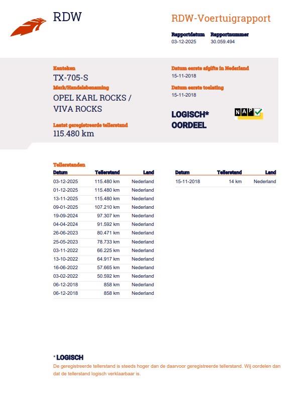 | Type | Opel KARL 1.0 Rocks Online Edition | PDC | Navigatie | Apple Carplay/ Android Auto | NL | 1 Eig | |