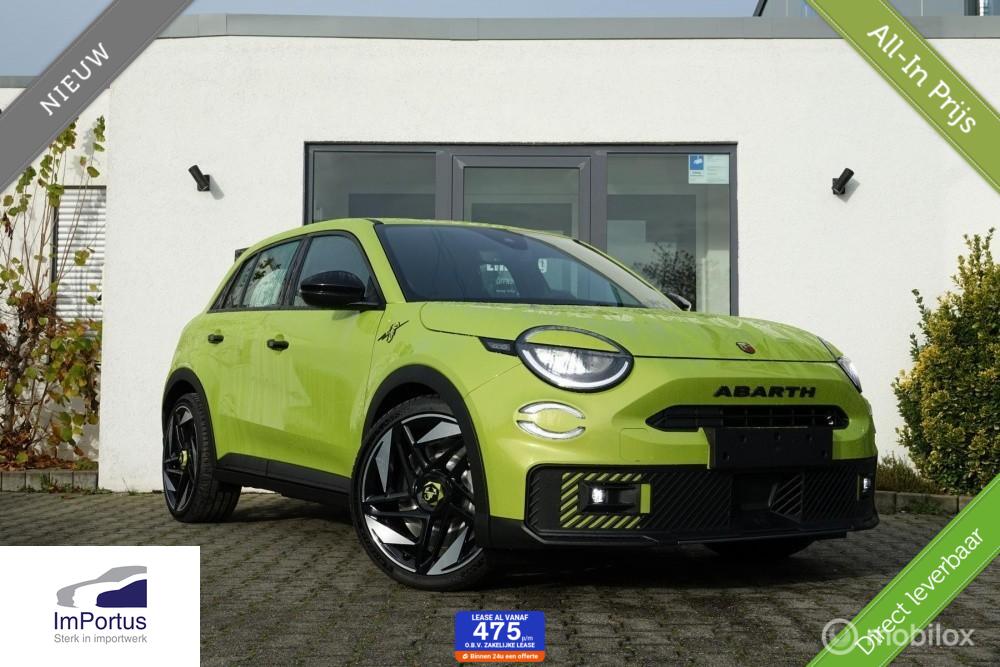 Nieuwe Abarth 600e Turismo in ‘Acid Green’ Meer informatieAlgemene informatieMerk: AbarthModel: 600e Type: Turismo 54 kWh Technische informatieKoppel: 345 NmLedig gewicht: 1.600 kg AandrijvingActieradius: 334 kmAsconfiguratieAandrijving: VoorwielaandrijvingPrestatiesTopsnelheid: 200 km/uAccuAccu: 54 kWh, Conditie: 100%Accu laden: Type 2 Accu snelladen: nee StaatSchade: schadevrijFinanciële informatieMotorrijtuigenbelasting: € 196 - € 214 per kwartaalGarantieFabrieksgarantie: 24 maandenAfleverpakkettenOptioneel afleverpakket (zonder meerprijs): Fabrieksgarantie 2 jaar: Fabrieksgarantie 2 jaar |