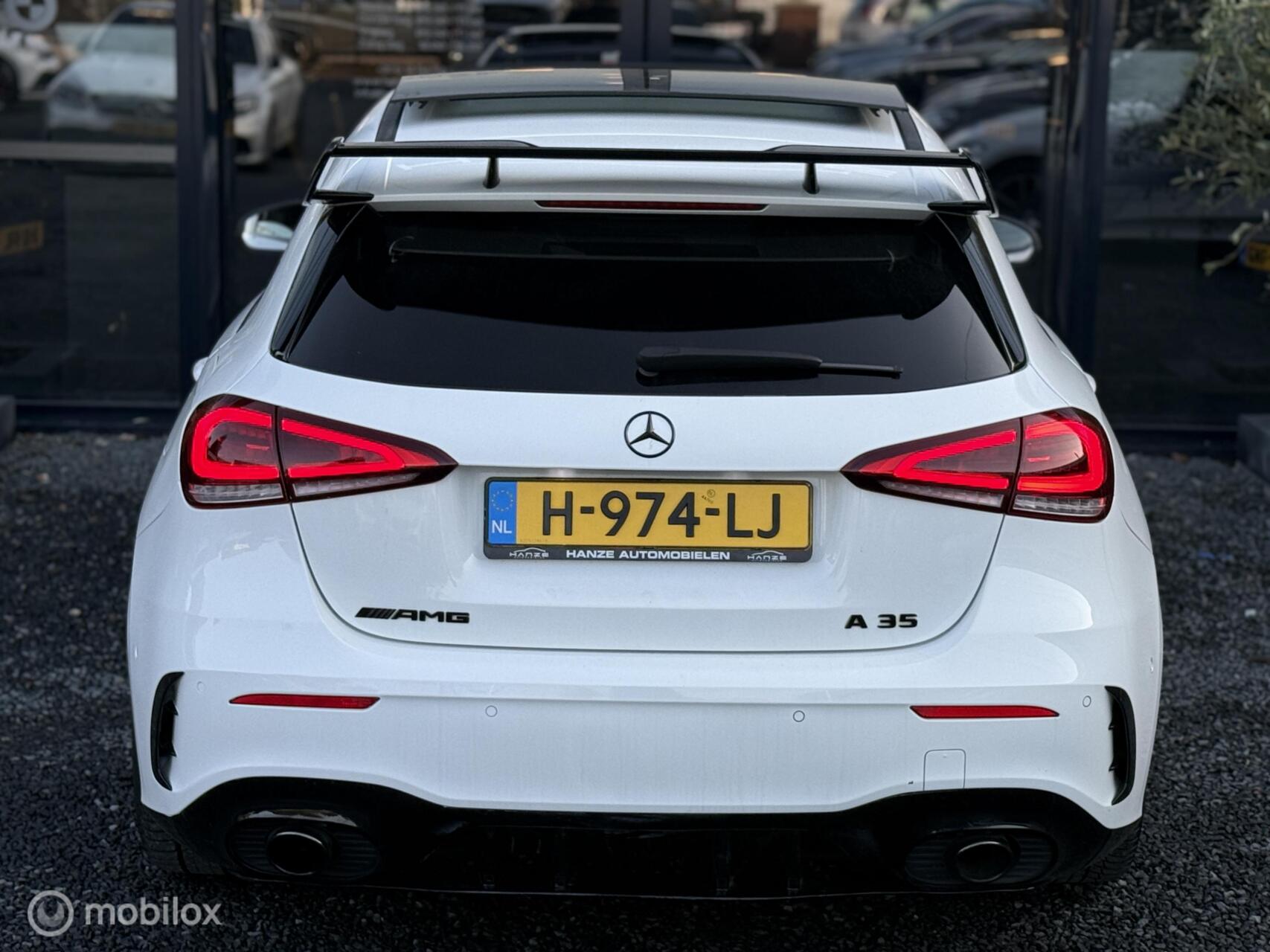 Mercedes A35 AMG 4MATIC Premium Plus|Pano|Sfeer|ACC|Lane| [list][*]Kenteken: H-974-LJ[*]Merk: Mercedes[*]Model: A-klasse[*]APK tot: 27-05-2027[*]Tellerstand: 134978 KM[*]Carrosserievorm: Hatchback[*]Aantal deuren: 5[*]Brandstofsoort: Benzine[*]Bouwjaar: 2019[*]Transmissie: Automaat[*]Kleur: wit[*]Motorinhoud: 1991 cc[*]Aantal cilinders: 4[*]Motorcode: 260920[*]Vermogen: 225 kW / 306pk[*]Ledig gewicht: 1455 kg[*]Max. trekgewicht: 2000 kg[*]Aantal zitplaatsen: 5[*]Verbruik: 7.3 l/100 km[*]BTW/Marge: Marge, de BTW is niet aftrekbaar[*]Breedte: 180 cm[*]Motorrijtuigenbelasting: € 253 - 276 per kwartaal[*]Emissieklasse: Euro 6[/list] Pakket: AMG Nightpakket[list][*]Getint warmtewerend glas[/list]Pakket: Night pakket[list][*]Buitenspiegels in andere kleur[*]Extra getint glas achter[*]Getint warmtewerend glas[*]Warmtewerend glas[/list]Pakket: Rijassistentiepakket[list][*]Achteruitrij assistent[*]Bots herkenning en activatie[*]Cruise control adaptief met Stop&Go en stuurhulp[*]Dodehoekdetectie met correctie[*]Kruisend verkeer detectie[*]Uitwijk assistent[/list]Comfort[list][*]Cruise control[*]Regensensor[/list]Exterieur[list][*]AMG-styling[*]Achterruitwisser[*]Adaptief demping systeem[*]Automatisch parkeren[*]Buitenspiegel rechts[*]Buitenspiegel(s) automatisch dimmend[*]Buitenspiegels elektrisch inklapbaar[*]Buitenspiegels elektrisch verstelbaar[*]Buitenspiegels verwarmbaar[*]Centrale vergrendeling[*]Chroom delen exterieur[*]Dakspoiler[*]Dimlichten automatisch[*]Elektrisch glazen panorama-dak[*]Extra getint glas achter[*]Getint glas[*]Getint warmtewerend glas[*]Glazen schuifdak[*]Keyless entry[*]Kleur wit[*]Koplampreiniging[*]LED dagrijverlichting[*]Lichtmetalen velgen 18"[*]Matrix LED koplampen[*]Panoramadak[*]Park Distance Control[*]Parkeer assistent[*]Parkeersensor voor en achter[*]Side-skirts[*]Sportonderstel[*]Sportvelgen[*]Verlaagde carrosserie[*]Virtual cockpit[*]Warmtewerend glas[/list]Infotainment[list][*]Audio installatie[*]Audio installatie premium[*]DAB[*]Multimedia-voorbereiding[*]Navigatiesysteem full map + hard disk[*]Radio[*]Radio CD speler[*]Radio-CD/MP3 speler[*]Spraakbediening[*]Stuur multifunctioneel[*]WiFi[/list]Interieur[list][*]Achterbank in delen neerklapbaar[*]Airco[*]Airco automatisch[*]Aluminium interieur afwerking[*]Ambient lights[*]Armsteun achter[*]Armsteun voor[*]Bagage-scheidingsnet[*]Binnenspiegel automatisch dimmend[*]Electronic climate control[*]Elektrisch verstelbare stoel(en) met geheugen[*]Elektrische ramen voor[*]Elektrische ramen voor en achter[*]Interieur voorverwarming/(koeling)[*]Kunstlederen/stof bekleding[*]Lederen interieur[*]Lendesteun(en) verstelbaar[*]Middenarmsteun voor[*]Sportstoelen[*]Sportstuur[*]Stuur leder[*]Stuurbekrachtiging[*]Voorstoelen verwarmd[/list]Milieu[list][*]Start/stop systeem[/list]Overige[list][*]Achteruitrij assistent[*]Anti Blokkeer Systeem[*]Anti doorSlip Regeling[*]Apple Carplay/Android Auto[*]Autonomous Emergency Braking[*]Bestuurdersairbag[*]Bots herkenning en activatie[*]Bots waarschuwing systeem[*]Brake Assist System[*]Buitenspiegels in andere kleur[*]Connected services[*]Cruise control adaptief met Stop&Go en stuurhulp[*]Dodehoek detectie[*]Dodehoekdetectie met correctie[*]Elektronisch Stabiliteits Programma[*]Hoofd airbag(s) achter[*]Hoofd airbag(s) voor[*]Keyless start[*]Knie airbag(s)[*]Kruisend verkeer detectie[*]Matrix LED koplampen[*]Passagiersairbag[*]Rijstrooksensor met correctie[*]Sfeerverlichting[*]Uitwijk assistent[*]Variabele stuuroverbrenging[*]Volledig digitaal instrumentenpaneel[*]Zij airbag(s) voor[/list]Veiligheid[list][*]Achteruitrijcamera[*]Alarm klasse 1(startblokkering)[*]Bandenspanningscontrolesysteem[*]Grootlichtassistent[*]Isofix bevestiging voor kinderzitjes[*]Verkeersbord detectie[/list]
