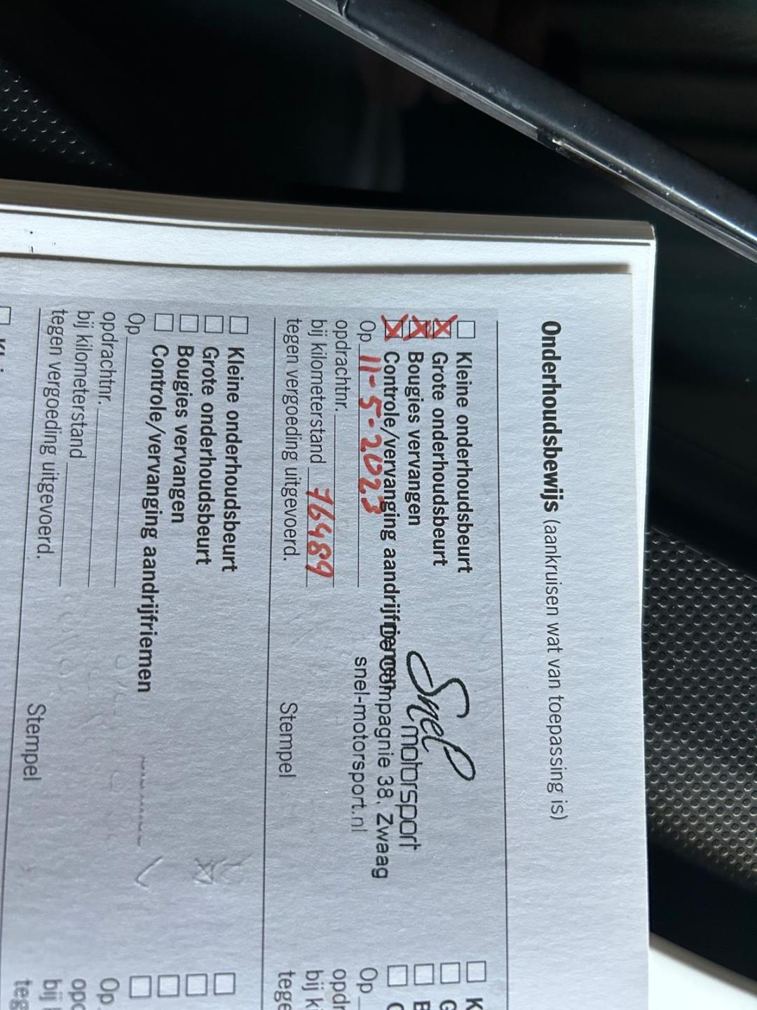 Recent onderhoud is uitgevoerd op de onderstaande data en kilometerstand: Zie bijgevoegde foto's (juiste volgt bij binnenkomst).