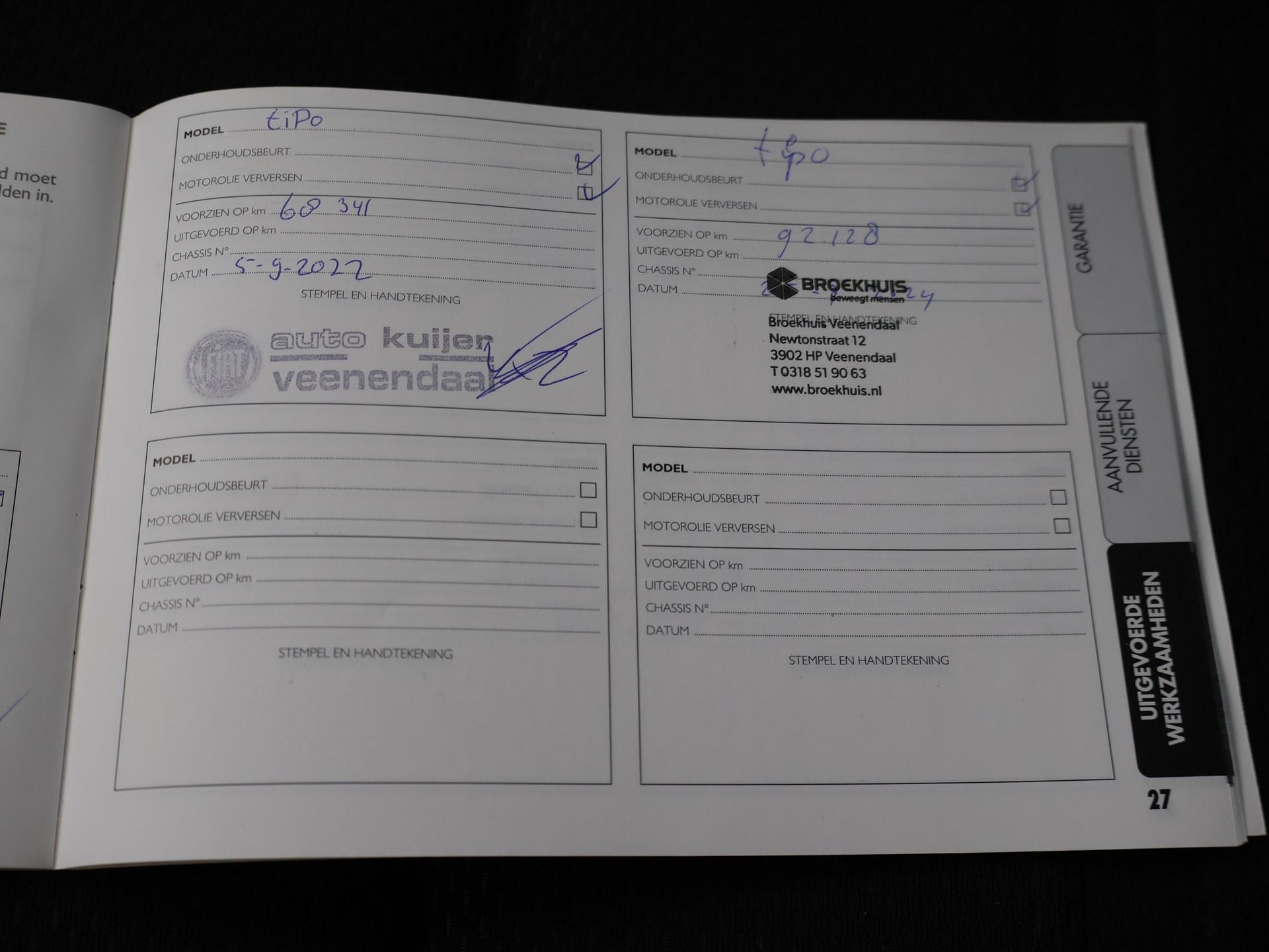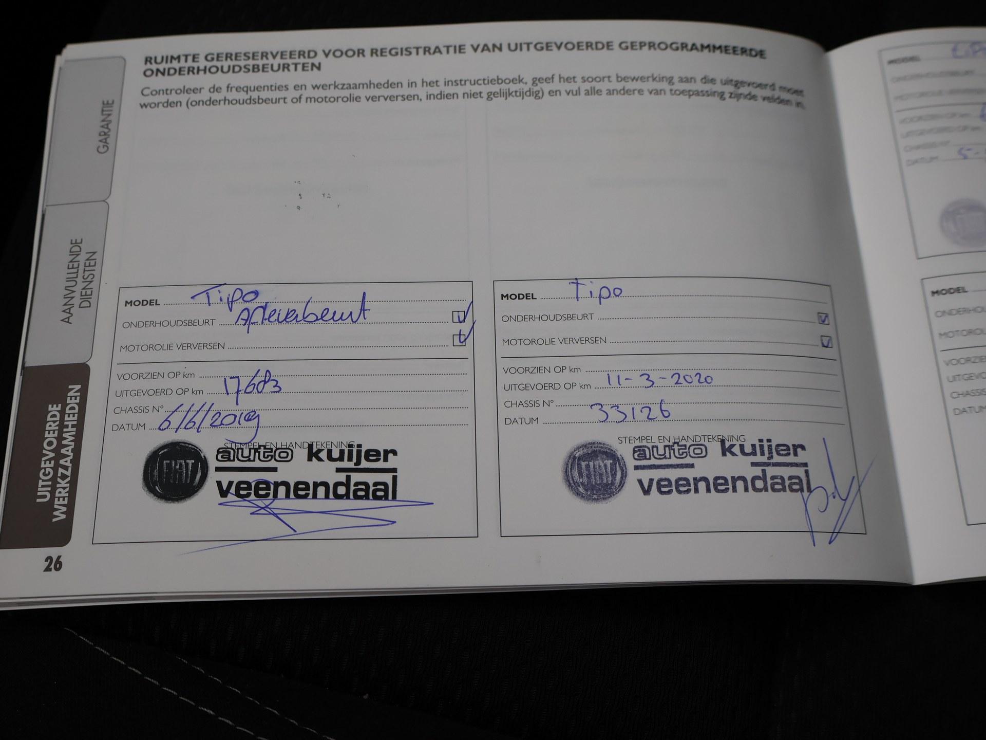 Tipo 1.6 MultiJet 120 PK diesel automaat, Slechts 116.596 km gereden, Adaptive cruise control, Achteruitrijcamera, Navigatie, Bluetooth telefoon met audiostreaming, Cruise control, Privacy glass, Parkeersensoren, Mistlampen, LED dagverlichting. Meer informatieAlgemene informatieMerk: FiatModel: Tipo Type: 1.6 MULTIJET 120 PK DIESEL AUTOMAAT Modelreeks: 2017 - 2020 Technische informatieKoppel: 320 NmAandrijving: Voorwielaandrijving Tankinhoud: 50 liter Acceleratie (0-100): 10,2 s Topsnelheid: 200 km/u MatenWielbasis: 264 cmGewichtenLedig gewicht: 1.325 kgLaadvermogen: 575 kg Max. trekgewicht: 1.000 kg (ongeremd 500 kg) MilieuCO₂-uitstoot (NEDC): 101 g/kmFijnstofuitstoot: 0,1 mg/km Financiële informatieMotorrijtuigenbelasting: € 418 - € 437 per kwartaalBeschikbare afleverpakketten:[list][*]Basispakket (inbegrepen):Vloeistofcheck Kenteken tenaamstelling Schoonmaken [*]Servicepakket 1 (€ 495 meerprijs): Olie servicebeurt incl. filter Schoonmaken Dit afleverpakket bevat (in plaats van afleverpakket "Basispakket"): Hazet garantie 3 maanden (3 maanden garantie); Nieuwe APK[*]Servicepakket 2 (€ 695 meerprijs): Onderhoudsbeurt volgens schema Schoonmaken Dit afleverpakket bevat (in plaats van afleverpakket "Basispakket"): Hazet garantie 6 maanden (6 maanden garantie, 10.000 km garantie); Nieuwe APK[*]Servicepakket 3 (€ 995 meerprijs): Onderhoudsbeurt volgens schema Poetsen, polijsten en interieur reiniging Dit afleverpakket bevat (in plaats van afleverpakket "Basispakket"): BOVAG garantie (12 maanden); Nieuwe APK[/list] ProductveiligheidEU verantwoordelijke: Stellantis Fiat Lemelerbergweg 12 1101 AJ Amsterdam, NL 0882012700 www.fiat.nl info@fiat.nl |