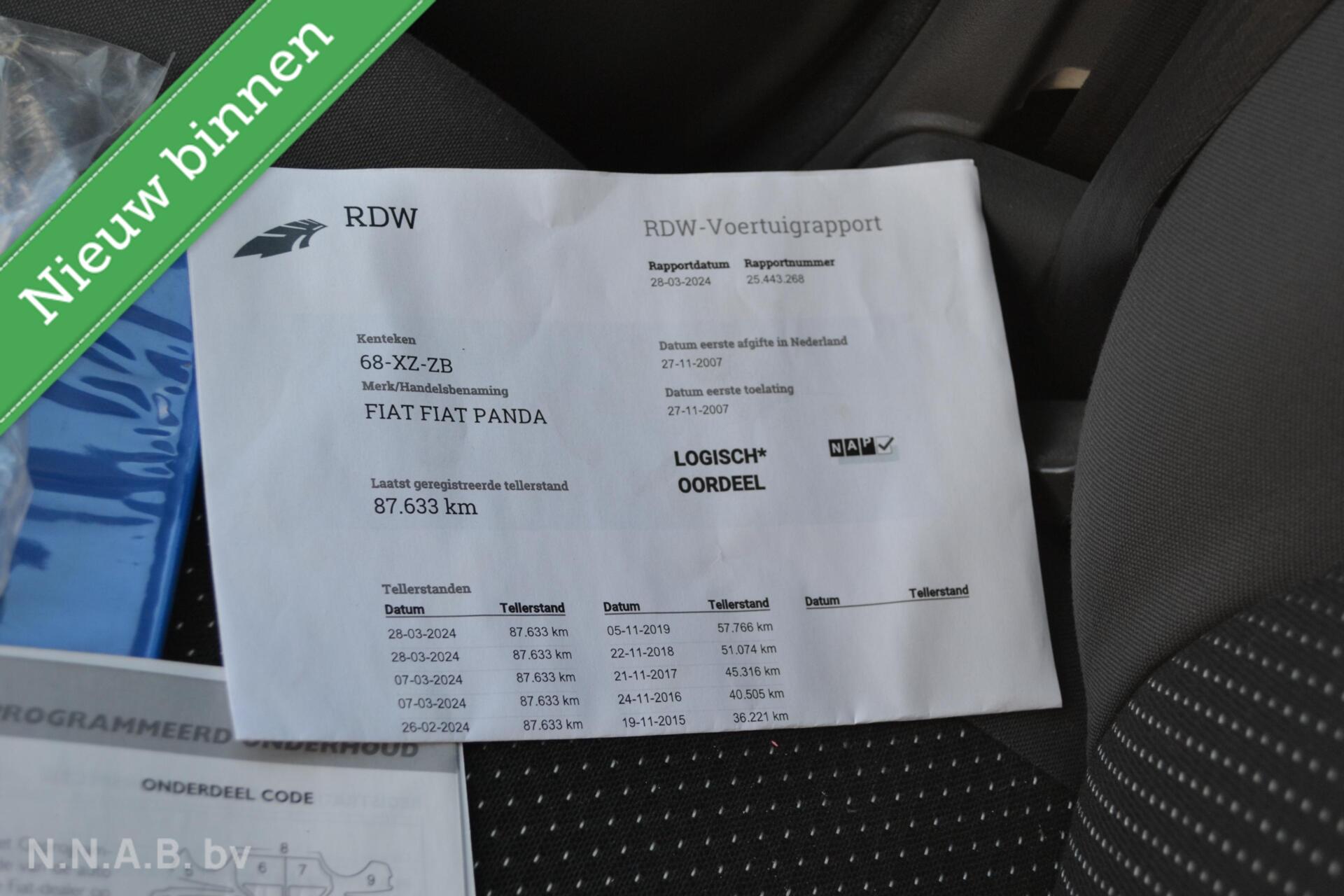 Fiat Panda Active Meer informatieAlgemene informatieMerk: FiatModel: Panda Type: Active Modelcode: II Technische informatieAandrijving: VoorwielaandrijvingTopsnelheid: 150 km/u MatenLengte: 354 cmWielbasis: 230 cm GewichtenLedig gewicht: 815 kgLaadvermogen: 440 kg Max. trekgewicht: 800 kg (ongeremd 350 kg) StaatSchade: schadevrijFinanciële informatieMotorrijtuigenbelasting: € 70 - € 76 per kwartaalAfleverpakkettenOptioneel afleverpakket (€ 495): Pakket 1: Optiepakket NNAB bv. 3 maand NNAB garantie. Maximaal 1500kmDit afleverpakket bevat: Huisgarantie (3 maanden garantie); Nieuwe APK |