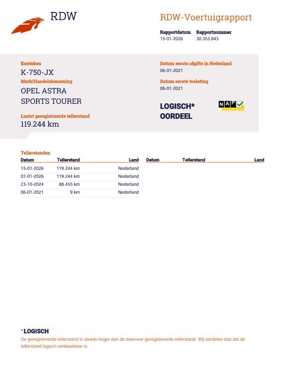 Algemene informatieMerk: OpelModel: Astra Sports Tourer Type: 1.2 Edition | Navigatie | Apple Carplay Android Auto| Parkeersensoren |1 Eig| NL Technische informatieAandrijving: VoorwielaandrijvingAcceleratie (0-100): 10,6 s Topsnelheid: 200 km/u MatenWielbasis: 266 cmGewichtenLedig gewicht: 1.255 kgLaadvermogen: 615 kg Max. trekgewicht: 1.100 kg (ongeremd 660 kg) Onderhoud, historie en staat100% Onderhouden: Ja (kwaliteitslabel aanwezig)Aantal sleutels: 2 (2 handzenders) Financiële informatieMotorrijtuigenbelasting: € 199 - € 217 per kwartaalBeschikbare afleverpakketten:[list][*]Basis service pakket: (inbegrepen): Het basis service pakket omvat: aflevering van de door u aangeschafte occasion inclusief een geldige APK , een algehele inspectie, vloeistoffen afvullen en coulance bij onvoorziene defecten gedurende 3 maanden na aanschaf.[*]Borgauto 3 maanden pakket (voertuigen 950 kg > ) (€ 495 meerprijs): Dit aflever pakket omvat: aflevering van de door u aangeschafte occasion inclusief een nieuwe APK, 3 maanden garantie, een algehele inspectie en een onderhoudsbeurt volgens onderhoudsschema.Dit afleverpakket bevat (in plaats van afleverpakket "Basis service pakket:"): BOVAG garantie (3 maanden)[*]Borgauto 6 maanden pakket (voertuigen 950 kg >) (€ 795 meerprijs): Dit aflever pakket omvat: aflevering van de door u aangeschafte occasion inclusief een nieuwe APK, 6 maanden garantie, een algehele inspectie en een onderhoudsbeurt volgens onderhoudsschema. Dit afleverpakket bevat (in plaats van afleverpakket "Basis service pakket:"): BOVAG garantie (6 maanden)[*]Bovag garantie 12 maanden garantie pakket (voertuigen 950 kg >) (€ 995 meerprijs): Dit aflever pakket omvat: aflevering van de door u aangeschafte occasion inclusief een nieuwe APK, 12 maanden Bovag garantie, een algehele inspectie, onderhoudsbeurt volgens onderhoudsschema en tenaamstelling van het voertuig. Dit afleverpakket bevat (in plaats van afleverpakket "Basis service pakket:"): BOVAG garantie (12 maanden)[/list] |